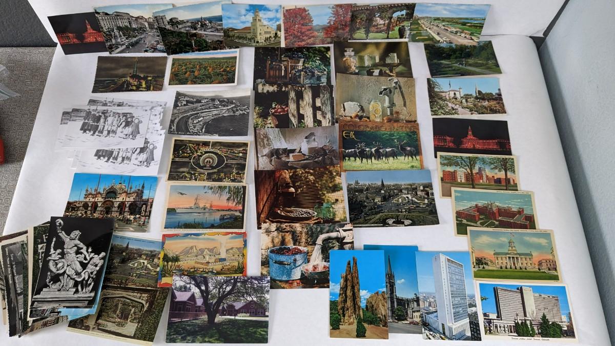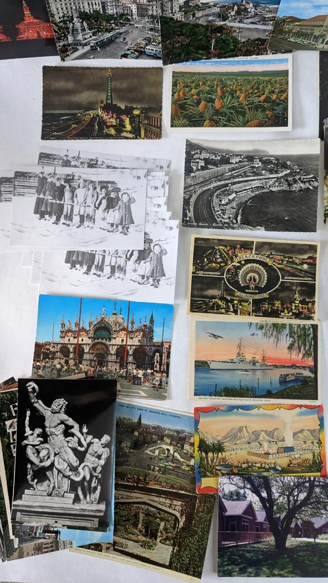 a wonderful collection of US and foreign postcards. only 3 out of the whole lot have been used. Some show bending. 2604