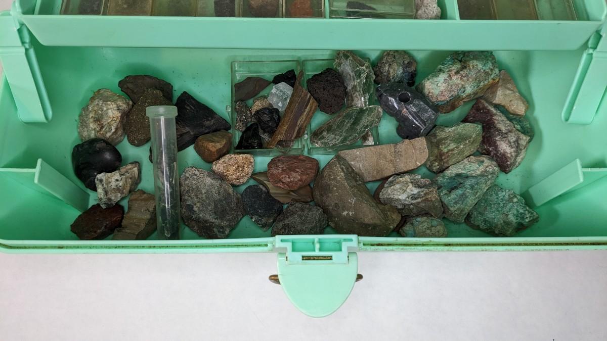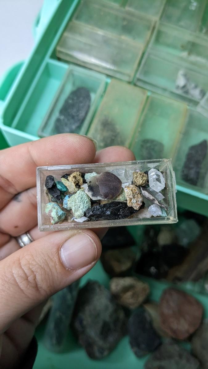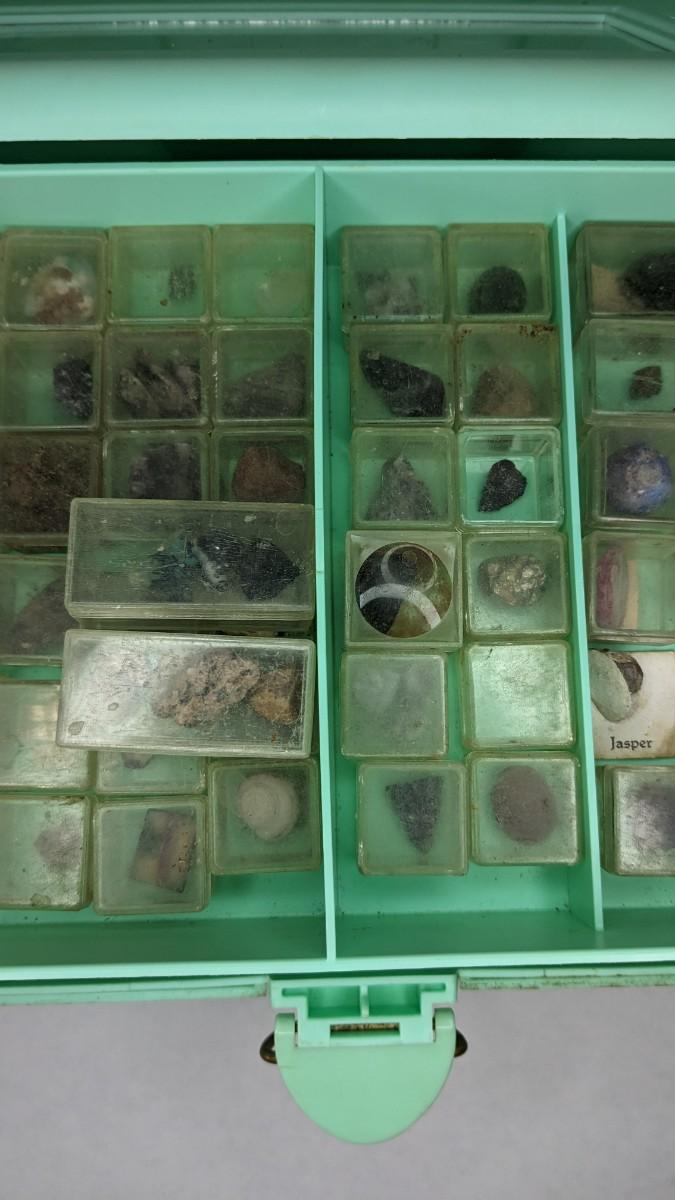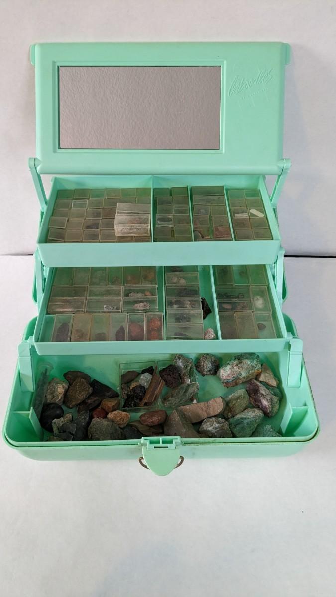 here's one for the ages, an amazing account and collection of "found in the wild" gems, rocks, and specimens. Also includes cut stones, a broken indigenous fetish, fossils, and more! Lots of these items have marks of what they are and where they were found. A very incredible account of this areas natural offerings! Includes vintage caboodle!