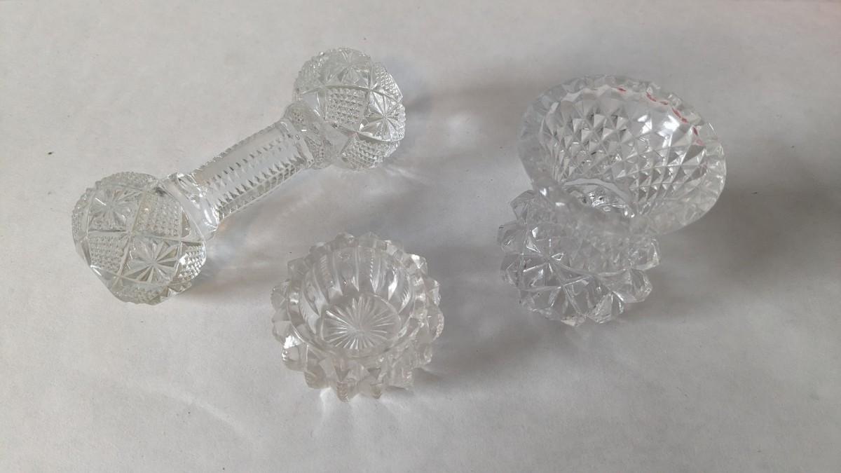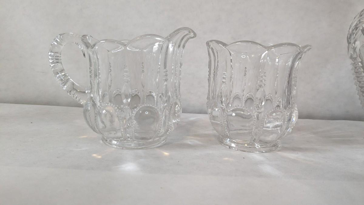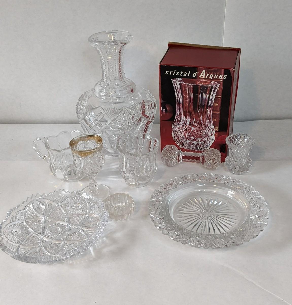 A great little array of lead crystal pieces. Includes in box item and cream and sugar that are potentially cut glass. All pieces in good shape. Extra handling fees will apply