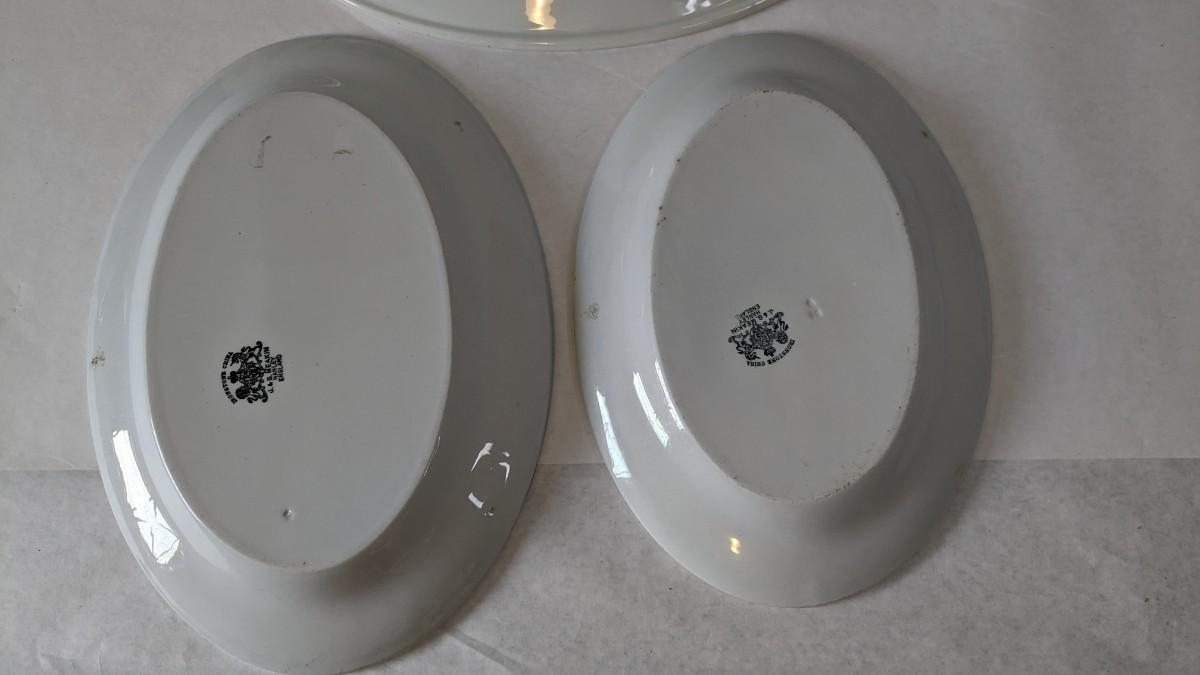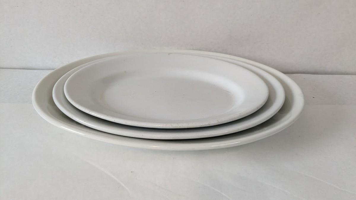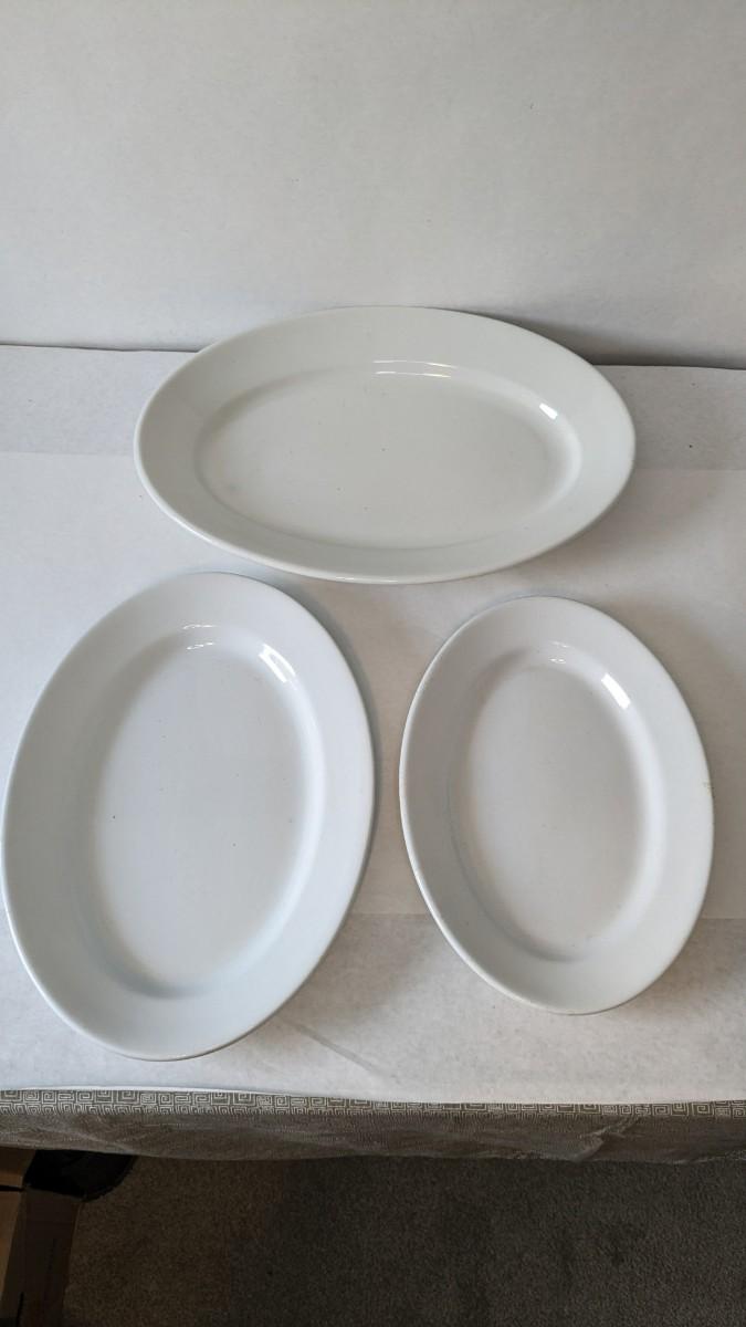 3 varying size platters, 2 marked Ironstone with largest piece unmarked but of similar composition and HEAVY. Some discoloration present on edges but structurally and overall these are great pieces for age and display or use!