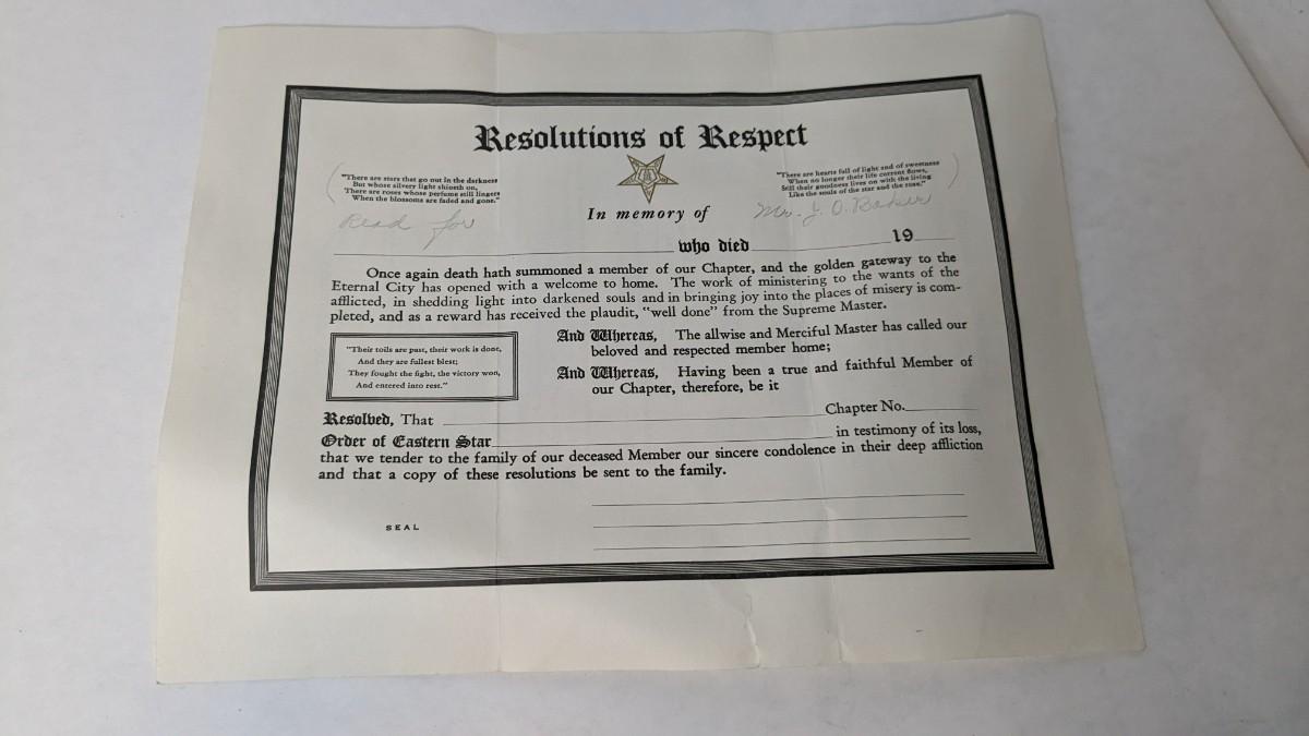 Order of the Eastern Star Masonic Memorabilia