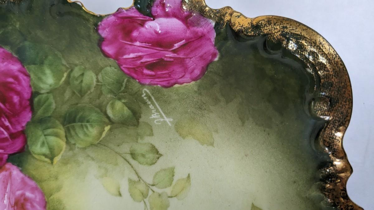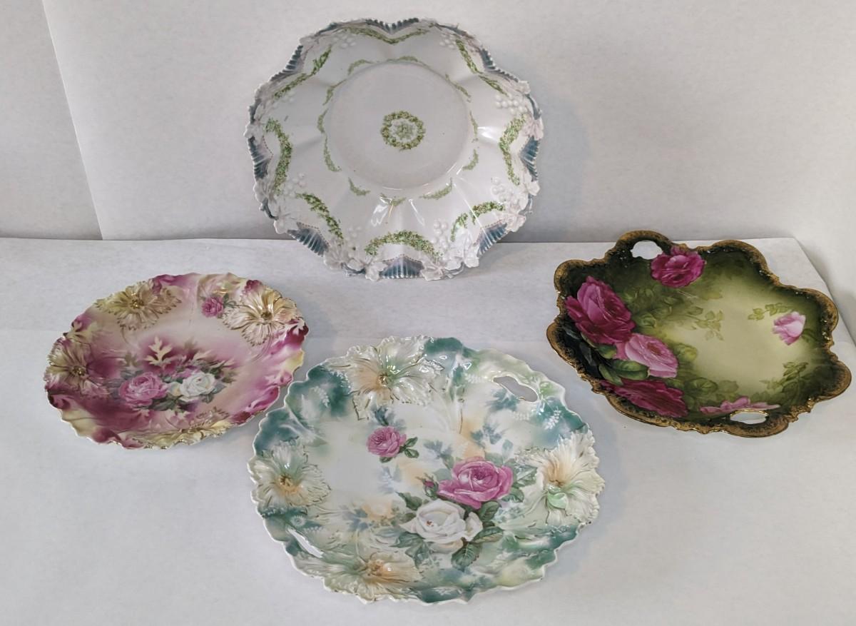 4 stunning handpainted pieces, 1 shows sign of reapiar as noted in photos. All images are intact and bold. Very beautiful and early pieces.