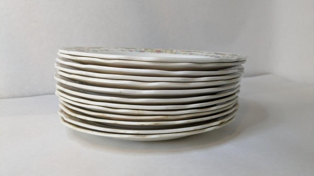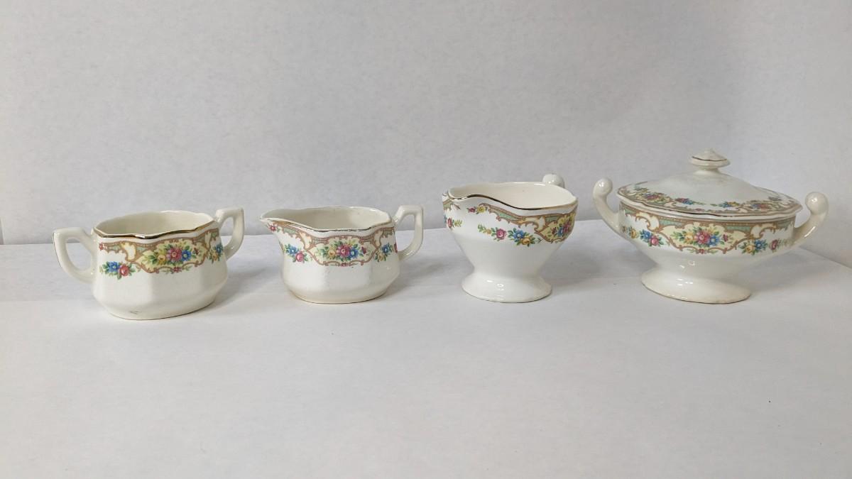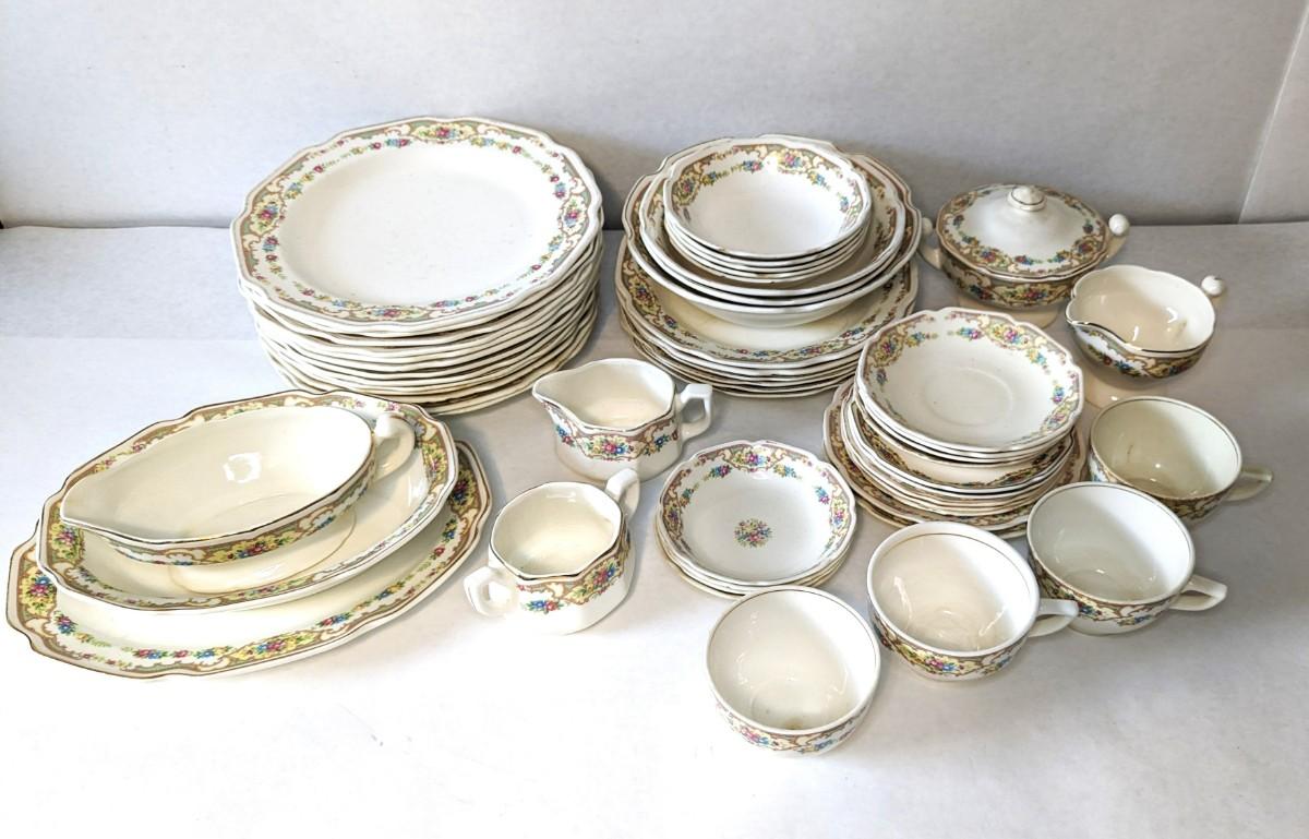 a stunning collection of very early bone china with pieces ranging in decades. Various wear and chips can be found on this 100 year old set as outlined in photos. Very many pieces are present in this set with many harder to find pieces. This is an incredible example of early American china production. No shipping.