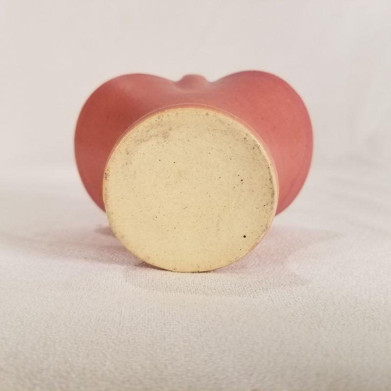 This little basket was most probably made by the Cherokee Pottery Company of Louisville, KY. Cherokee Pottery was a predecessor to the current Louisville Stoneware Company. This little pottery piece has a beautiful vintage rose mat glaze. It stands at 4-1/4 inches tall. There are no visible cracks or chips. Very good condition. An affordable item for anyone looking to add to an American Pottery collection.