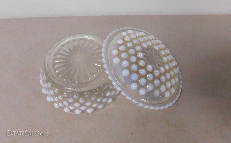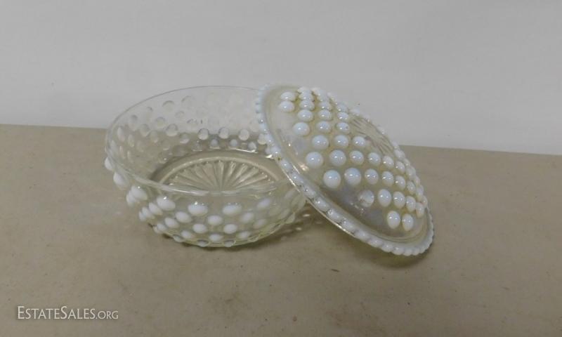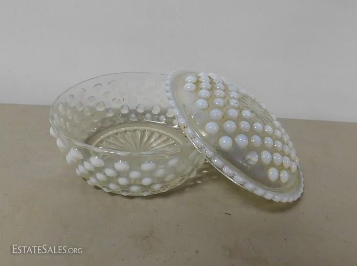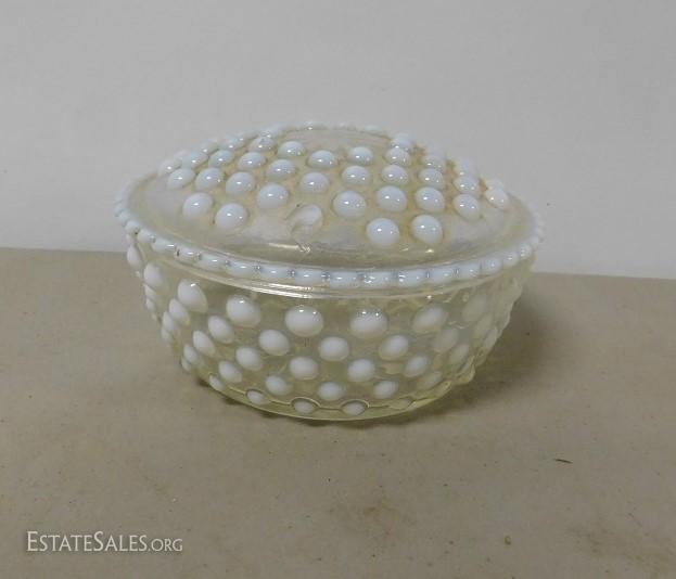 Unmarked Fenton Hopnail Dish with lid. Very nice piece. Small but has good appearance.