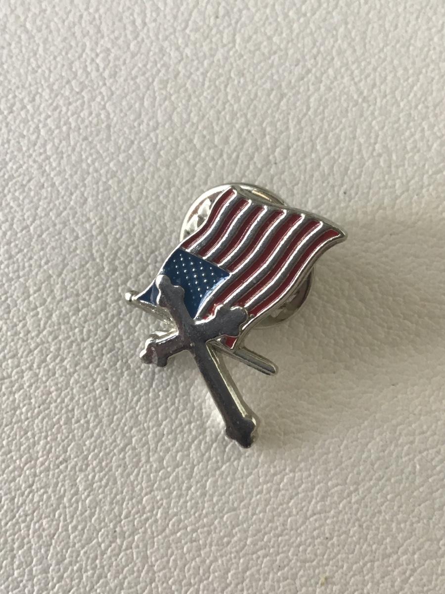 Unmarked flag and cross push pin vintage