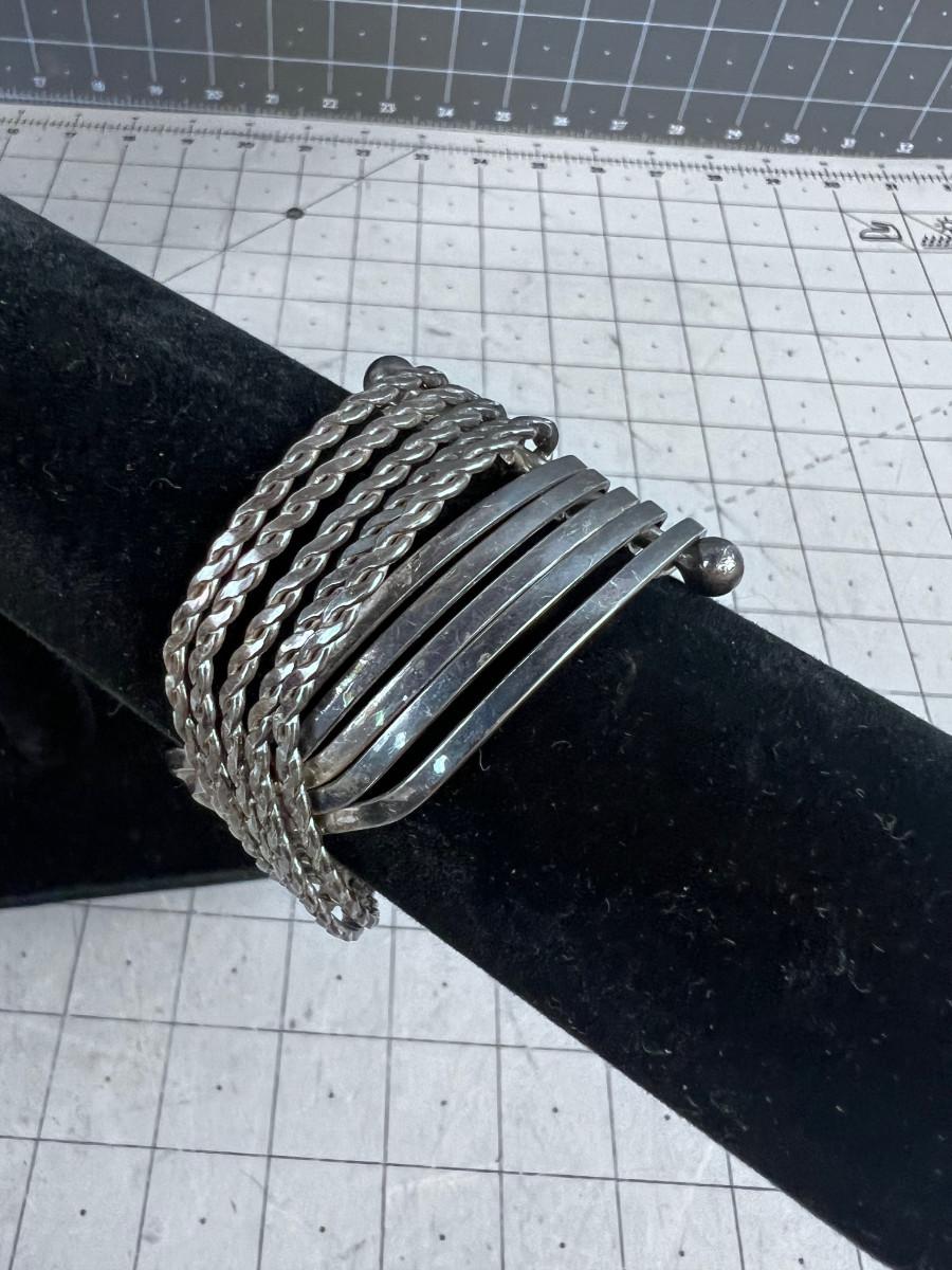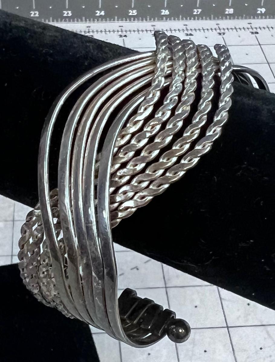 Unmarked Silver Bracelet Cuff - Mixed Rope and Flat Design