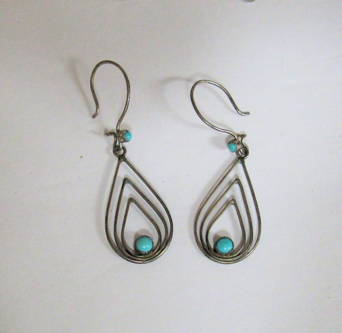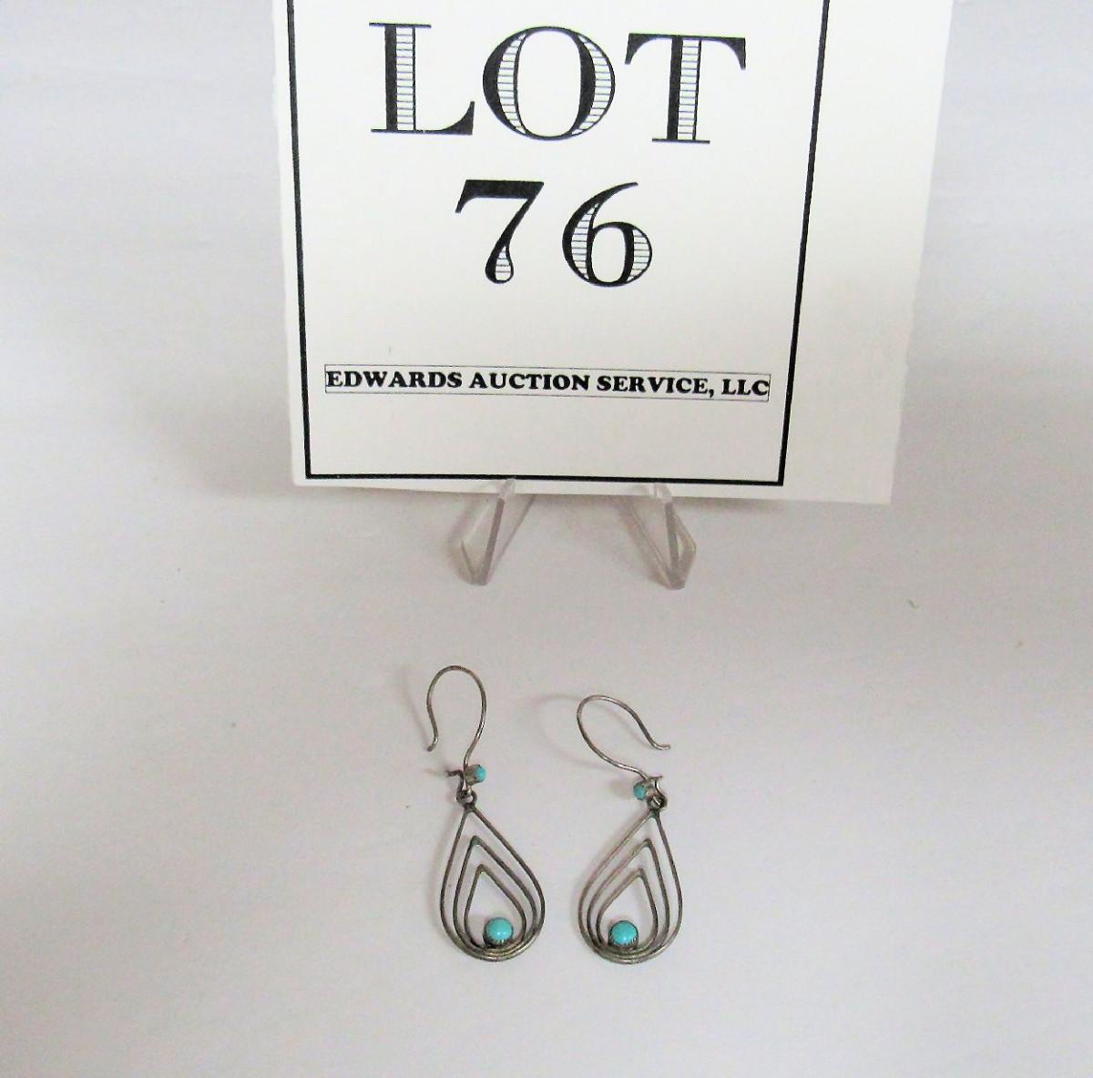 Unmarked Silvertone and Turquoise Colored Stone Earrings