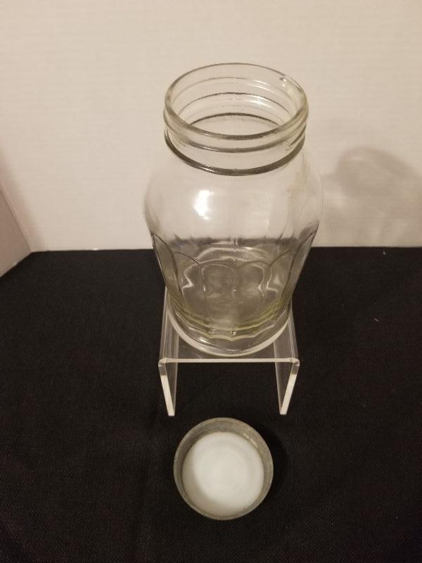 Unmarked Unusual Sided Glass Mason Type Jar With Ceramic and Zinc Lid #8-A