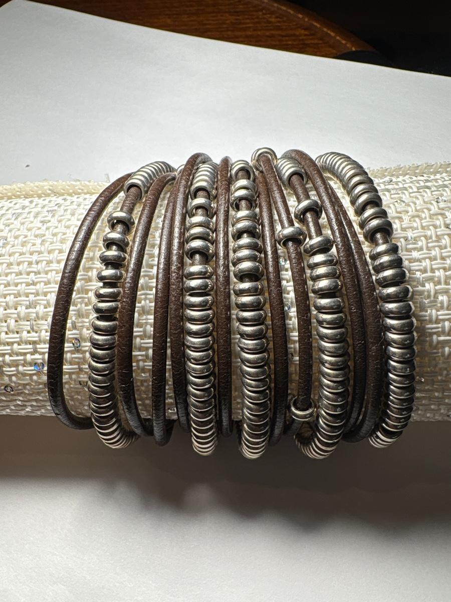 Leather and metal beaded bracelet