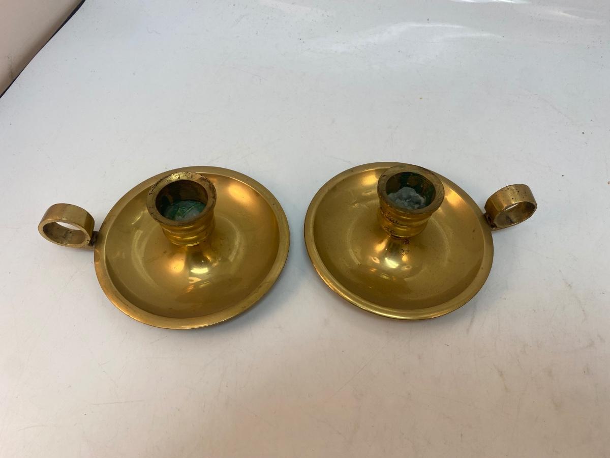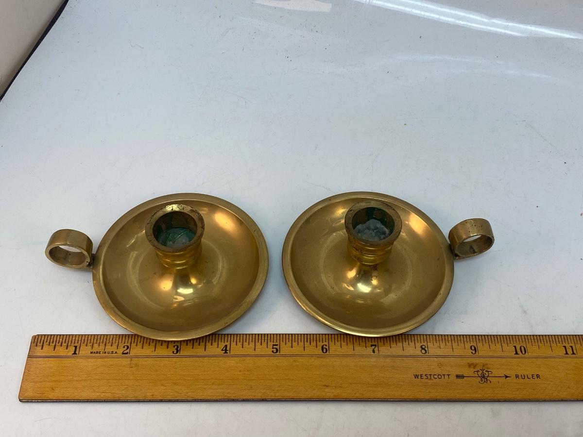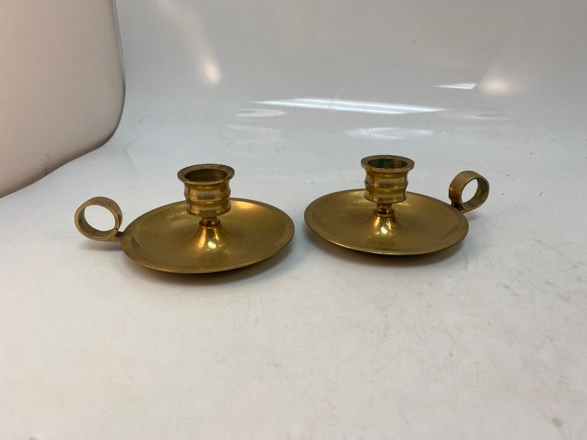 Pair of Chamberstick Brass Taper Candle Holders. In good previously used condition.