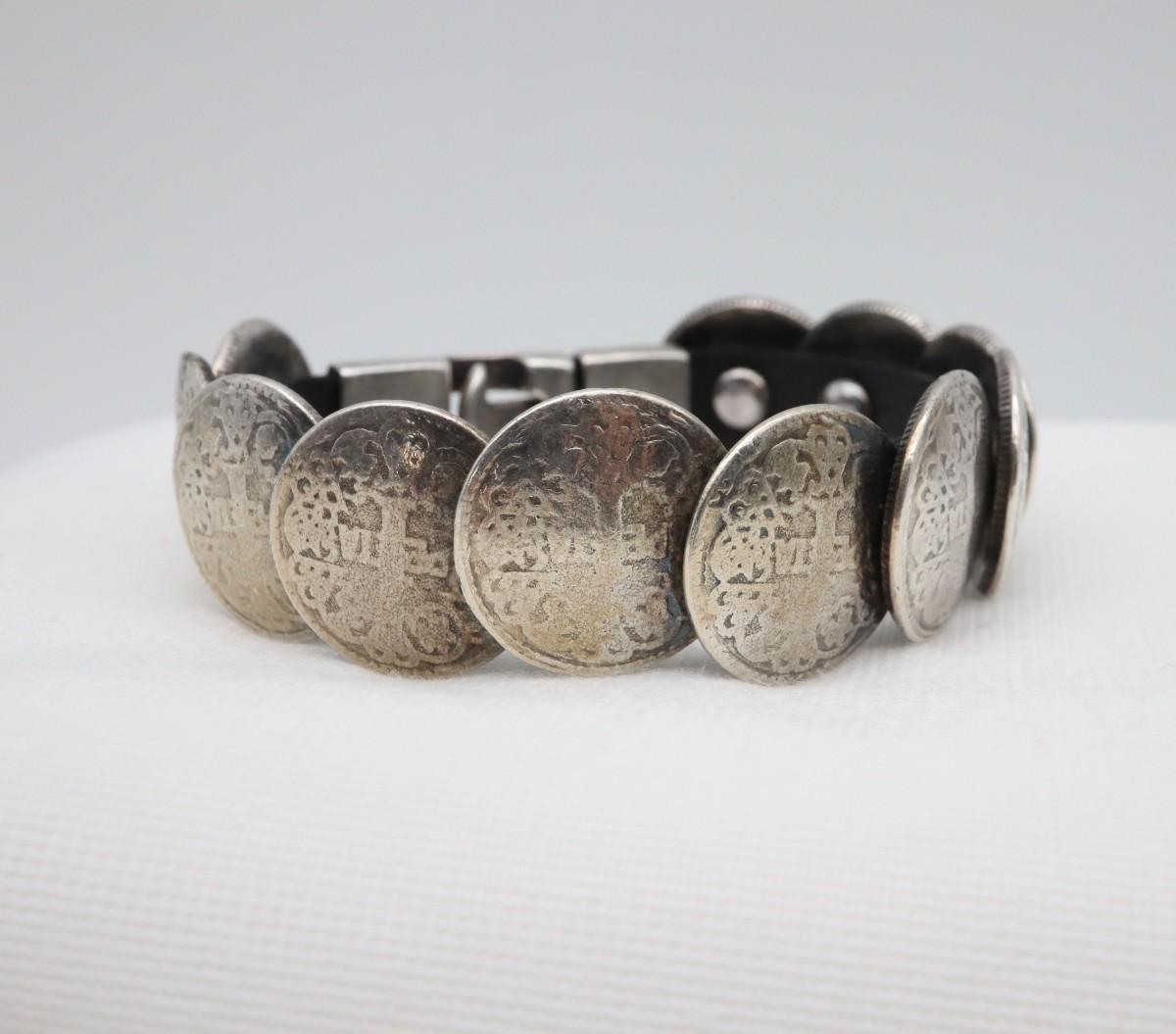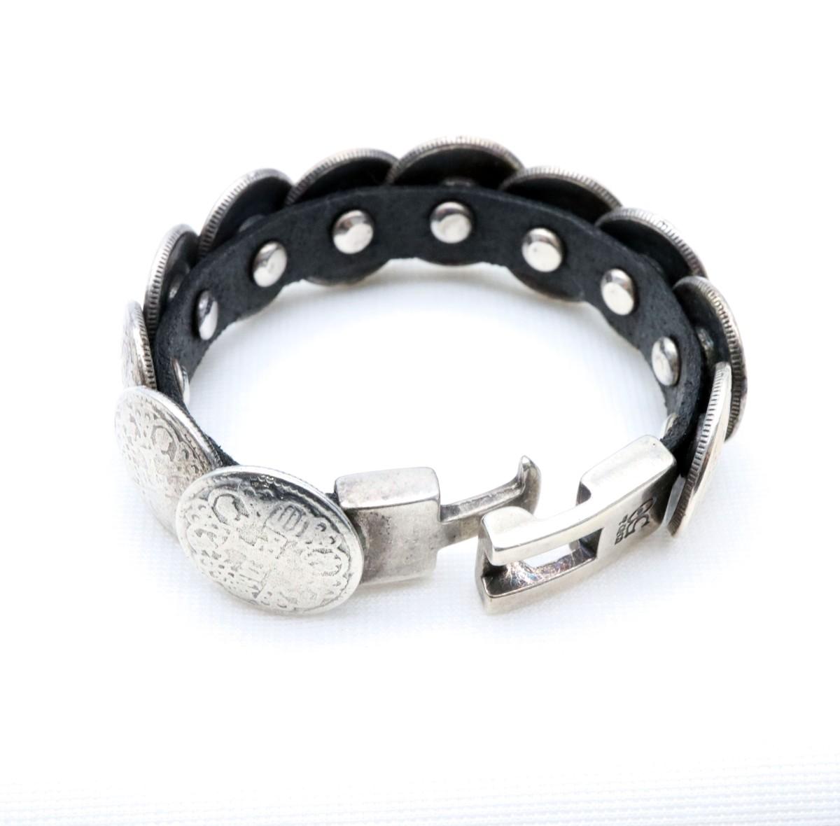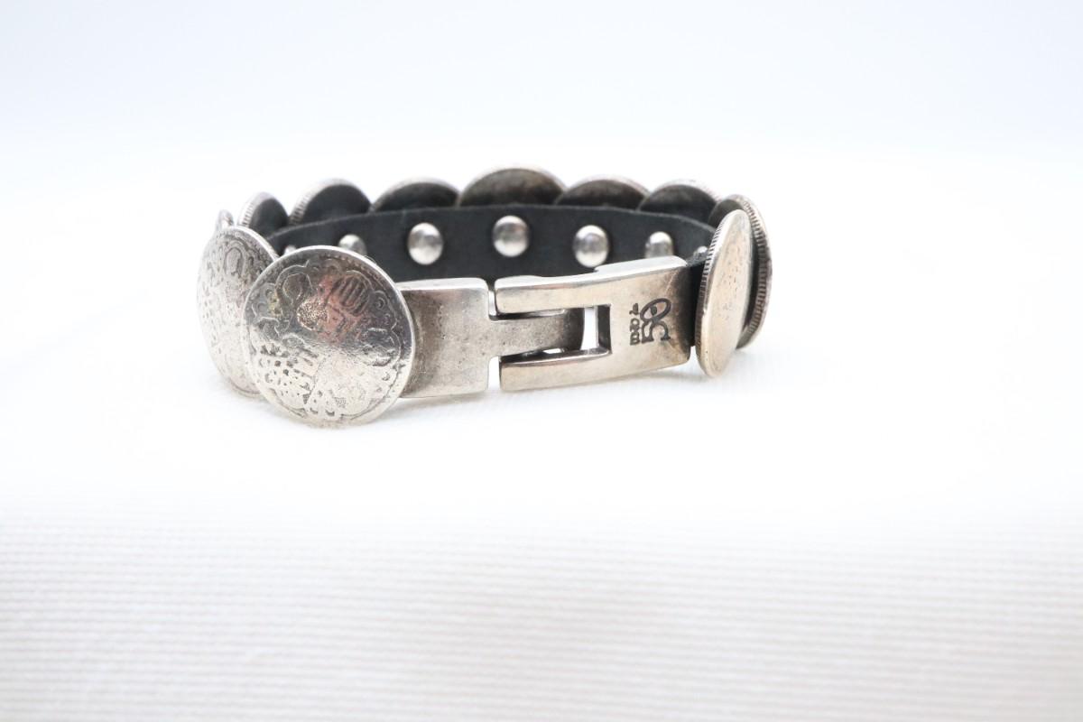 UNOde50 Silver Coin & Leather Bracelet, measures approximately 6"