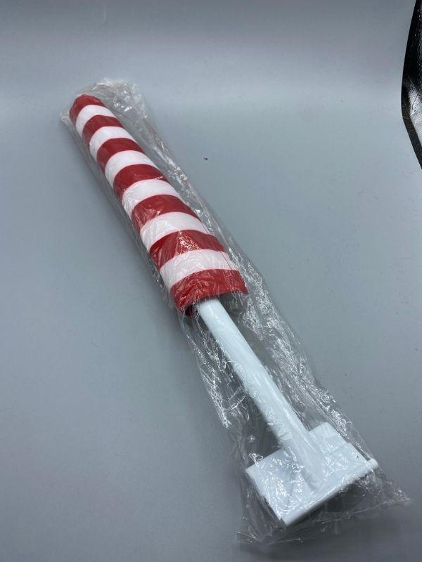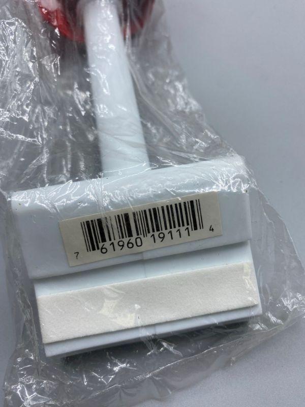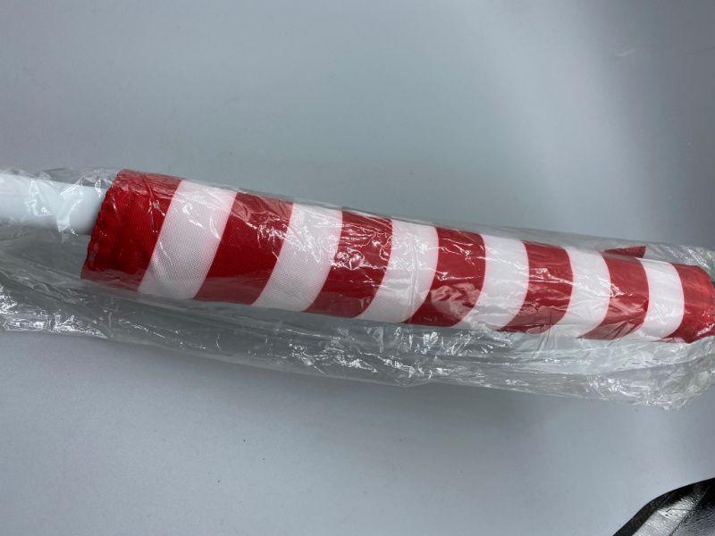 Unopened American flag for car window. Has the built in bracket for putting on a car window. Unsure the size, but it is probably the standard car flag size.