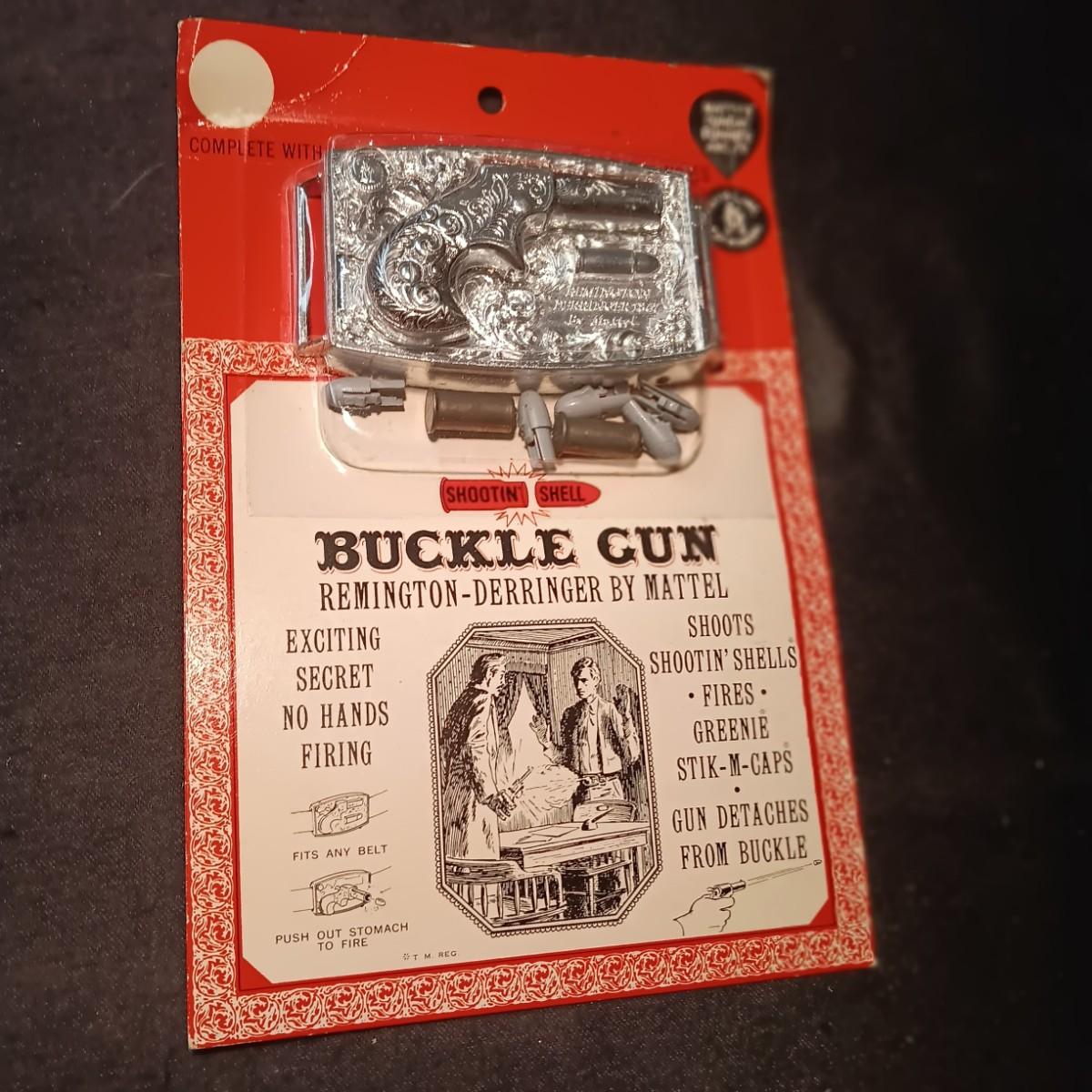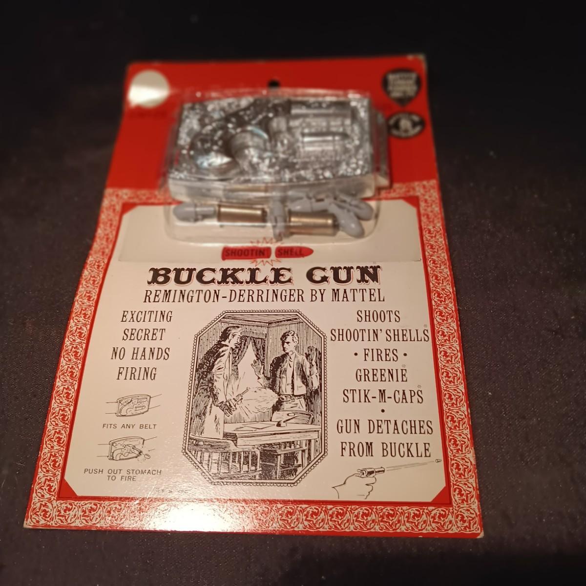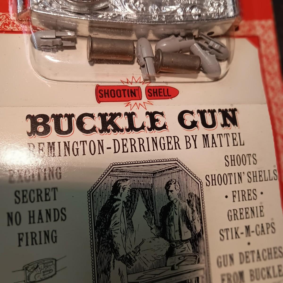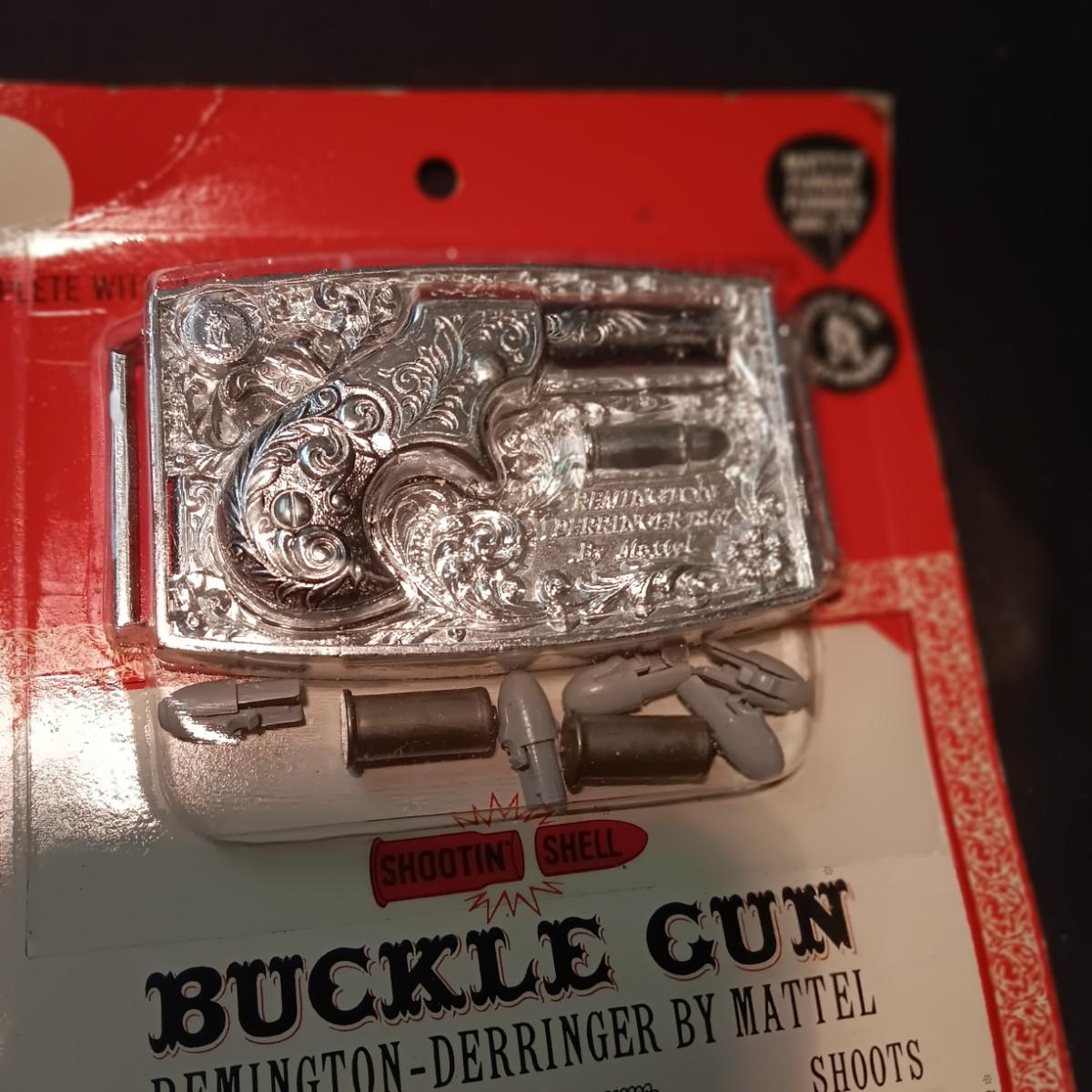 UNOPENED BUCKLE GUN REMINGTON-DERRINGER BY MATTEL ON A BOARD
