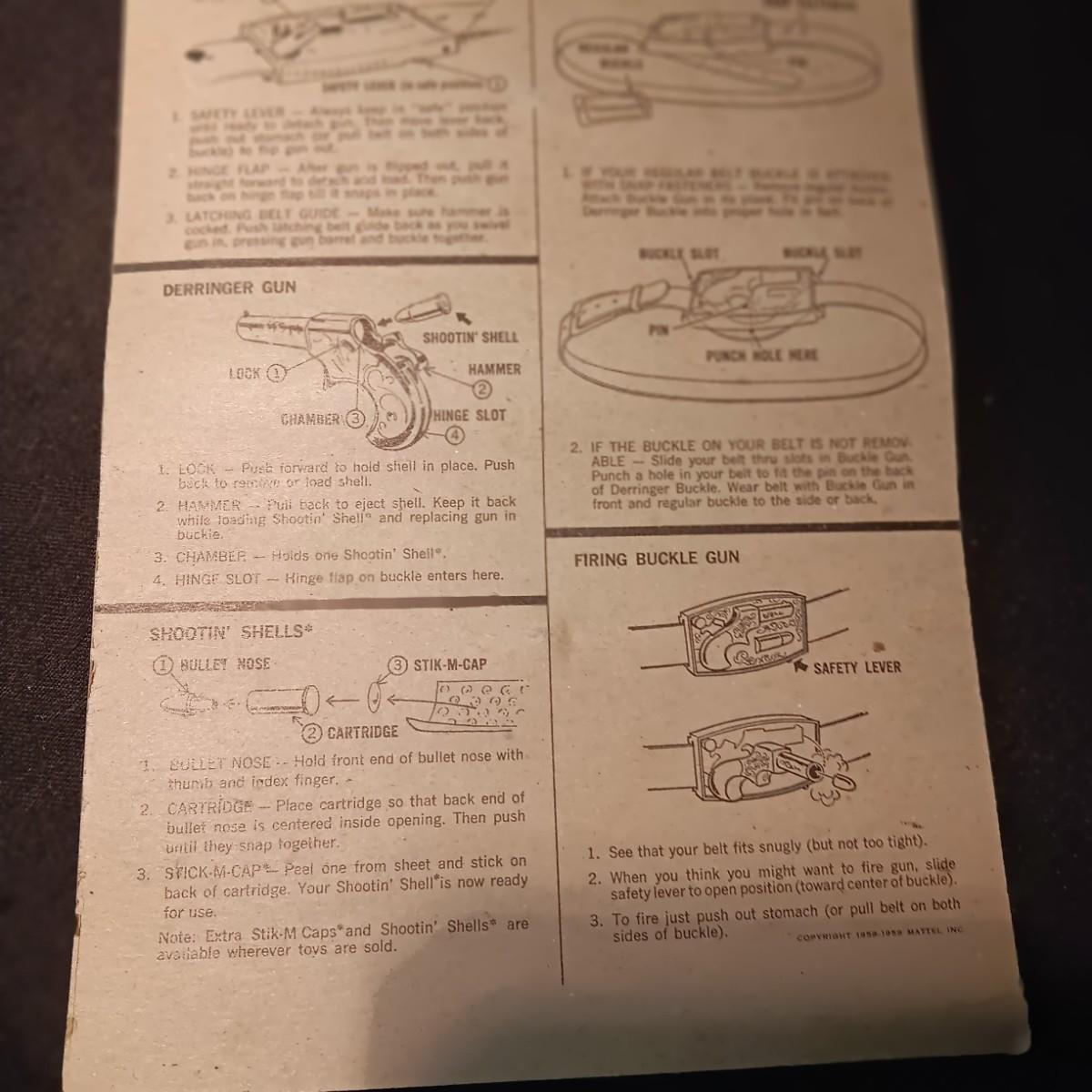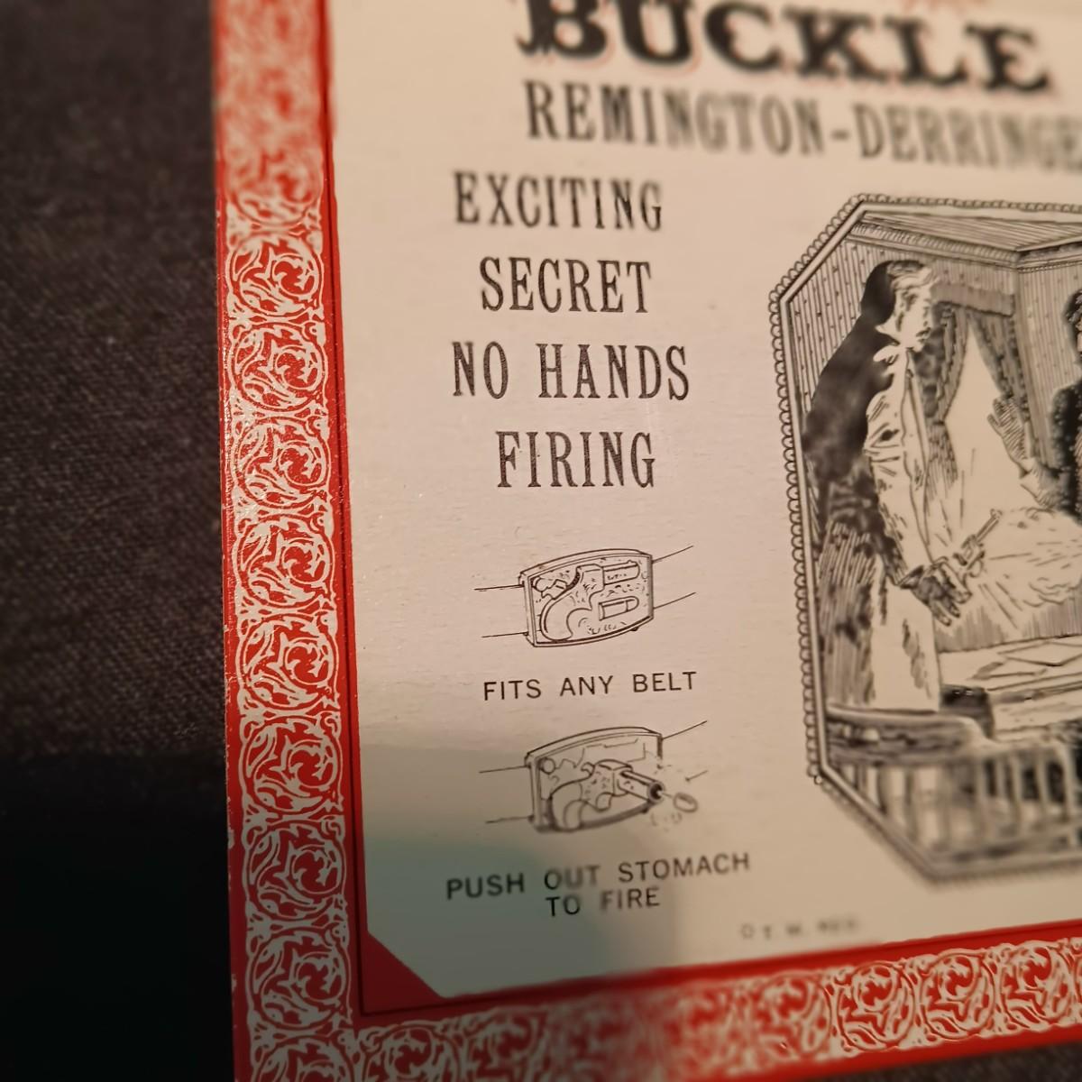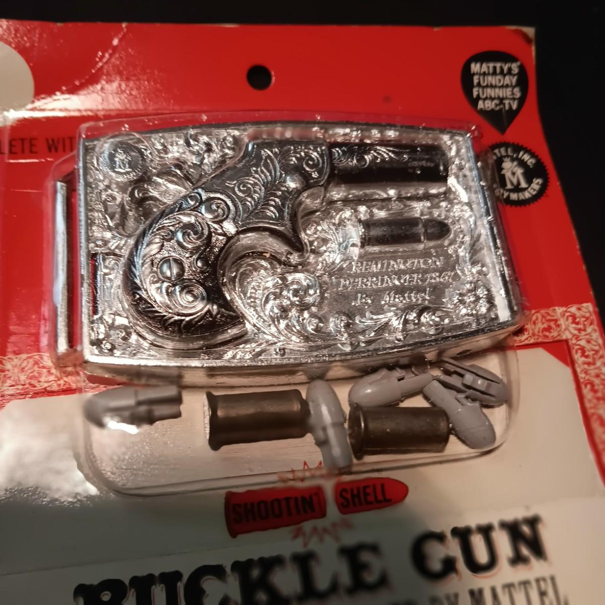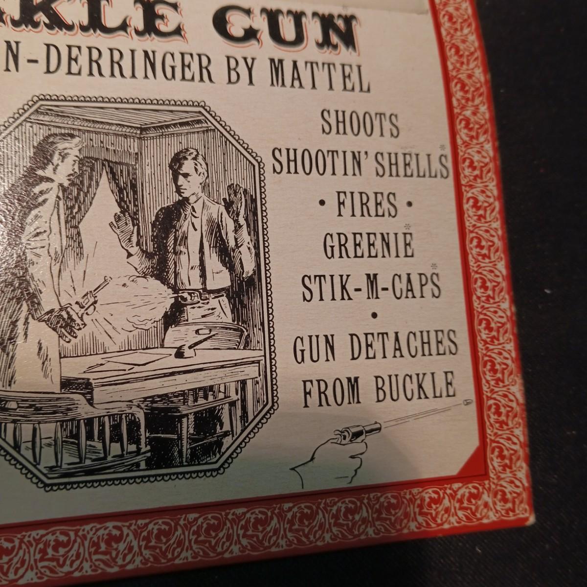 UNOPENED BUCKLE GUN REMINGTON-DERRINGER BY MATTEL ON A BOARD