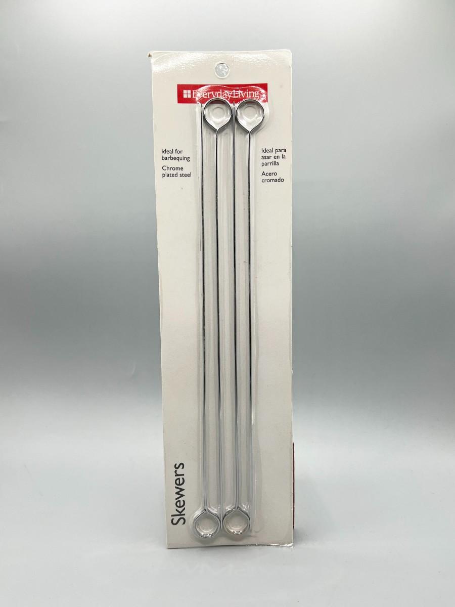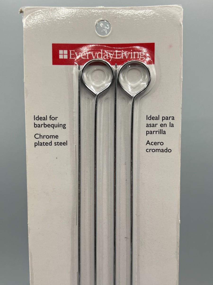 Unopened Chrome Plated Steel Barbecue Skewers, has not been opened, check pictures for more details and for sizing.