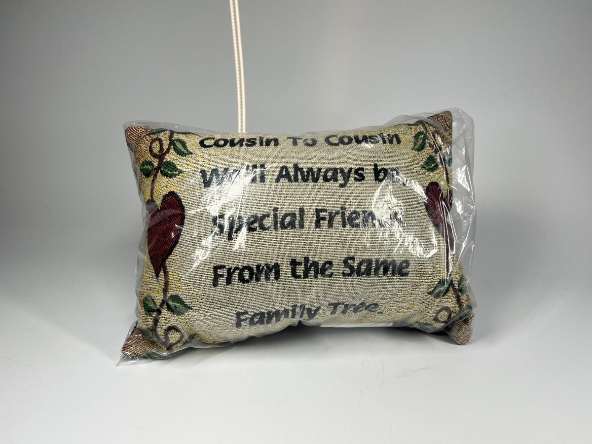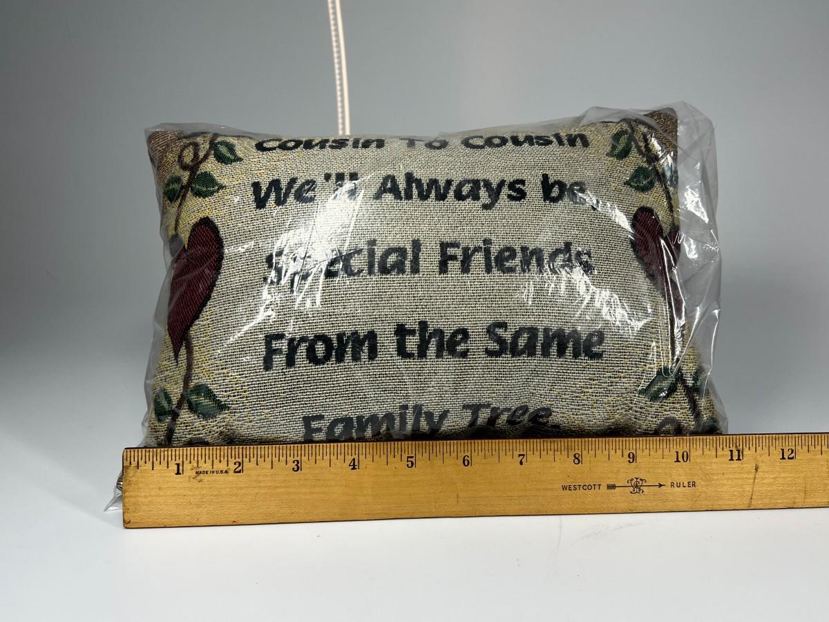 Unopened Family Affirmation Quote Pillow Cousin to Cousin We'll Always Be, there is no damage to the pillow and is in good useable condition. Check pictures for more details and for sizing.
