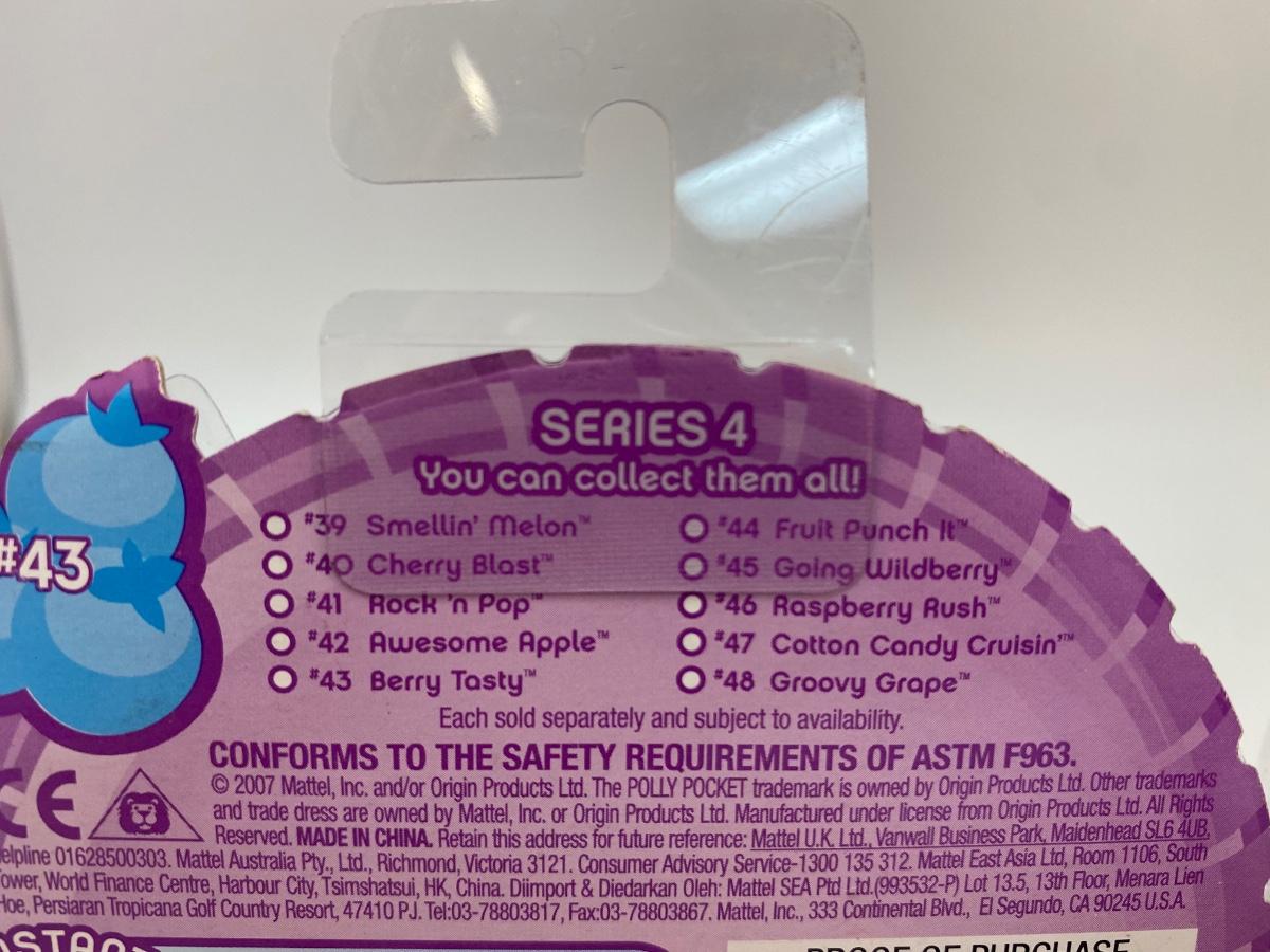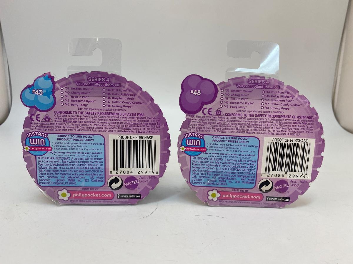 Unopened Polly Pocket Polly Wheels Scented Car Series #43 Berry #48 Grape. The sticker decal on the front of the #48 packaging has come off. Both in good condition.
