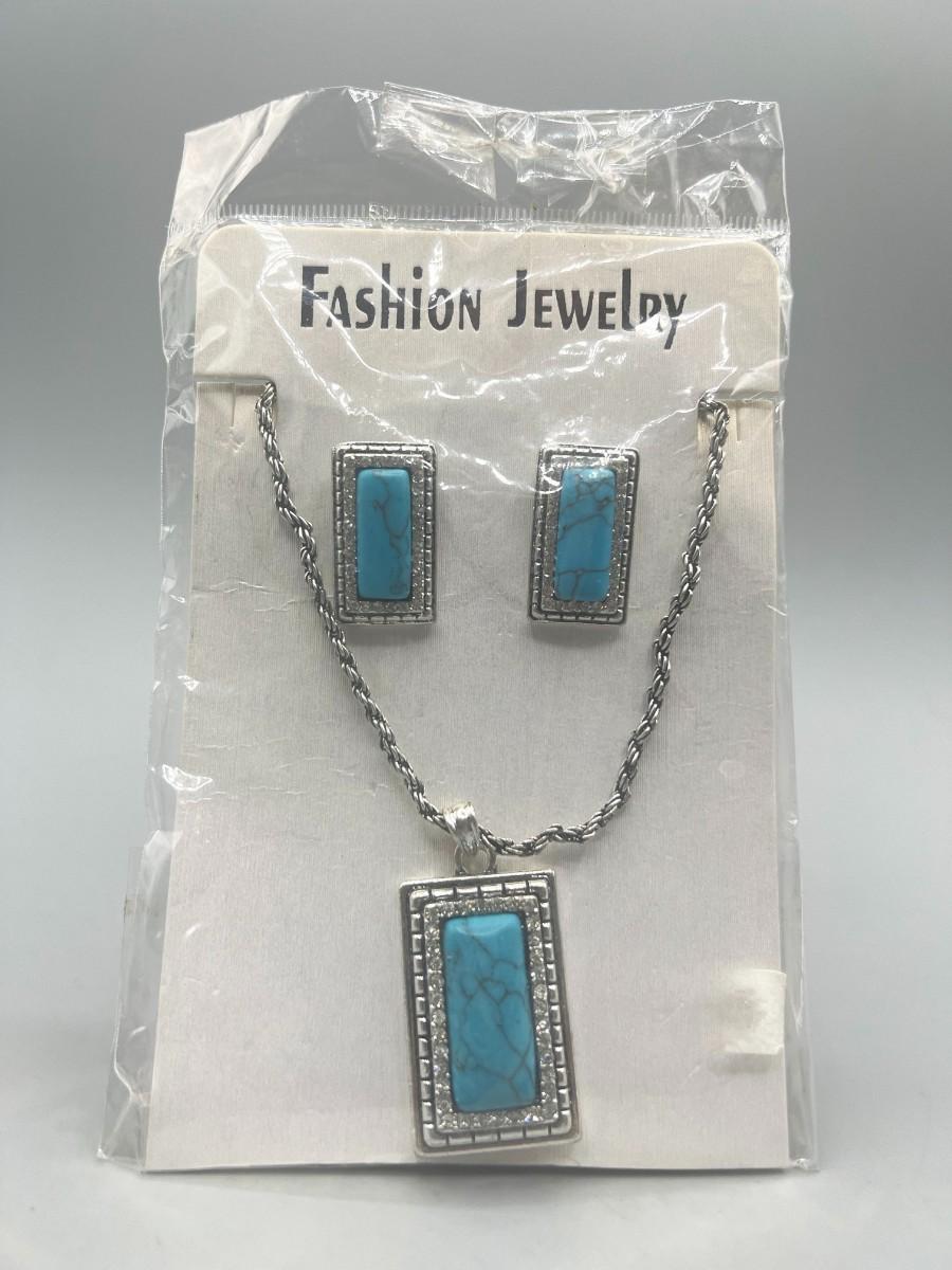 Unopened Turquoise Fashion Jewelry Necklace & Matching Earrings