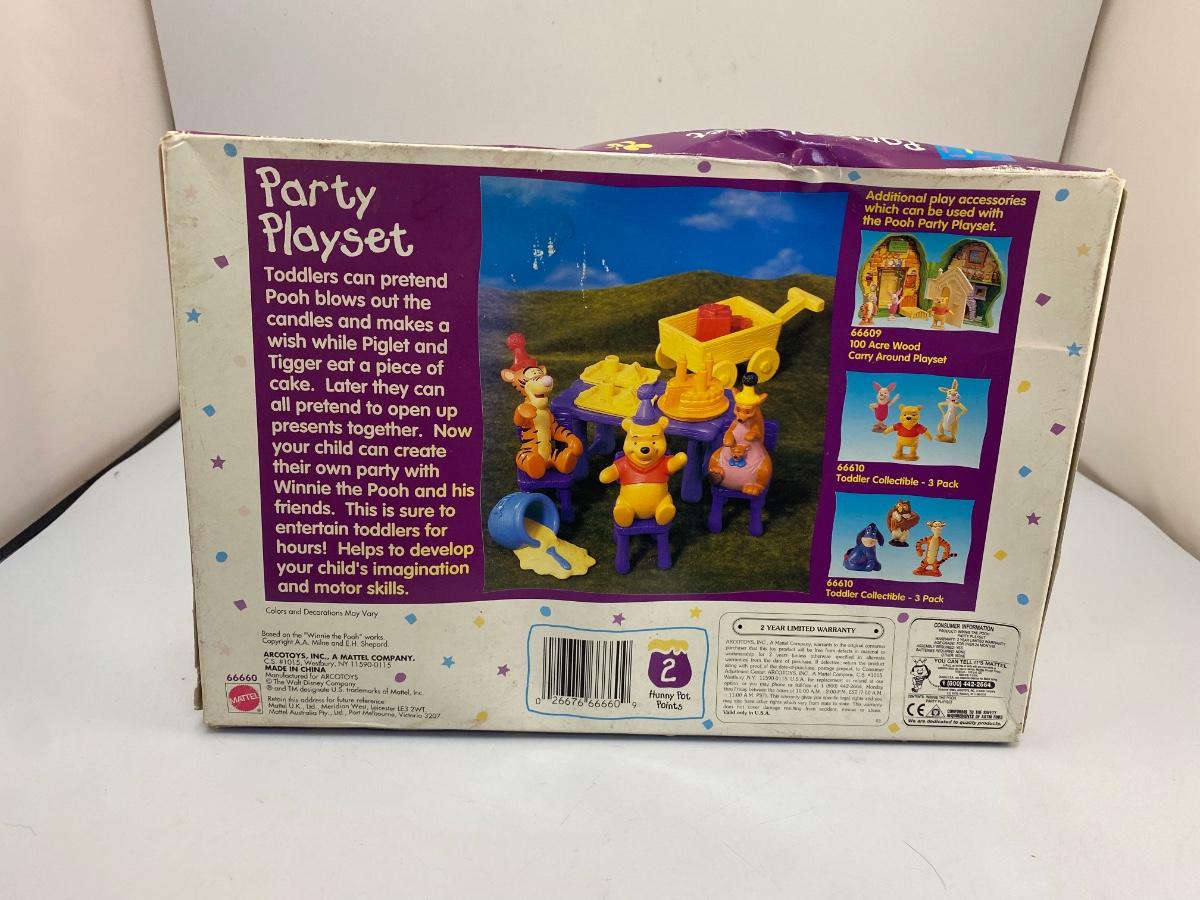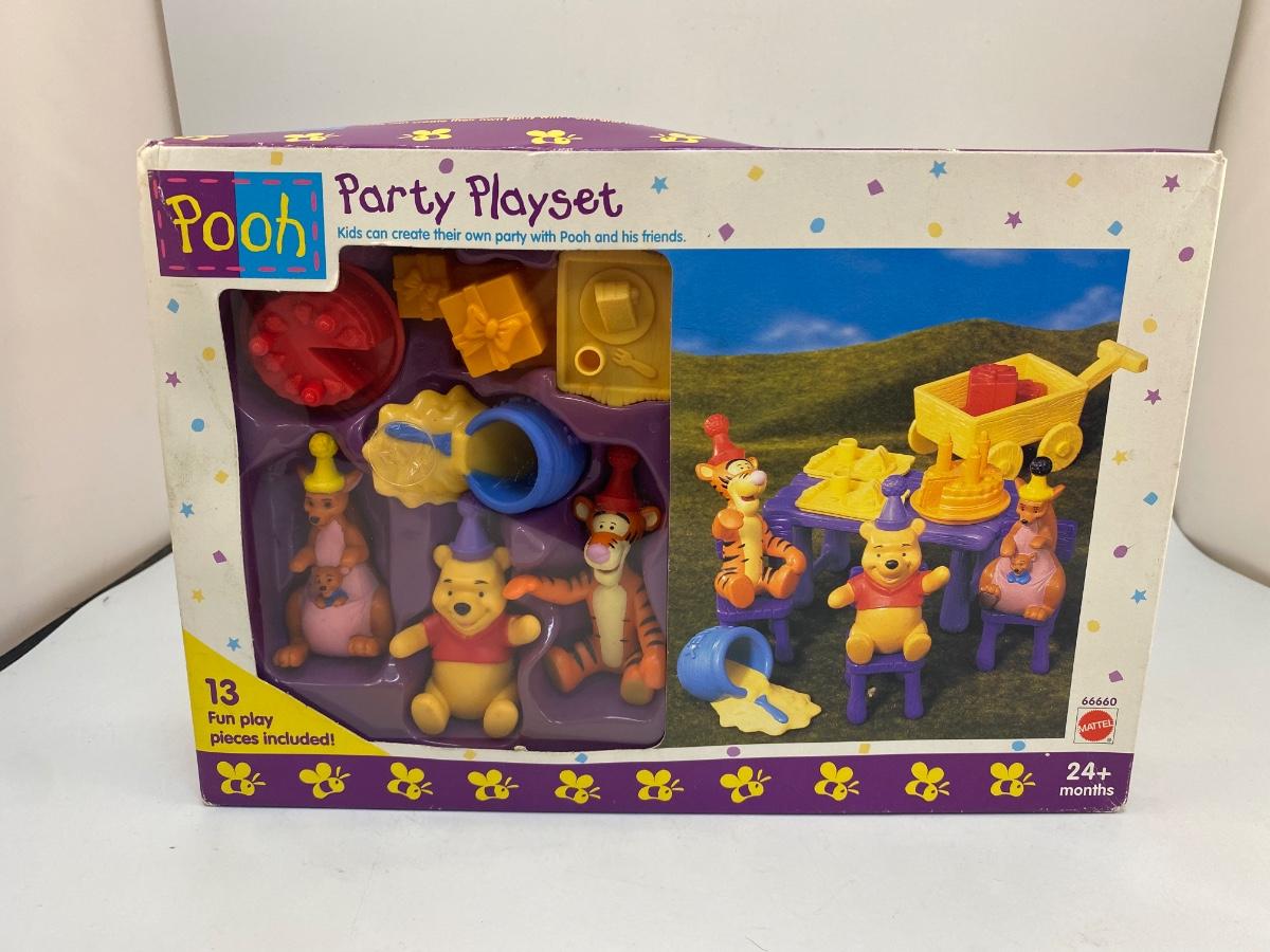 Unopened Winnie the Pooh Party Playset by Mattel. For age 24+ months. Unopened packaging but the but is in worn condition.