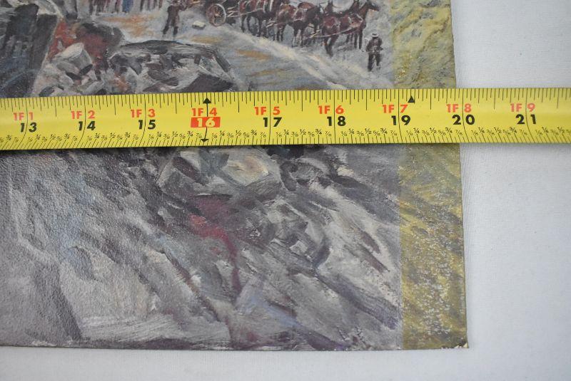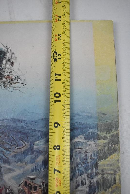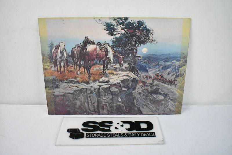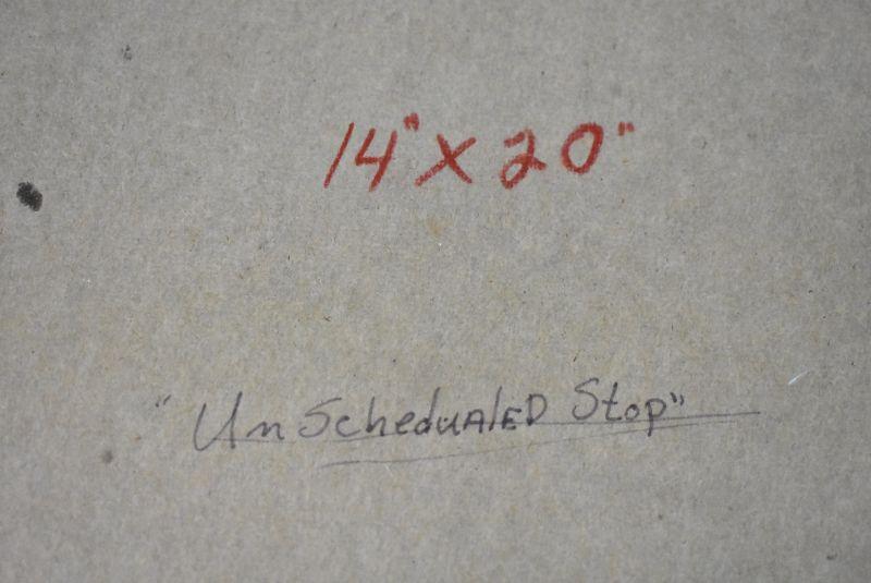 Unscheduled Stop from Russell Museum Montana, Image on Thick Cardboard, Discolored on Edges 14"x20" - Vintage dated 1980