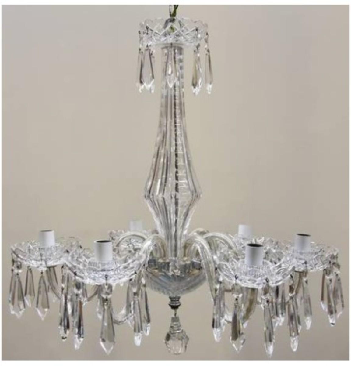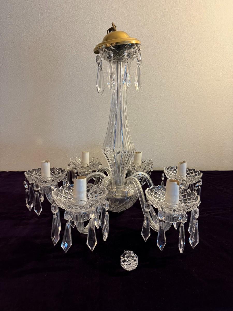 Pre-owned. This chandelier is styled like Waterford Pattern WATC6 as shown here in the comparison picture #2 from the Waterford Chandelier on Replacements which is discontinued.