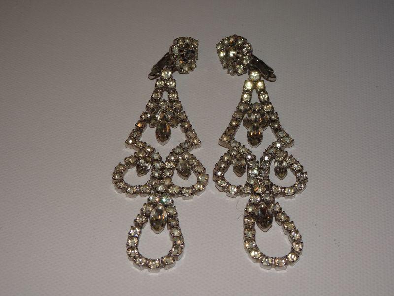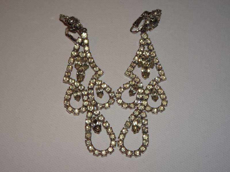 Unsigned Large Dangle CLIP-ON Rhinestone Earrings - Beautiful!