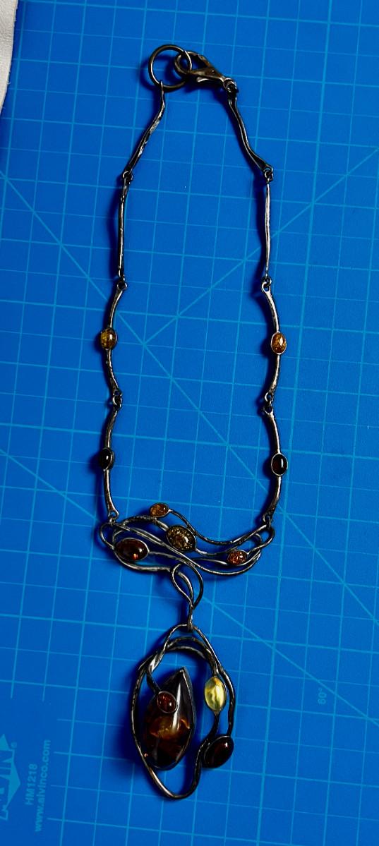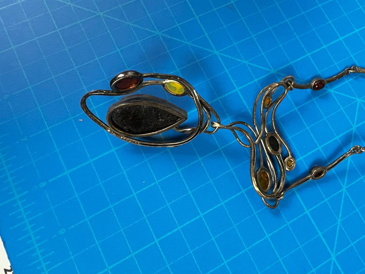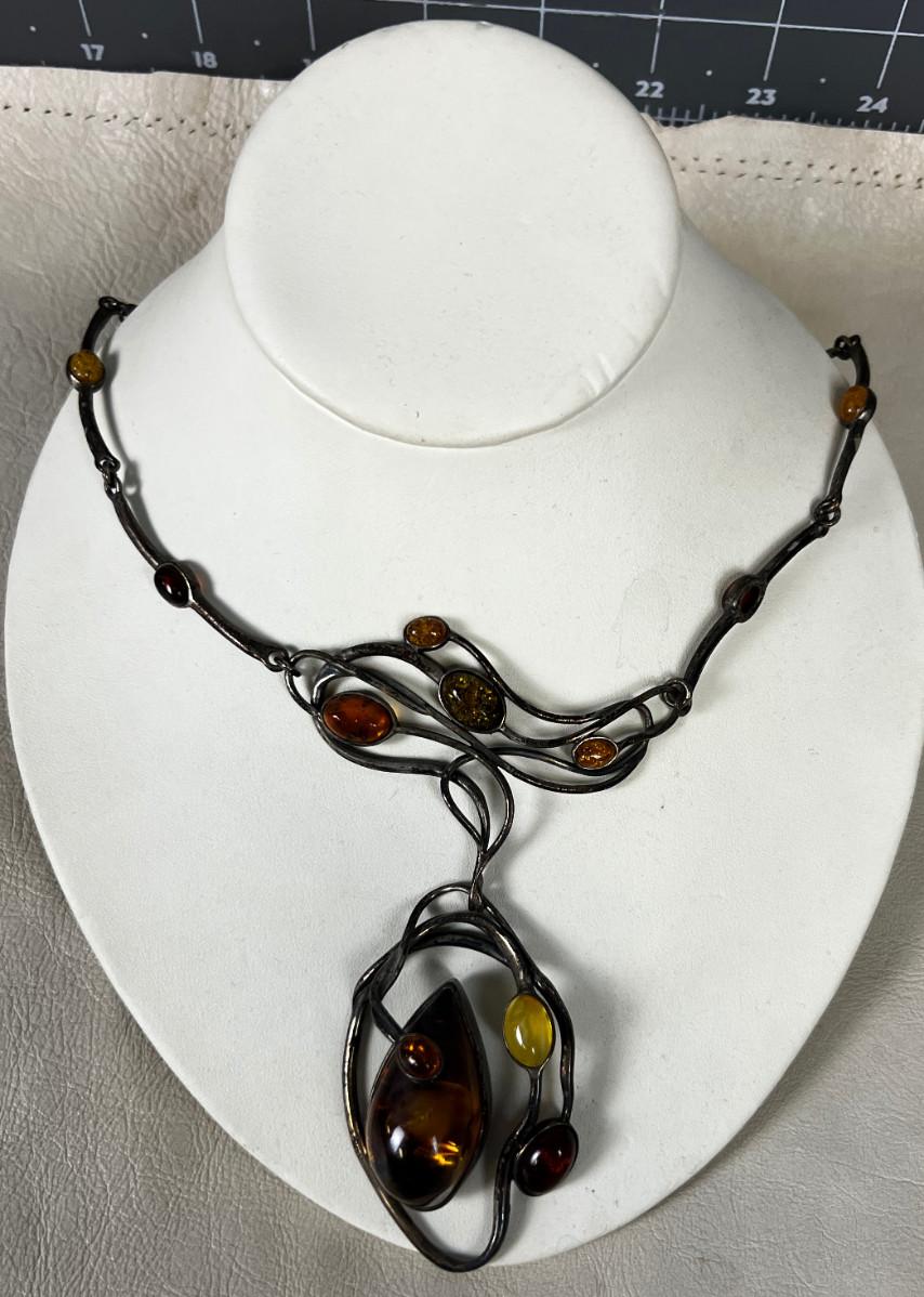 53.8 Weight - Lots of Amber toned Stones . One Amber Stone for sure. Others could be plastic or unidentified Stones???