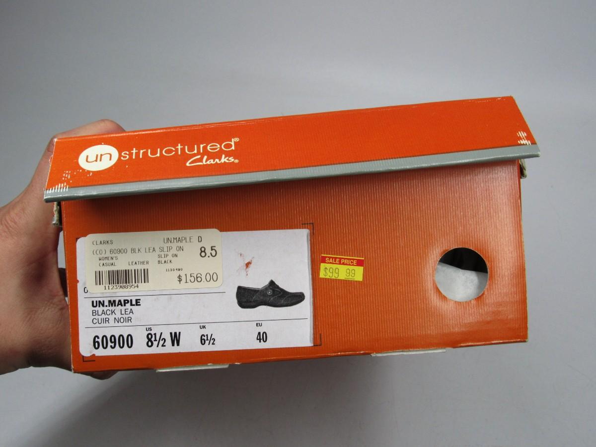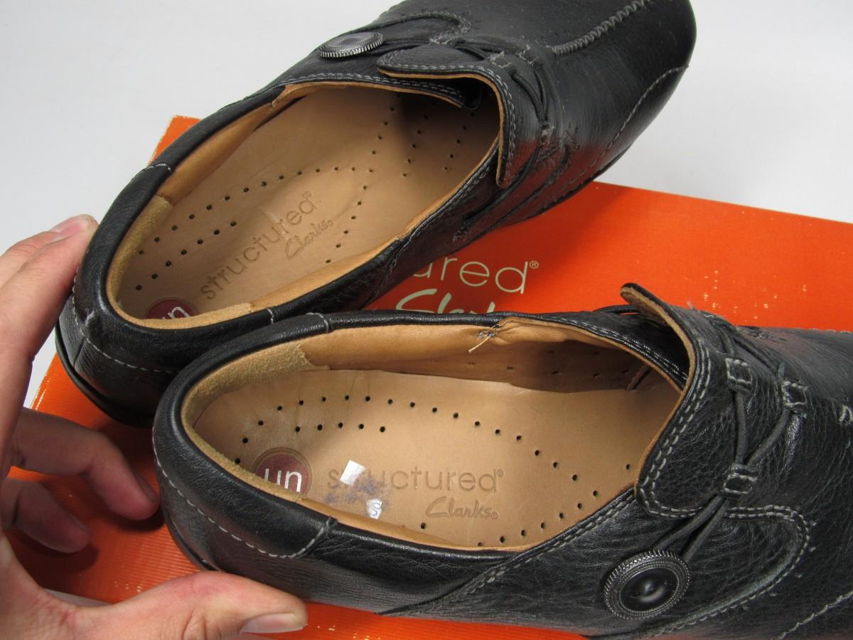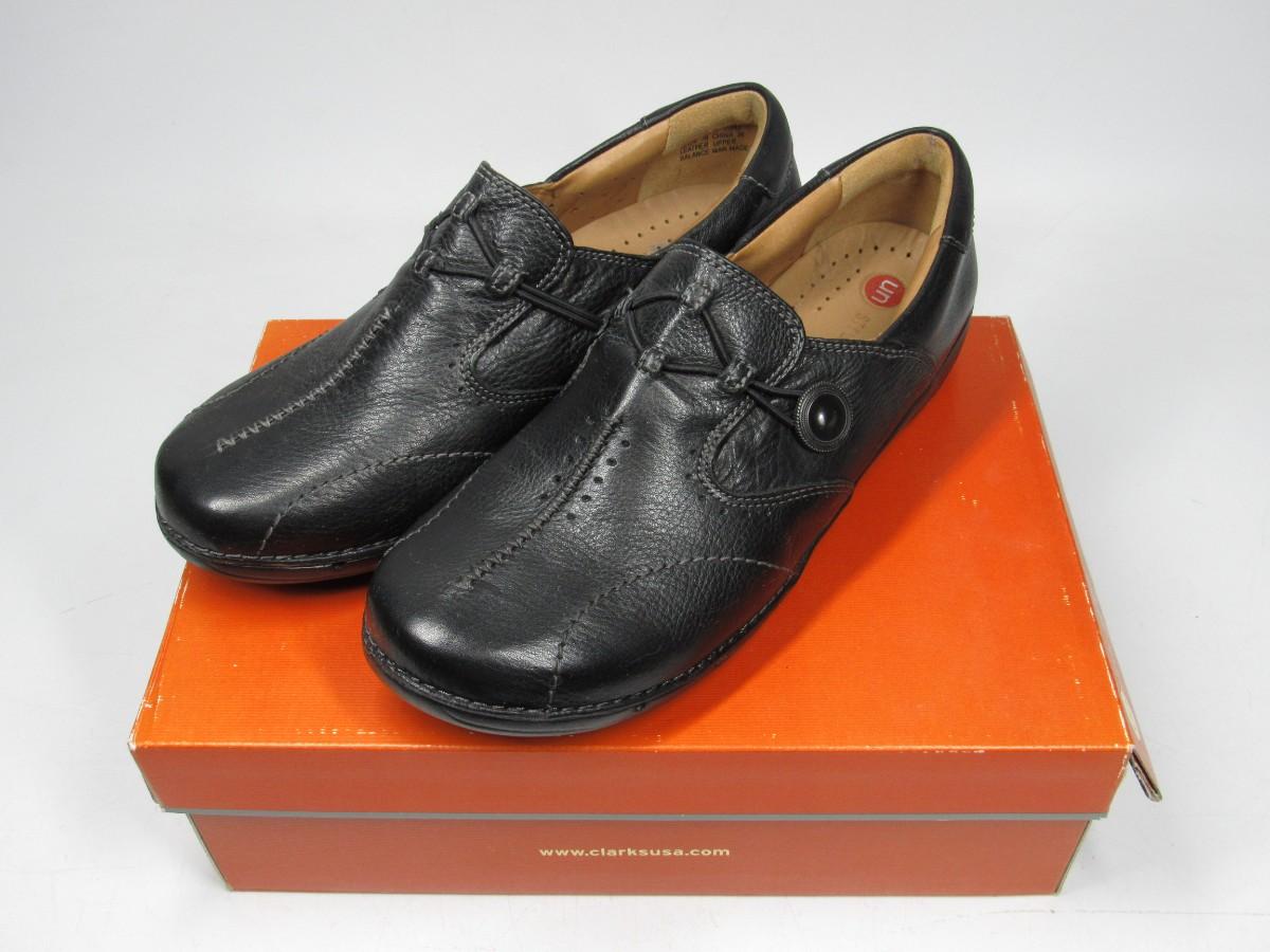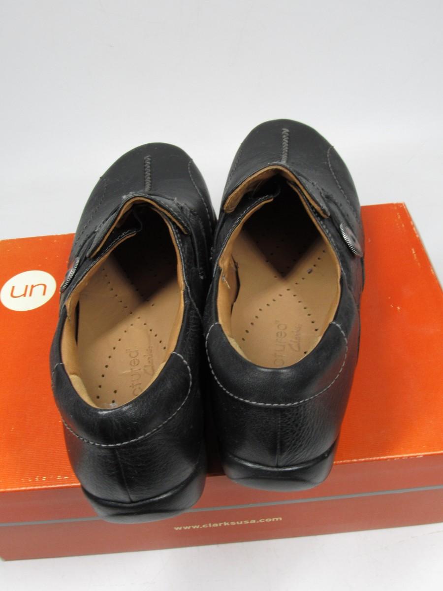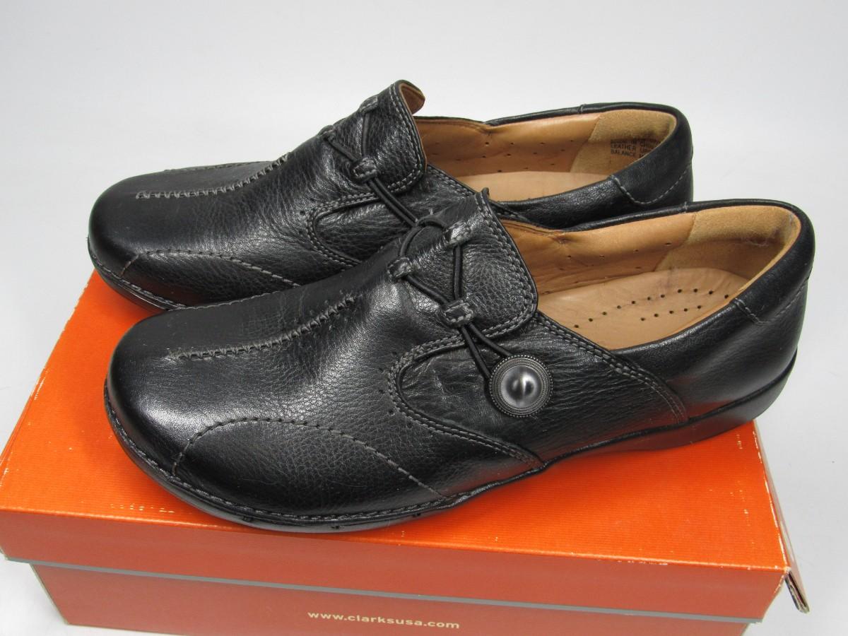 Unstructured Clarks Black Lea Slip Ons Womens 8 1/2 Comfy Walking Shoes