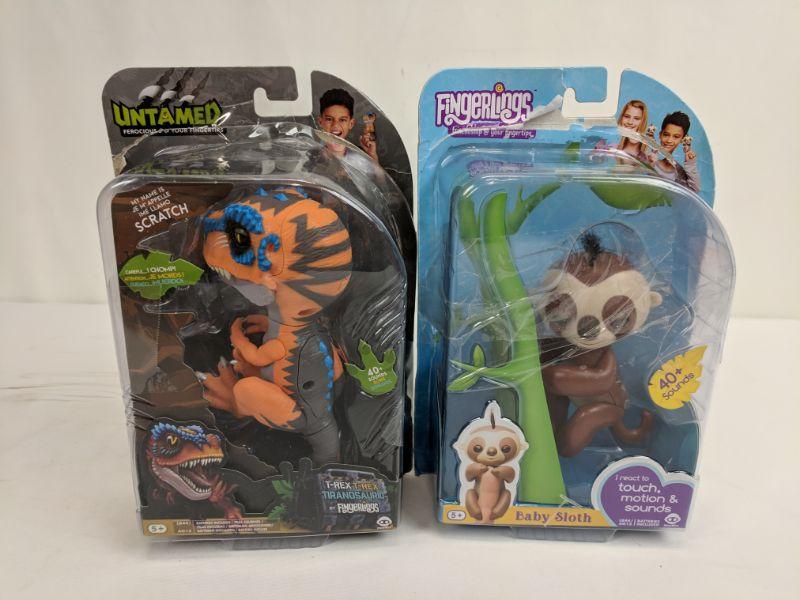 Untamed T-Rex by Fingerlings & Baby Sloth Fingerling, Both Pkg Open - New