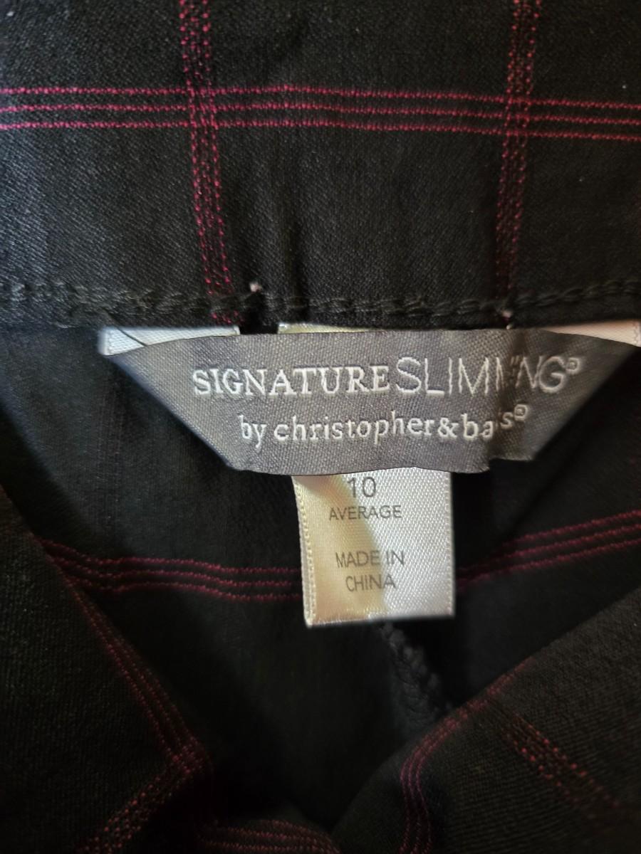 Christopher & Banks Signature Slimming black pants with red plaid pattern – tailored and stretch blend