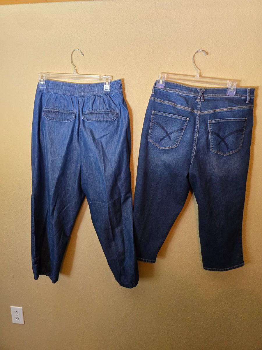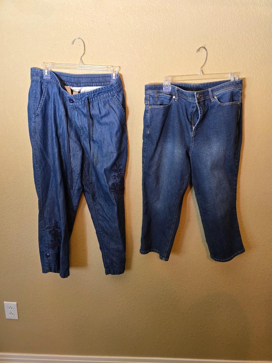Add timeless versatility to your wardrobe with this set of two size 10 denim pants from Christopher & Banks. This lot includes: