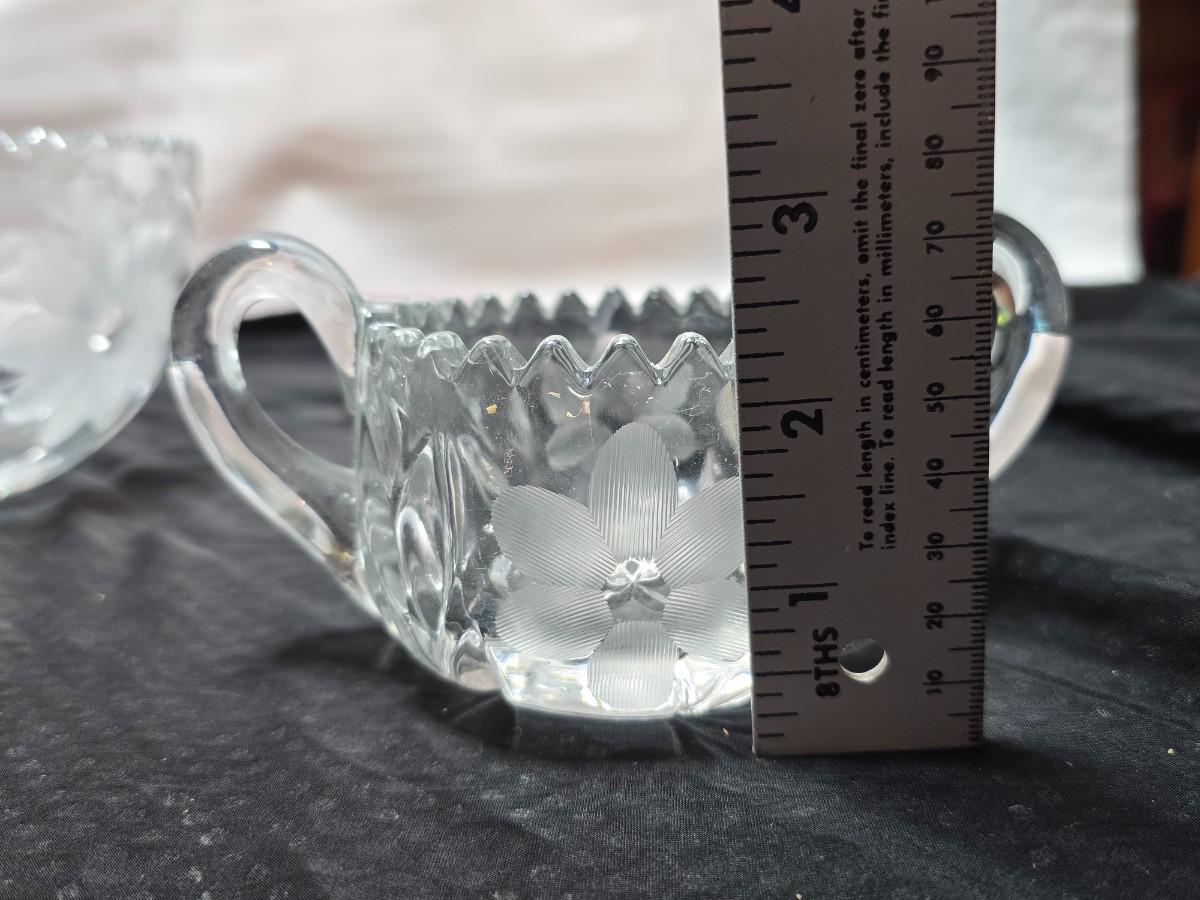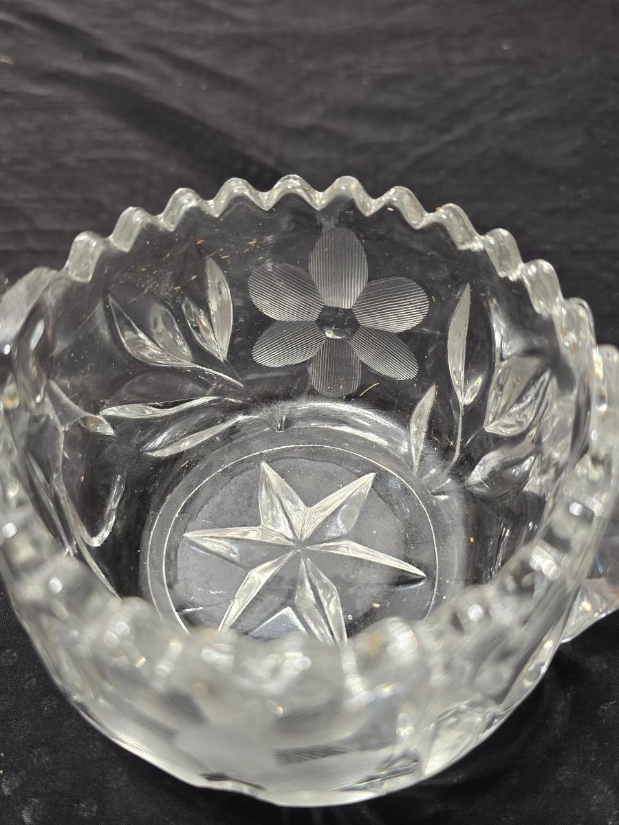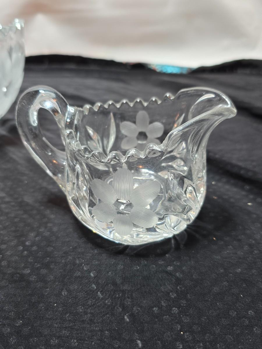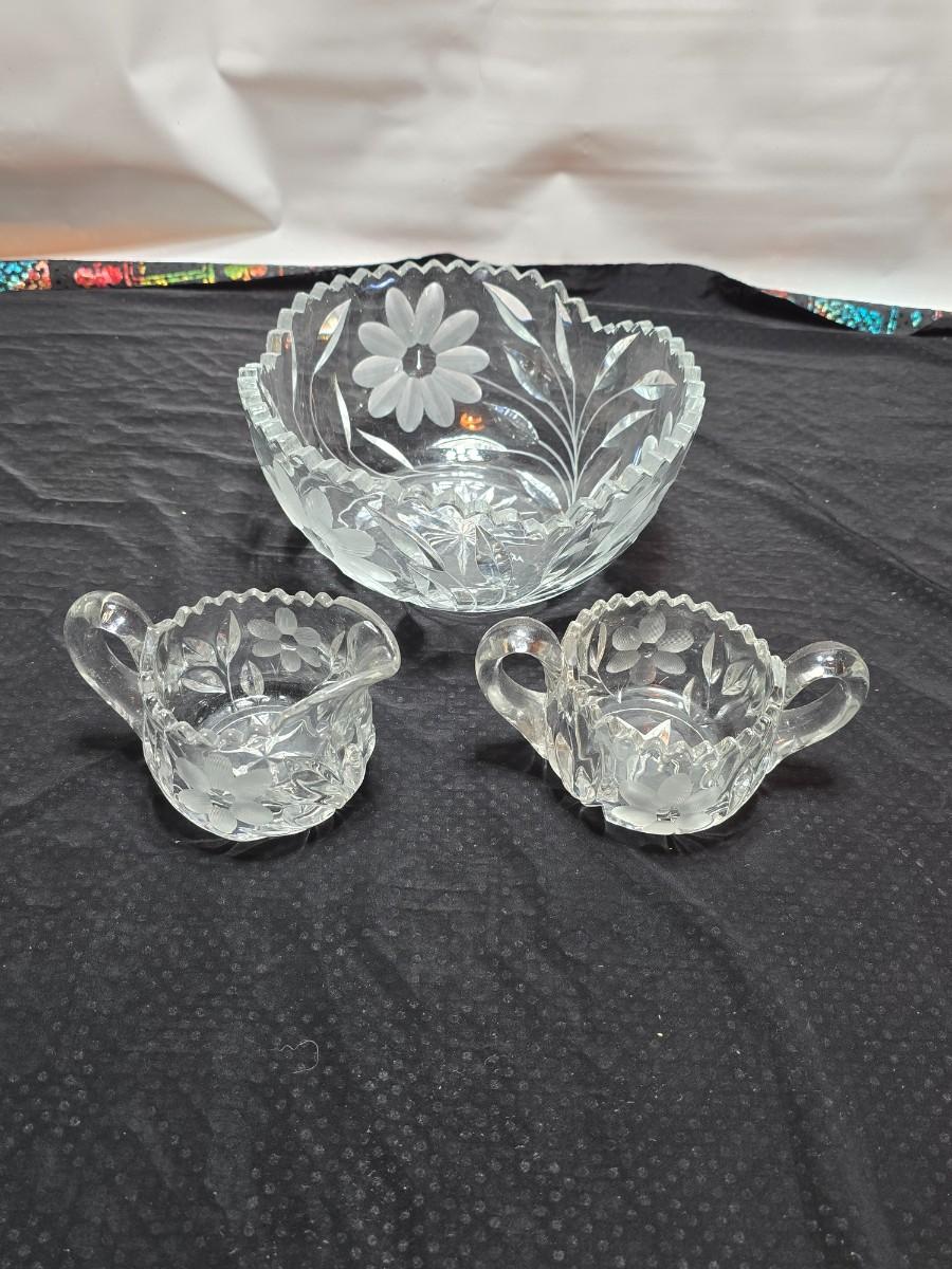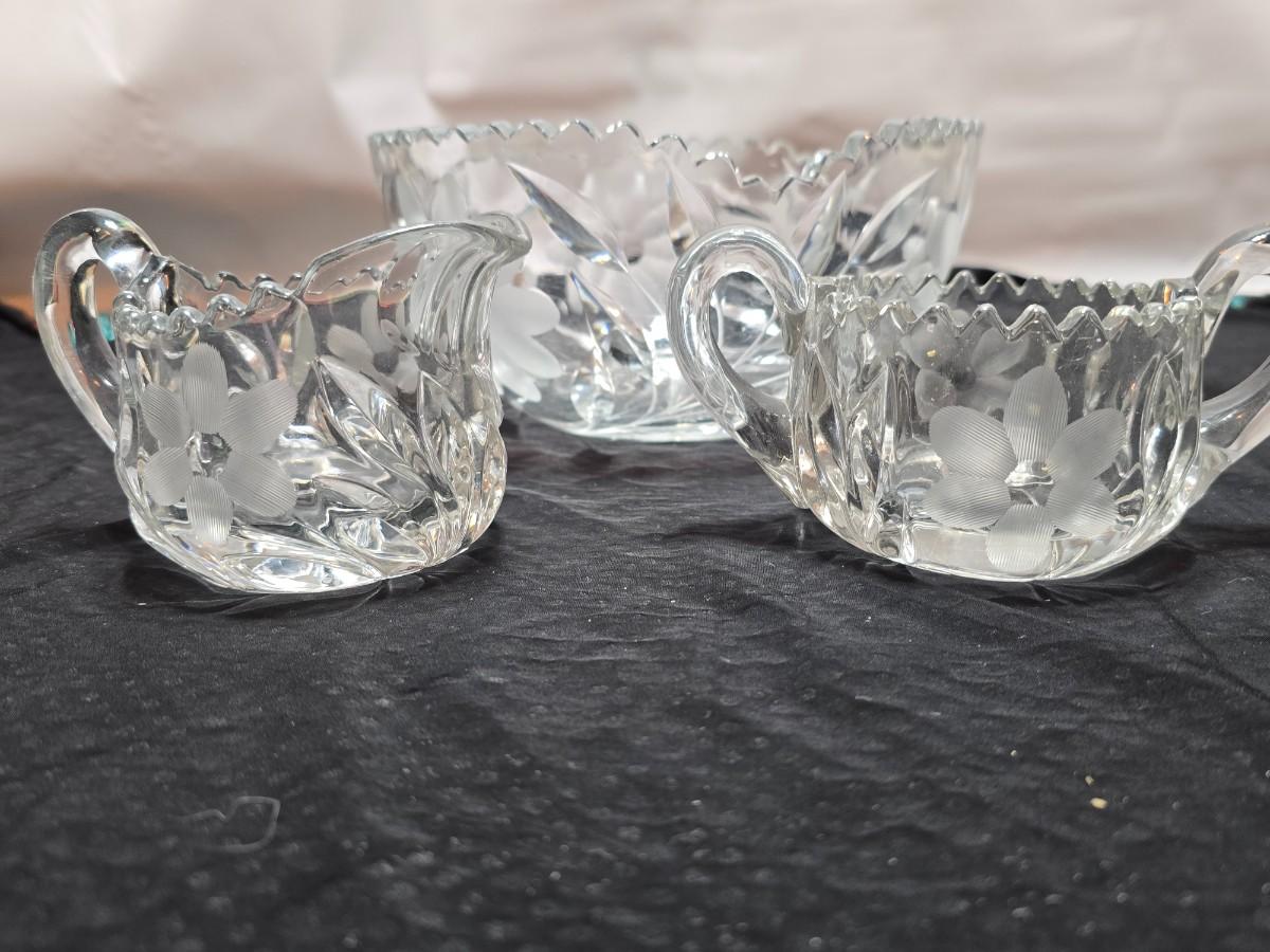 Vintage American Brilliant cut crystal leaf and frosted flower bowl with matching sugar & creamer - saw tooth daisy