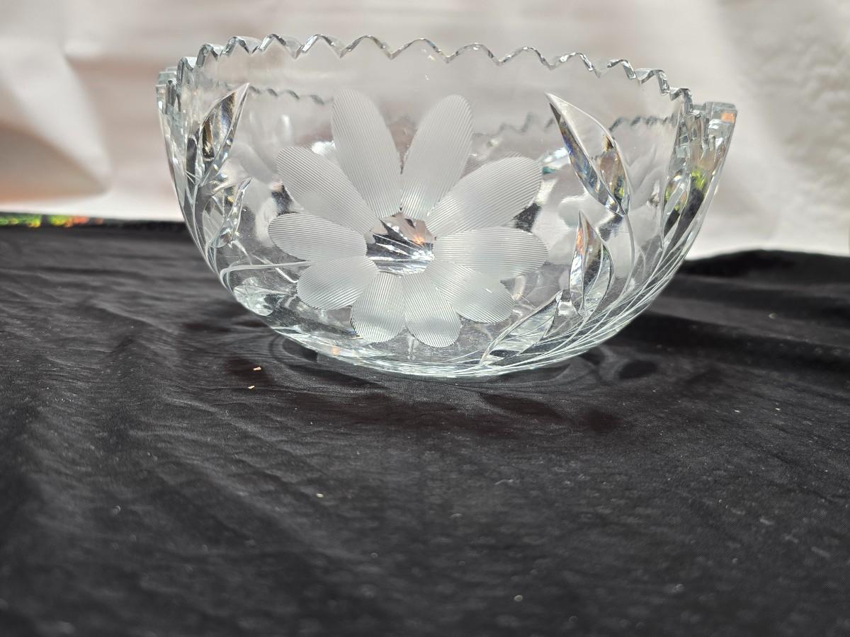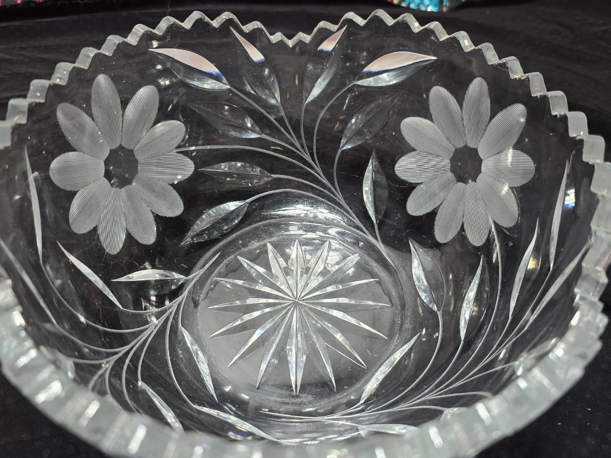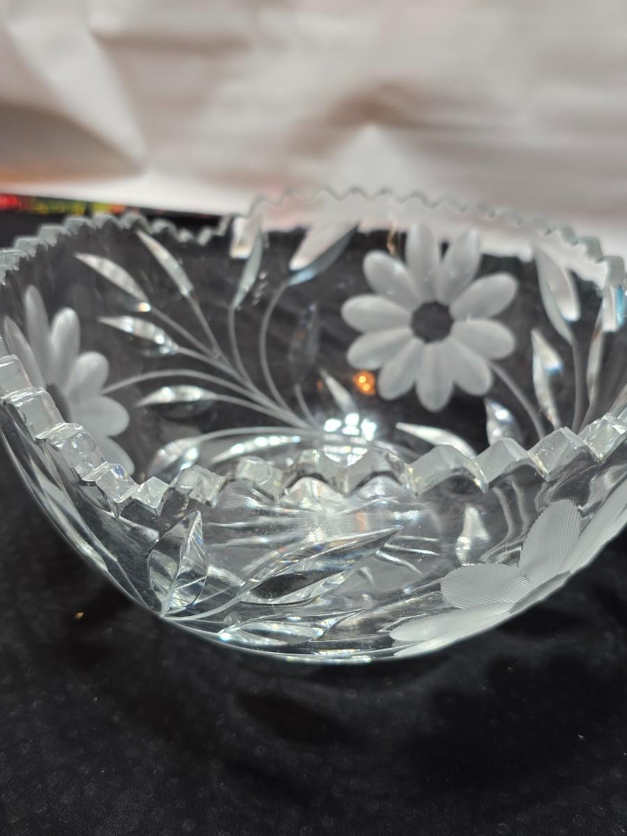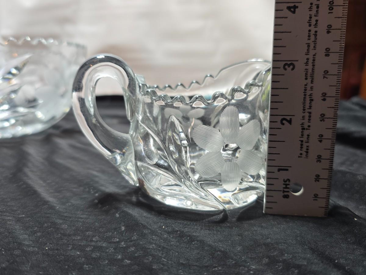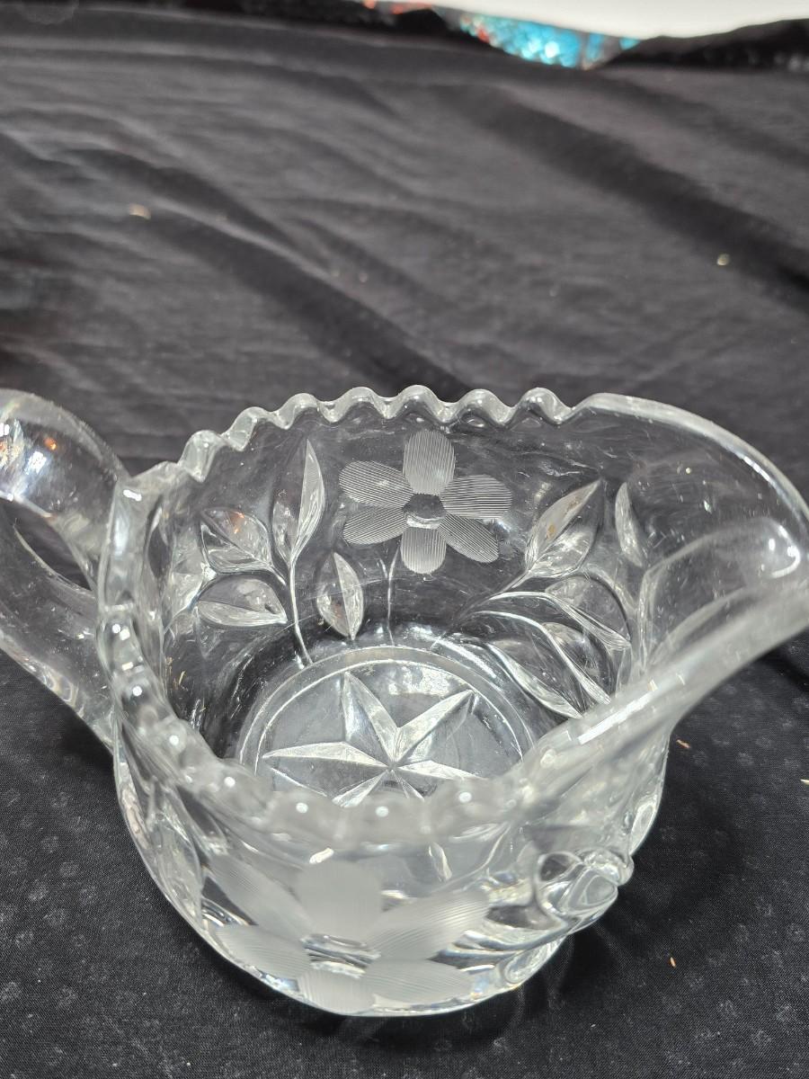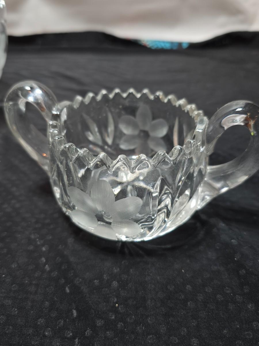 Vintage American Brilliant cut crystal leaf and frosted flower bowl with matching sugar & creamer - saw tooth daisy
