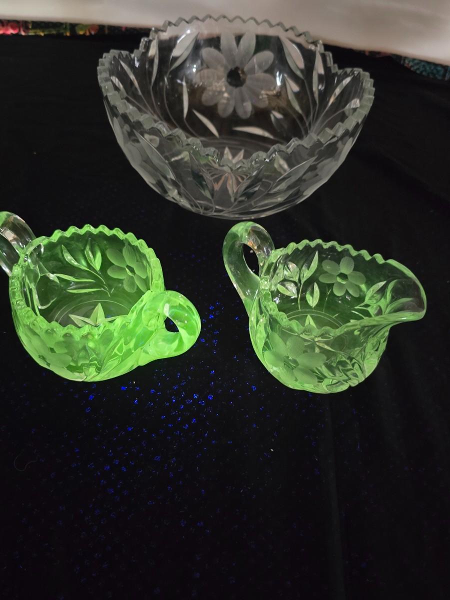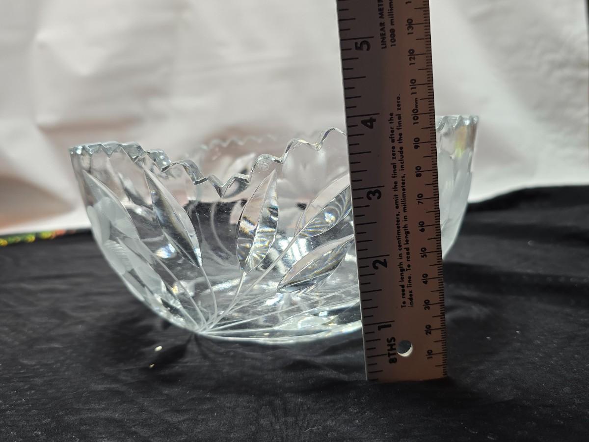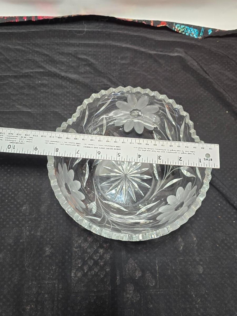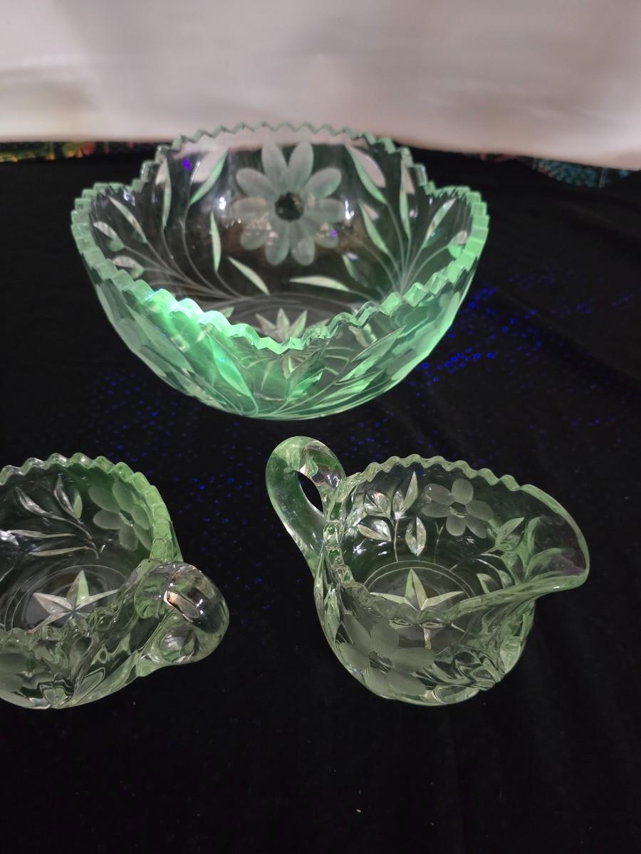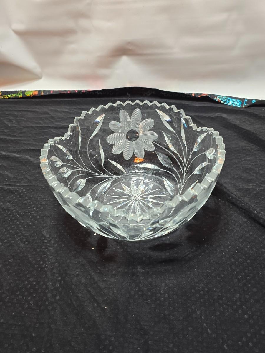Vintage American Brilliant cut crystal leaf and frosted flower bowl with matching sugar & creamer - saw tooth daisy