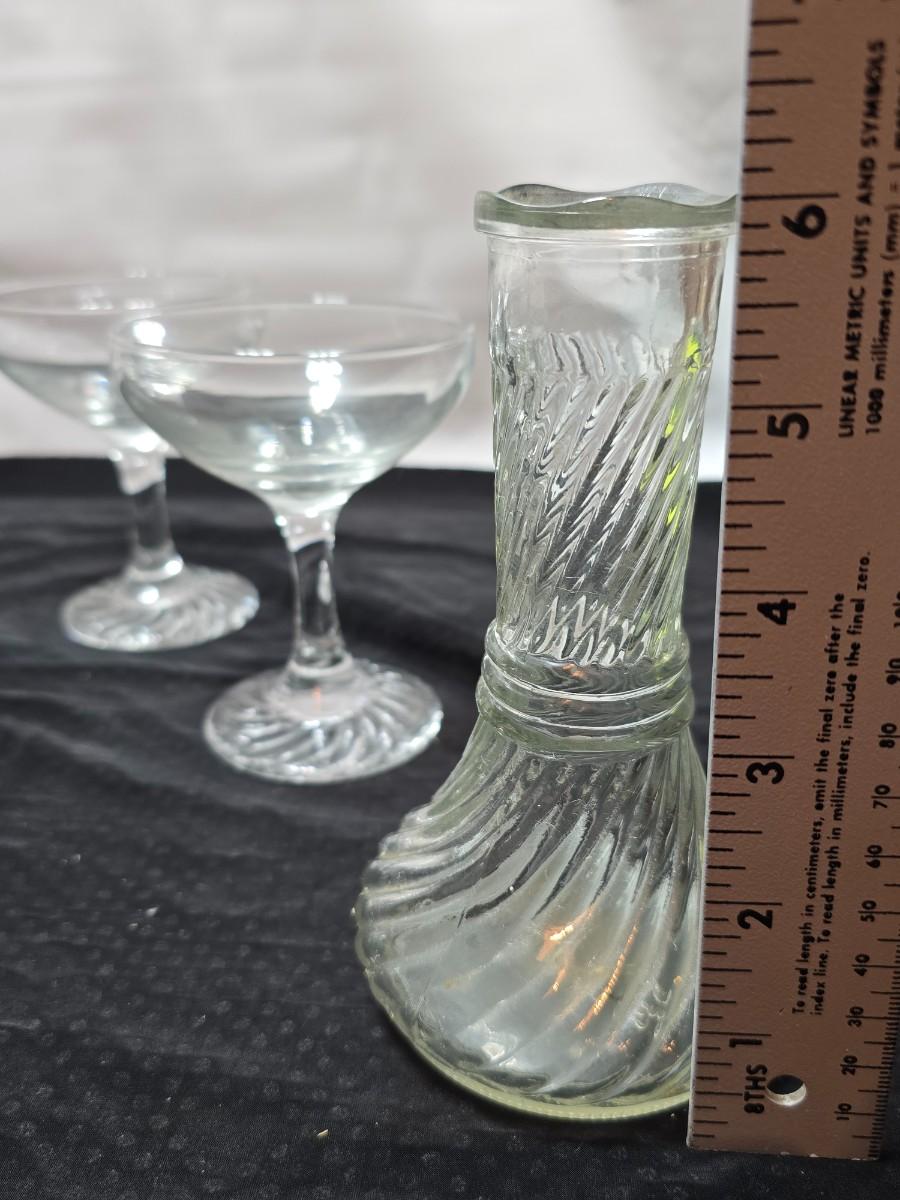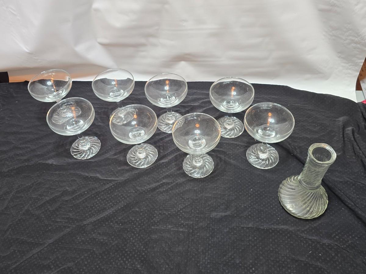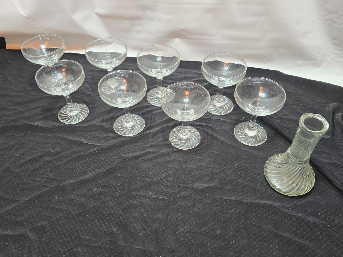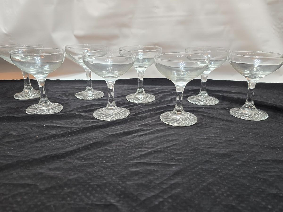 Vintage Cocktail Champagne Martini glasses - beautiful swirl base stemware set of 8