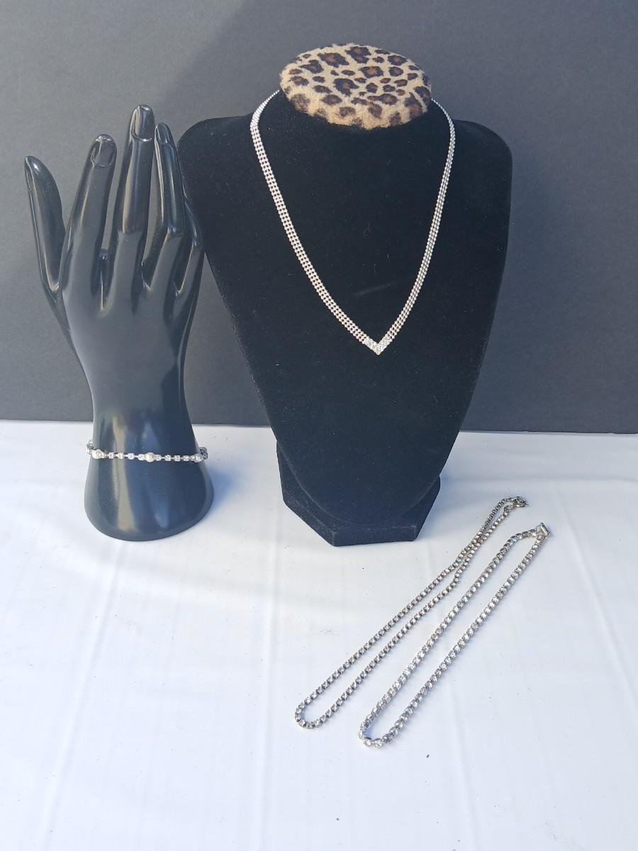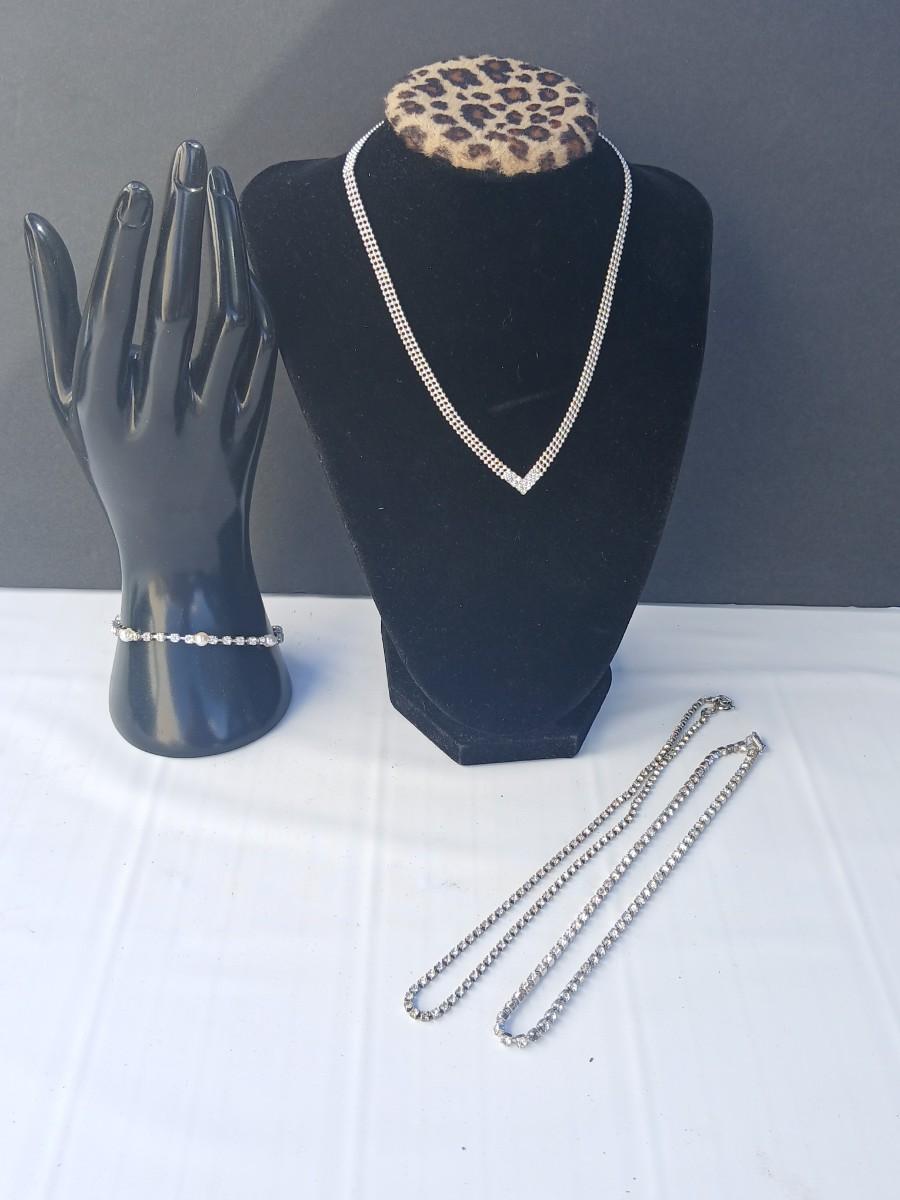 Rhinestone necklaces with a vintage rhinestone and faux pearl bracelet