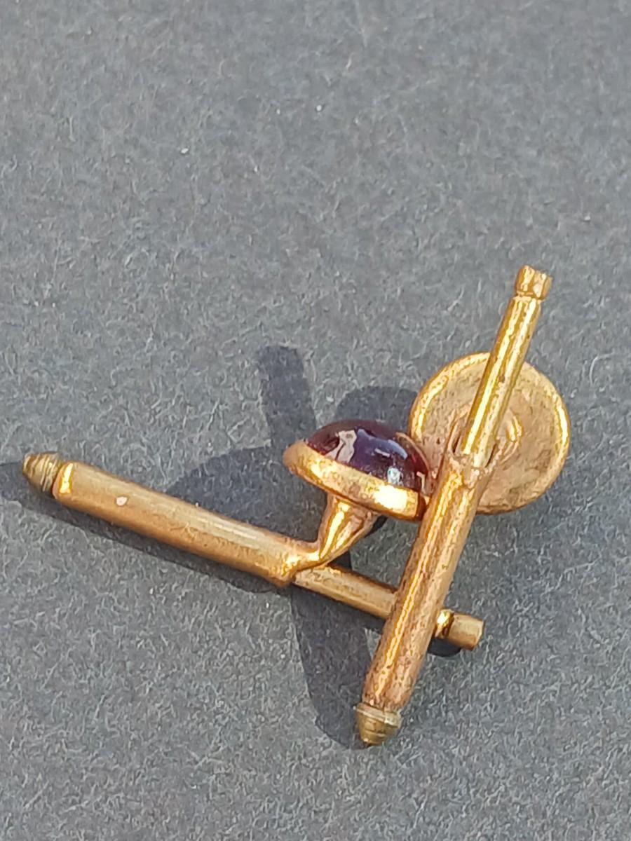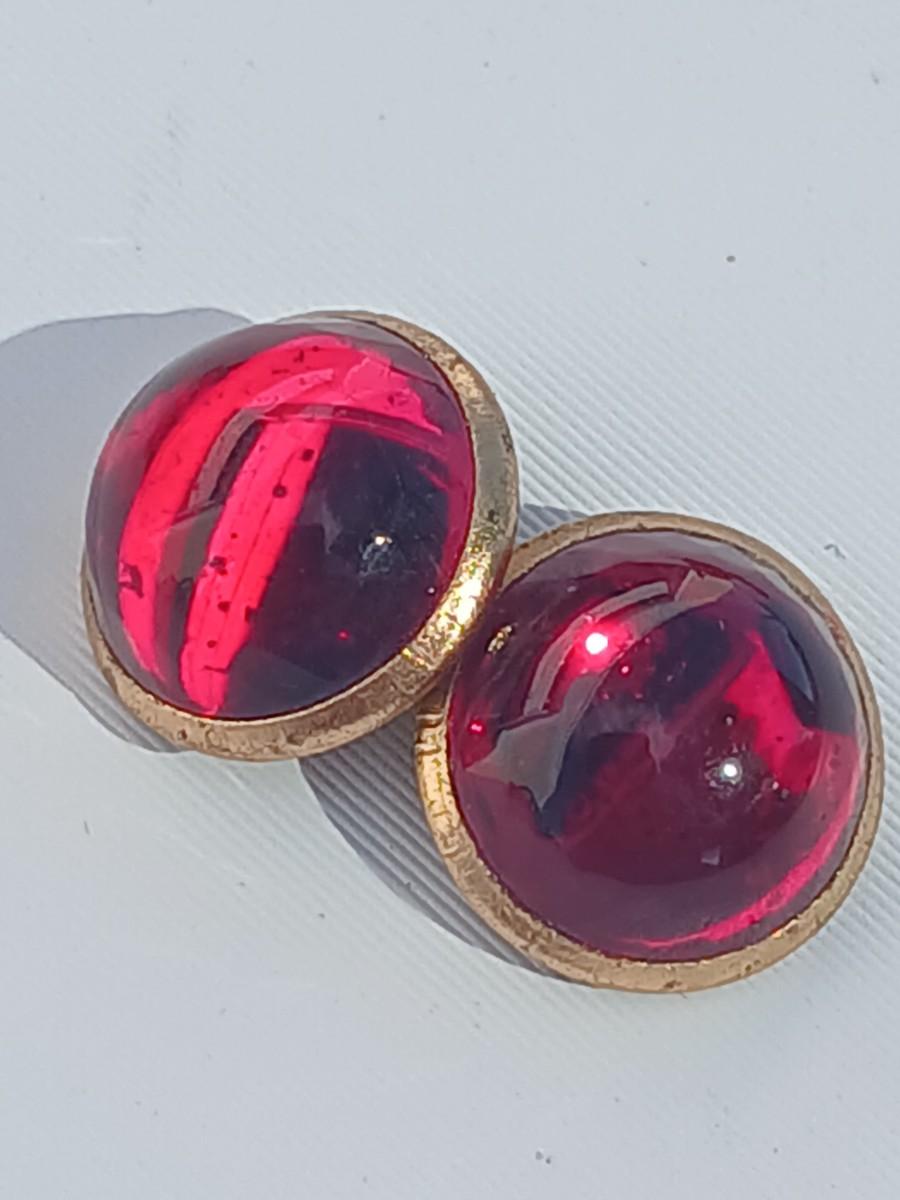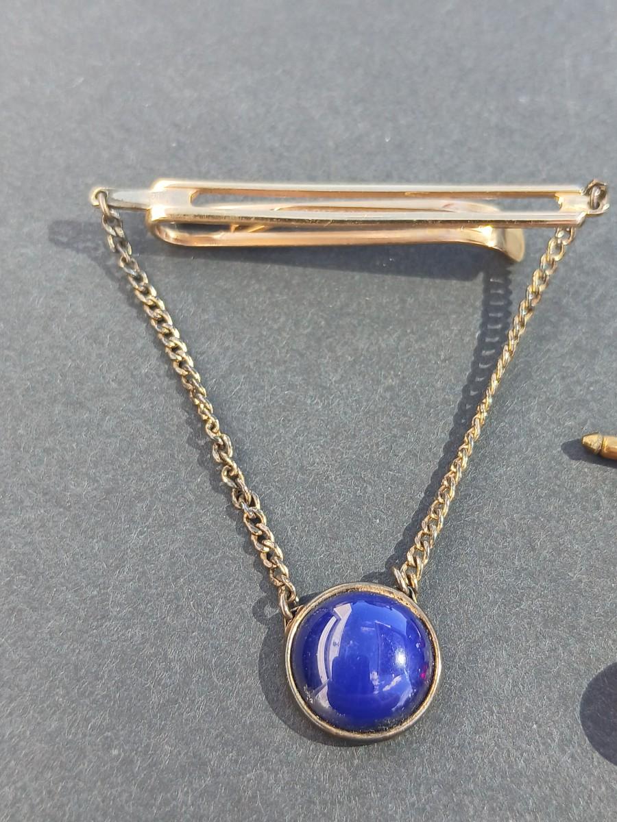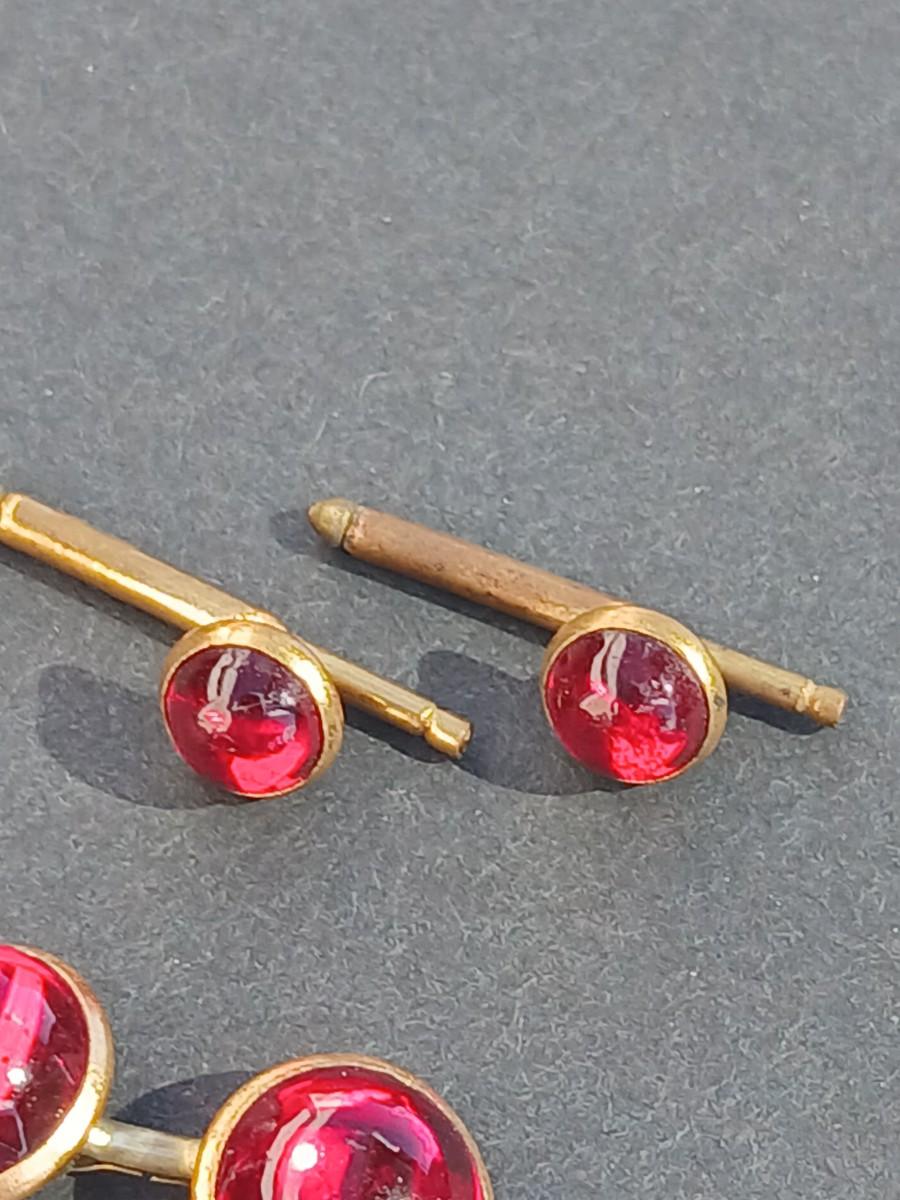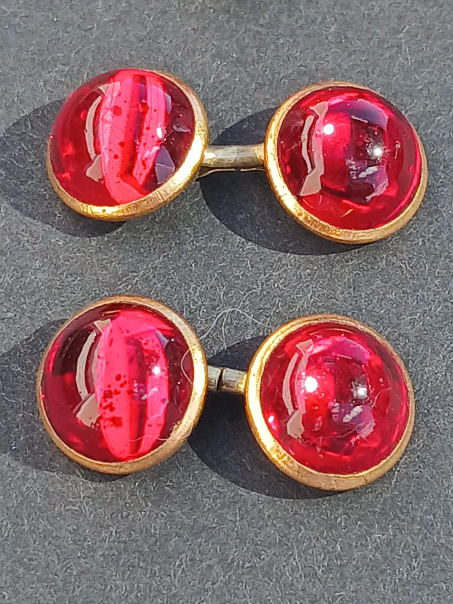 Vintage 1940's red Lucite deco cufflinks and matching shirt studs - with a Blue swinging tie clasp