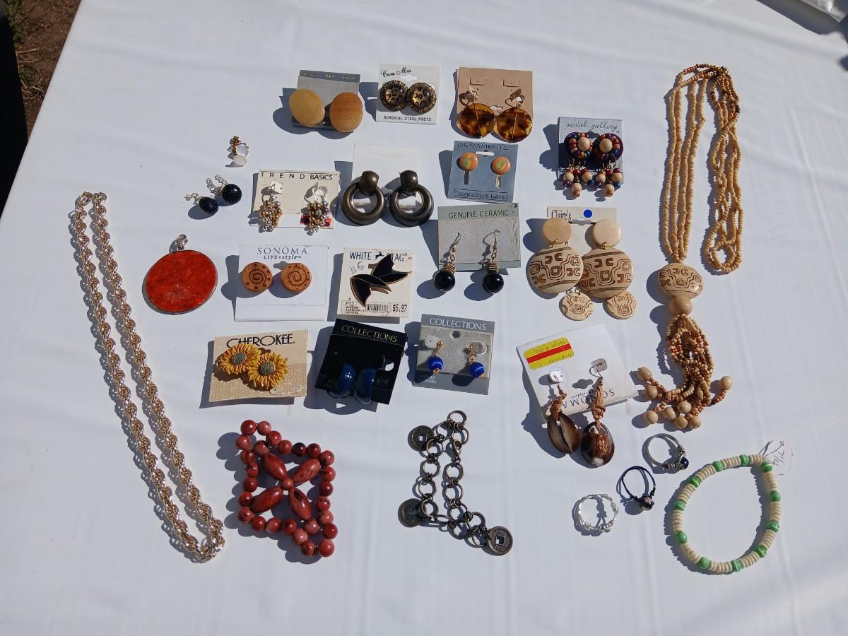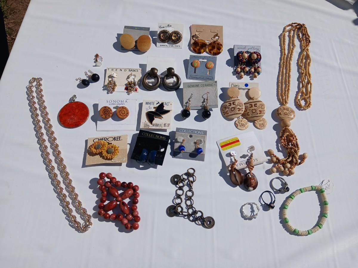 Fun and unique earrings - with necklace, bracelets, and rings