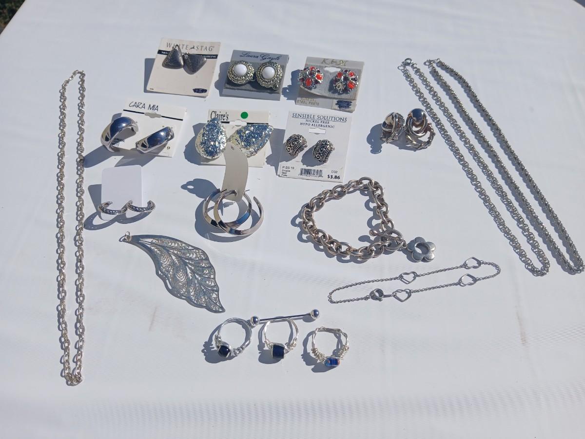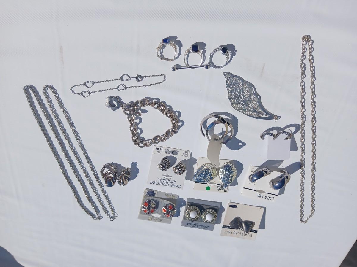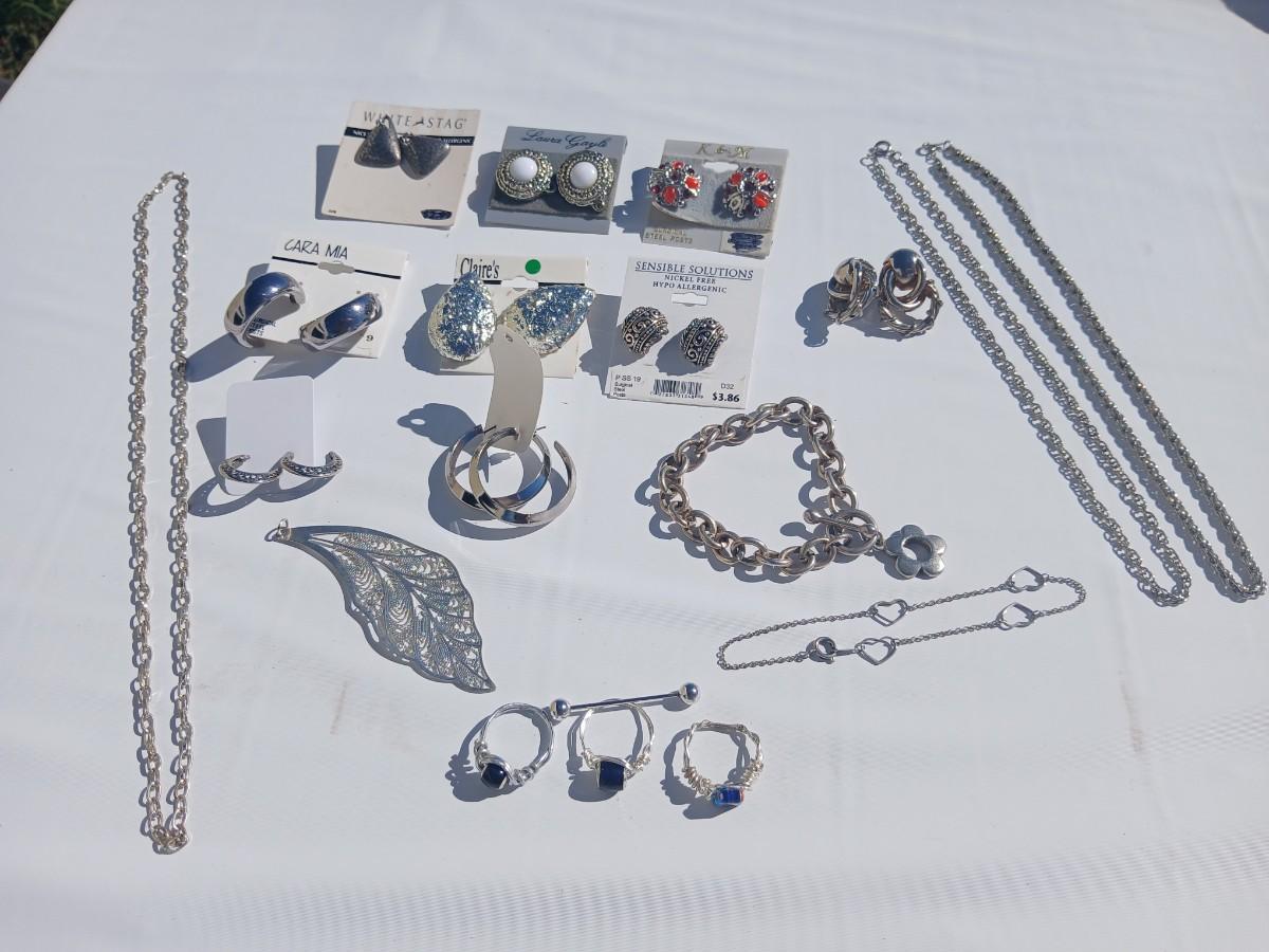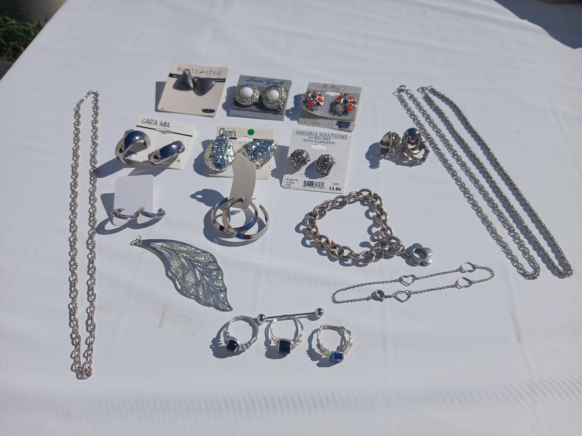Silver toned earrings, necklaces, pendants and more - all silver in color