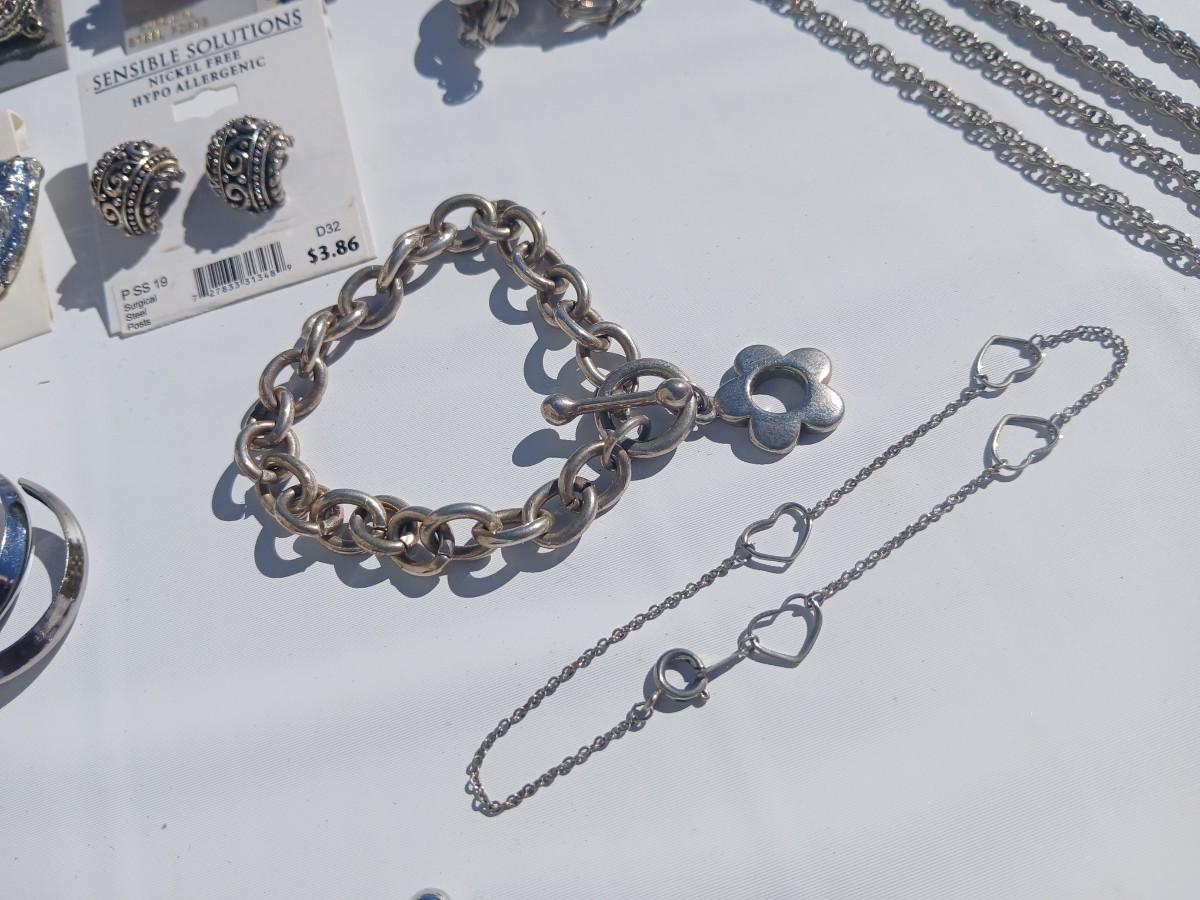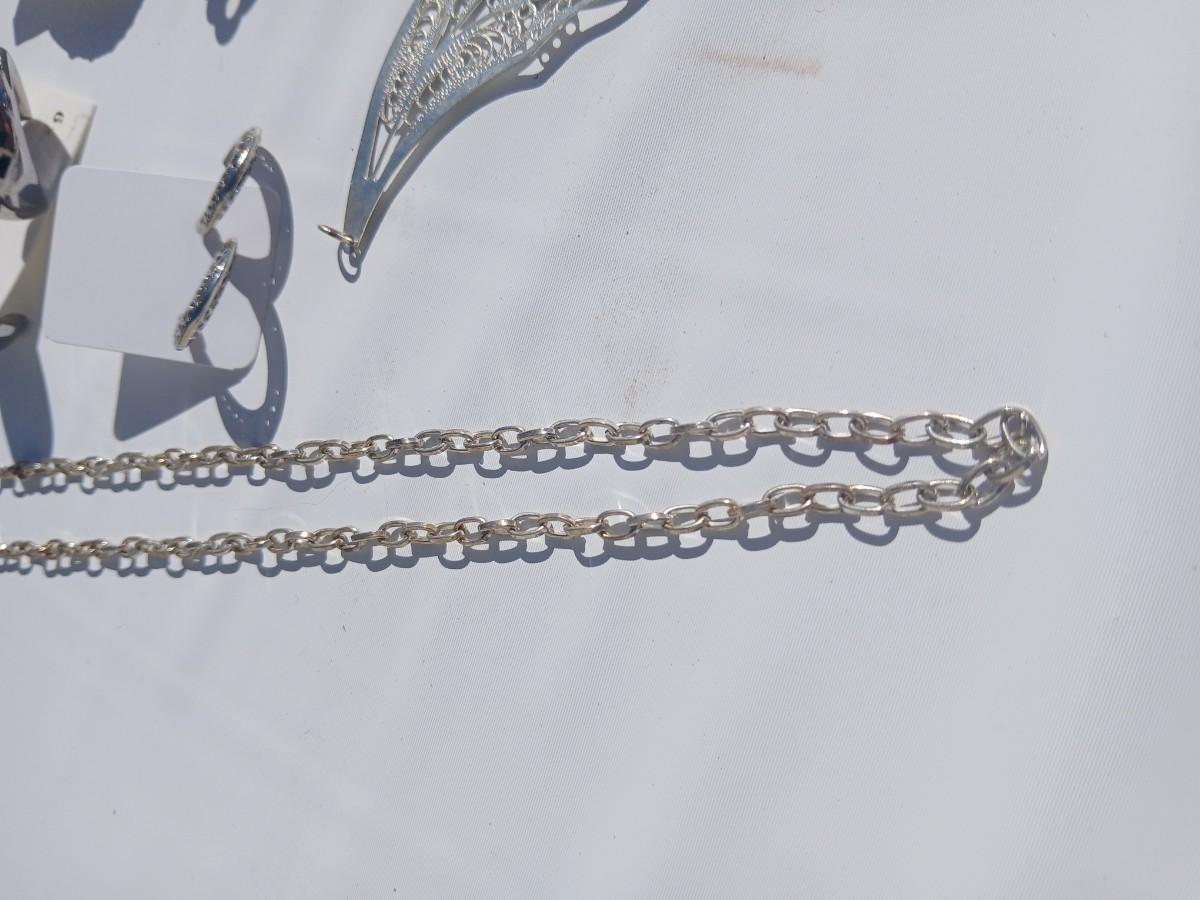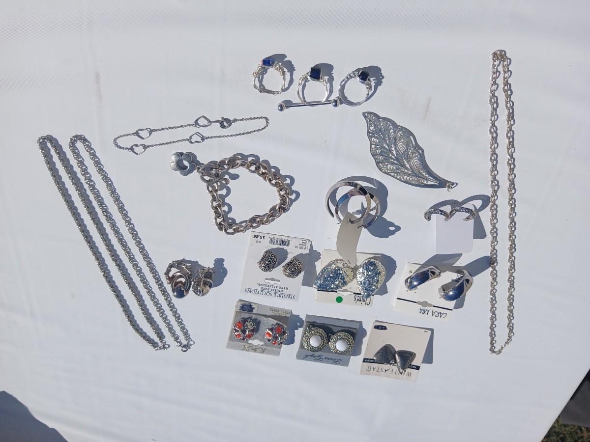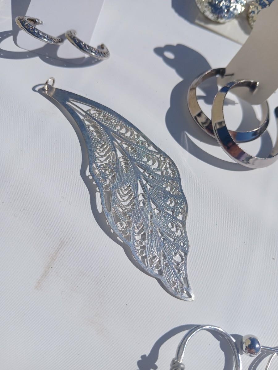 Silver toned earrings, necklaces, pendants and more - all silver in color
