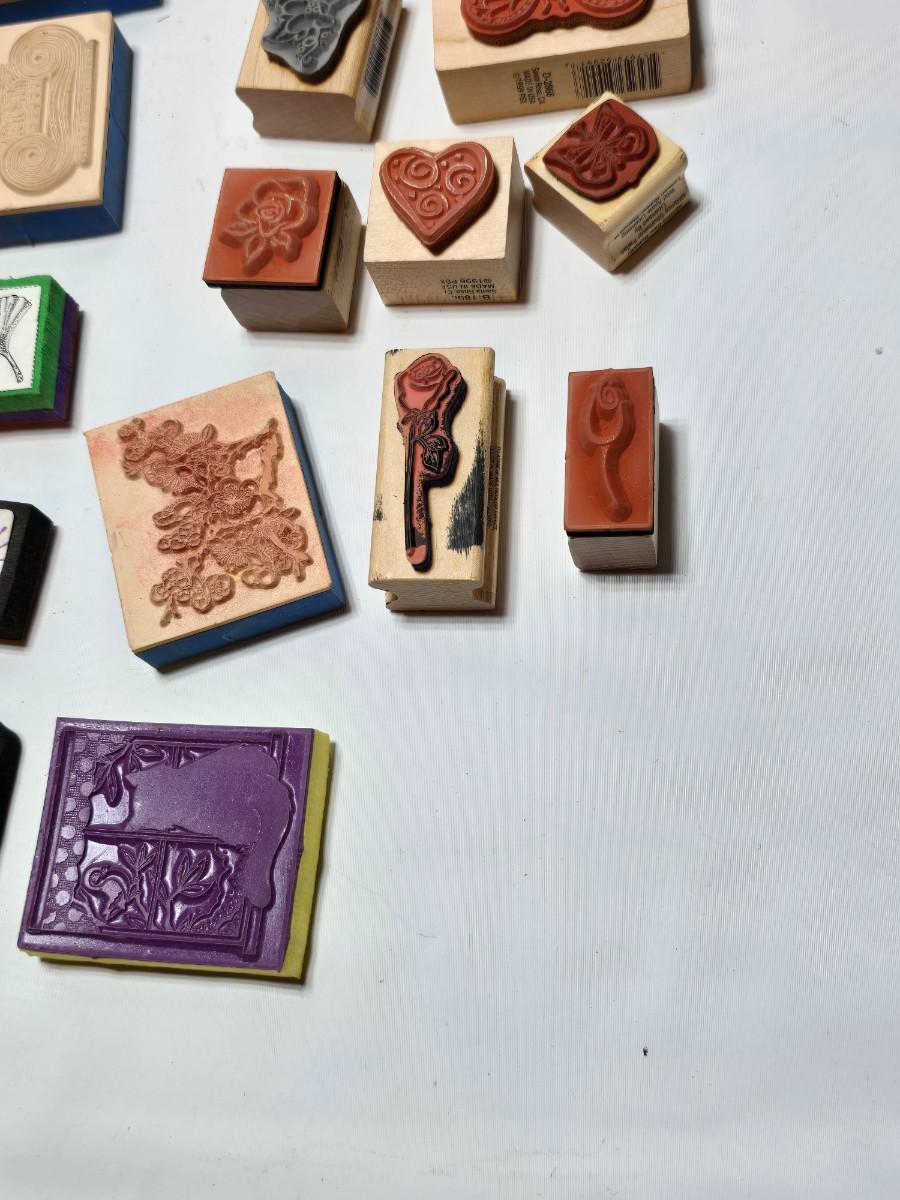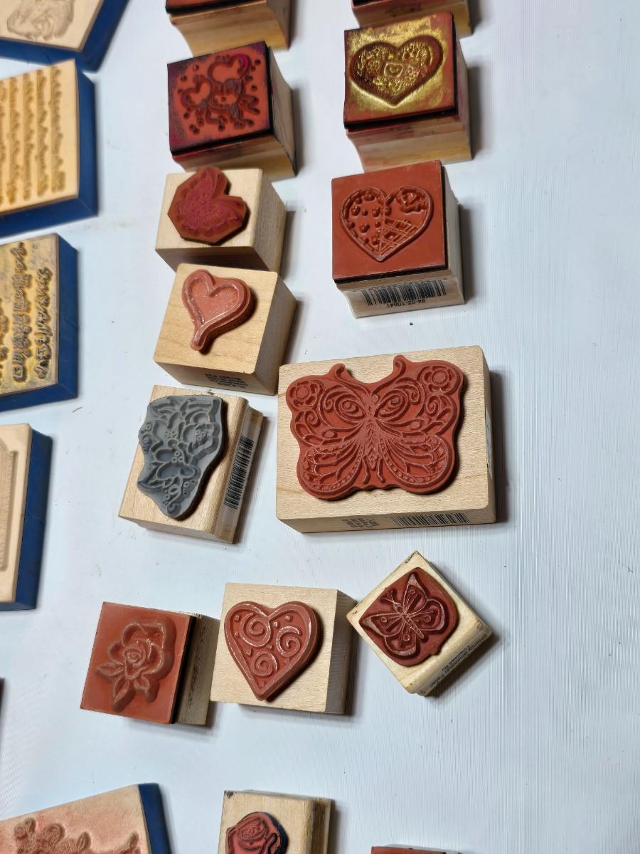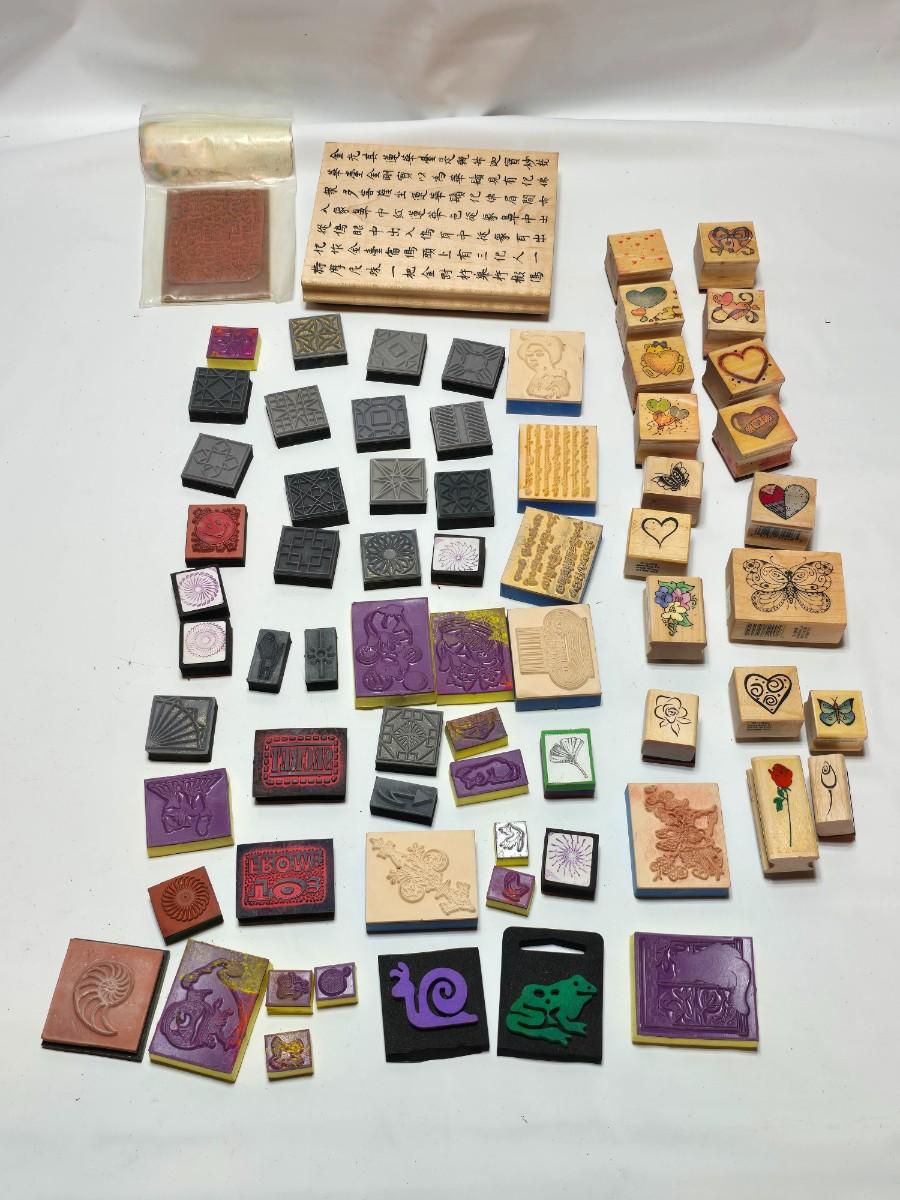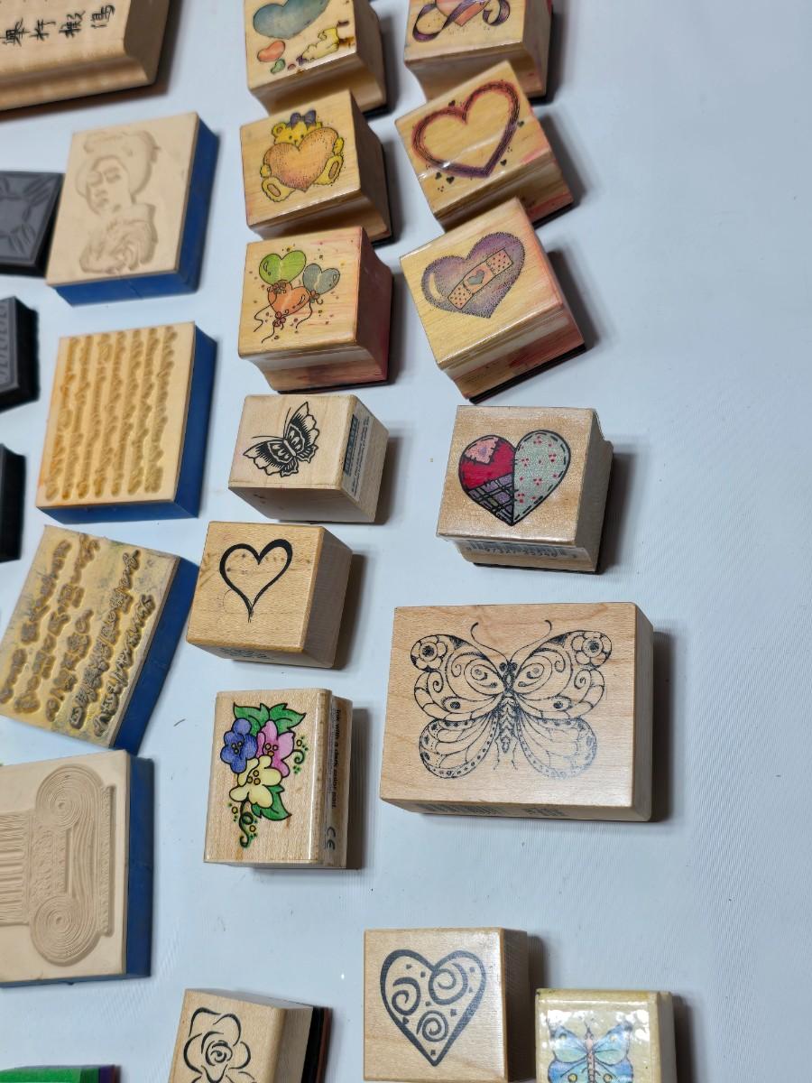 Wide variety of stamp blocks for crafting - Hearts -bugs-foreign letters- flowers - and many others!