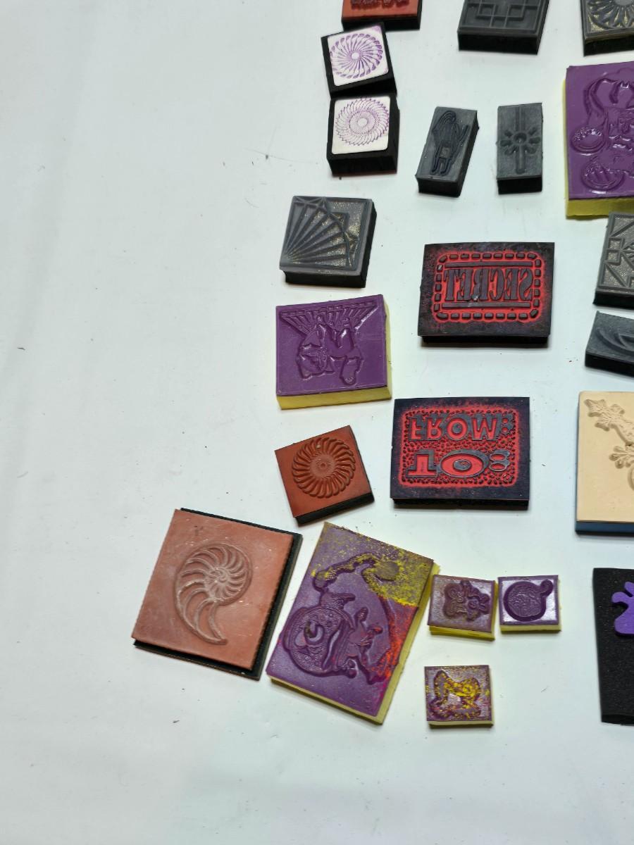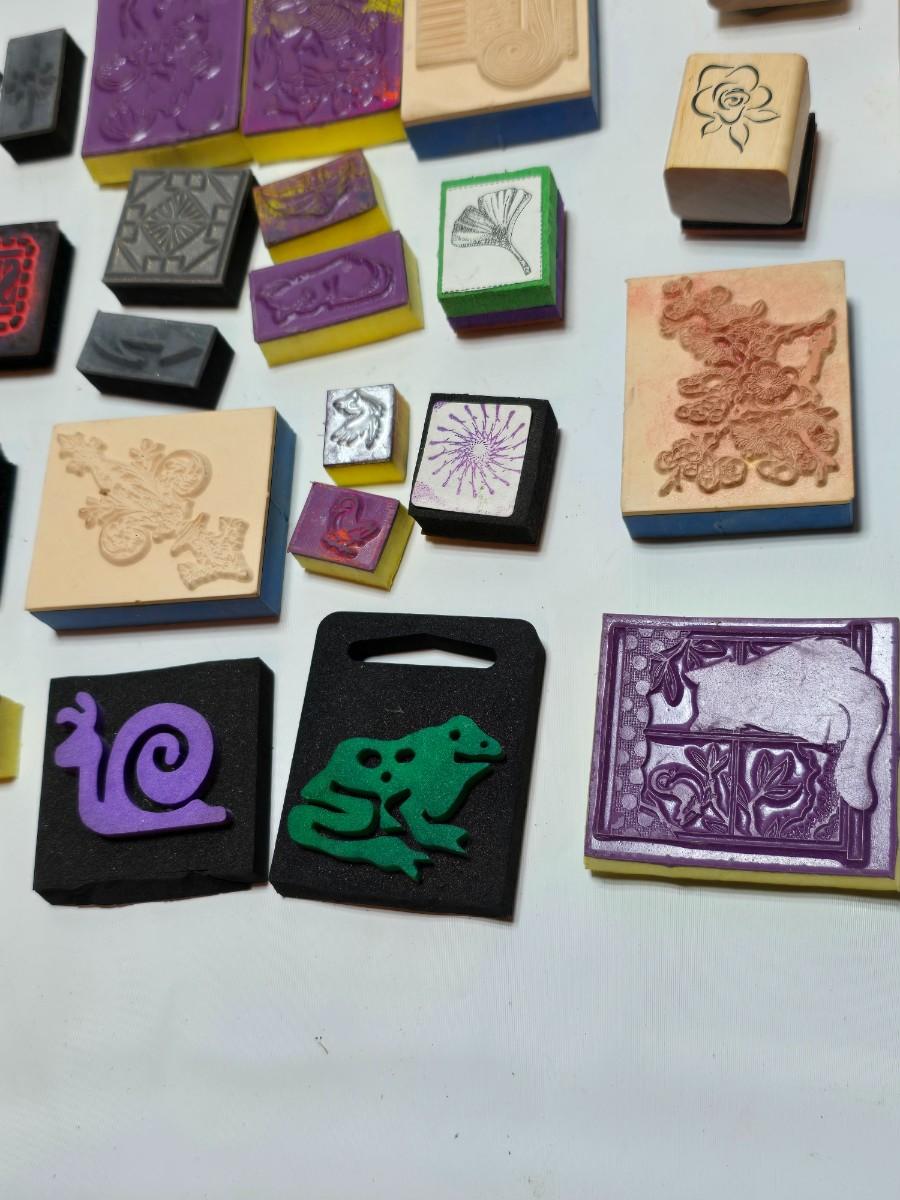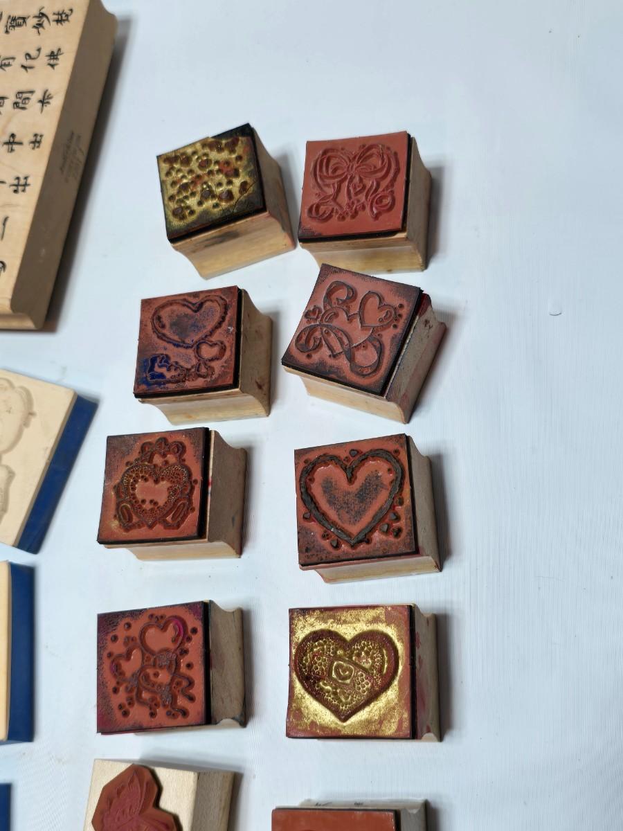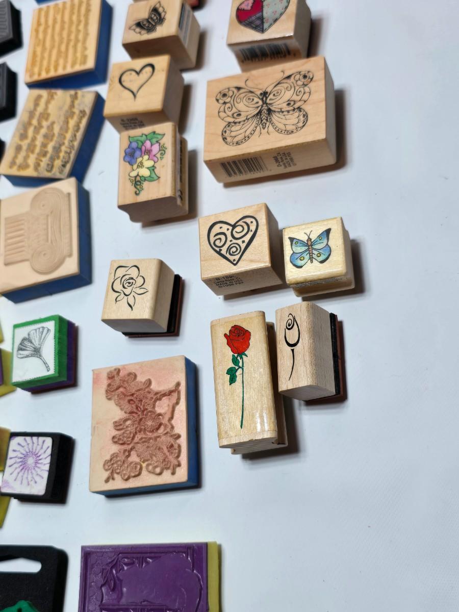 Wide variety of stamp blocks for crafting - Hearts -bugs-foreign letters- flowers - and many others!