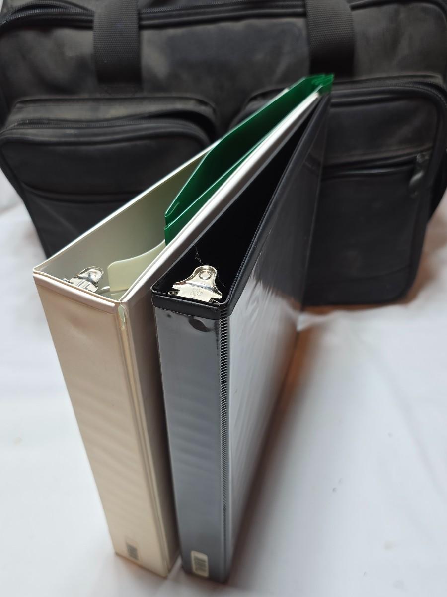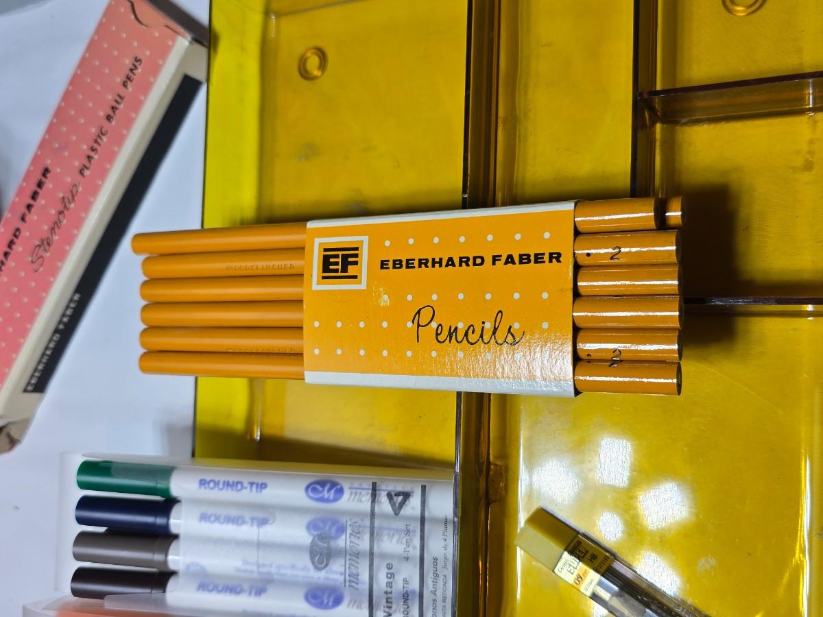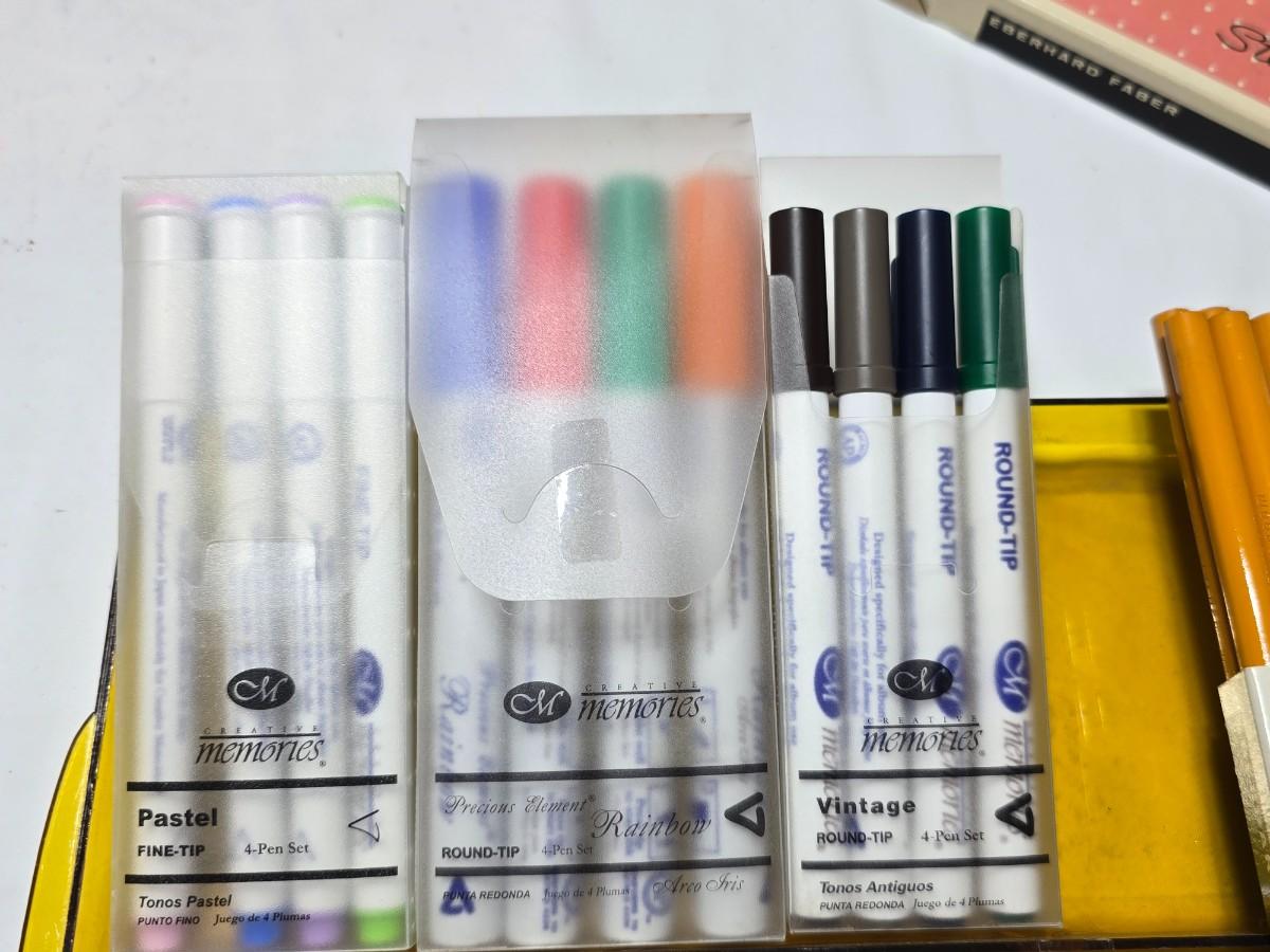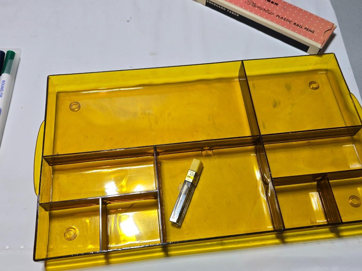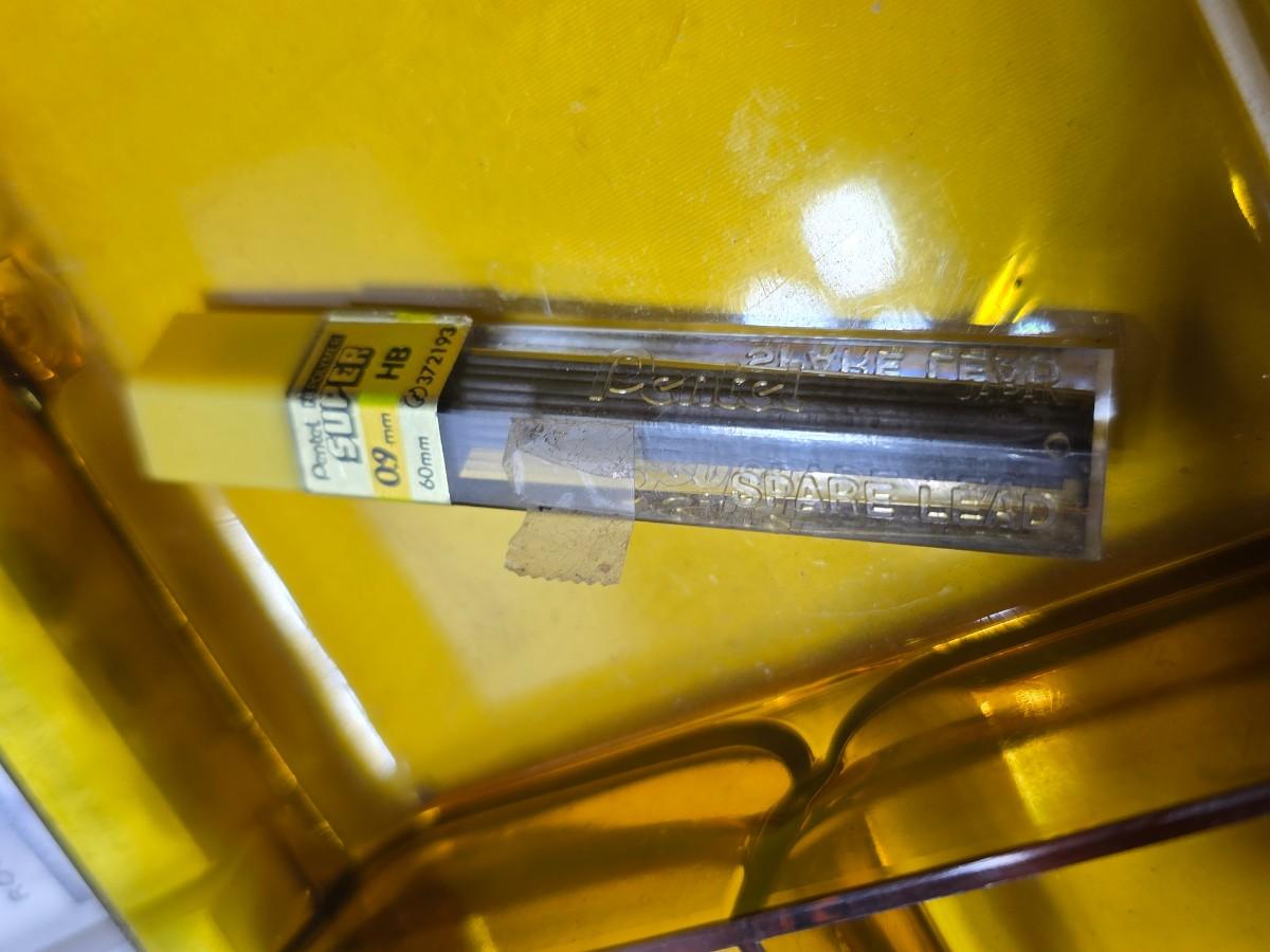 Office items - tape dispenser - old pencil sharpeners - brief case - files - folders- markers and more