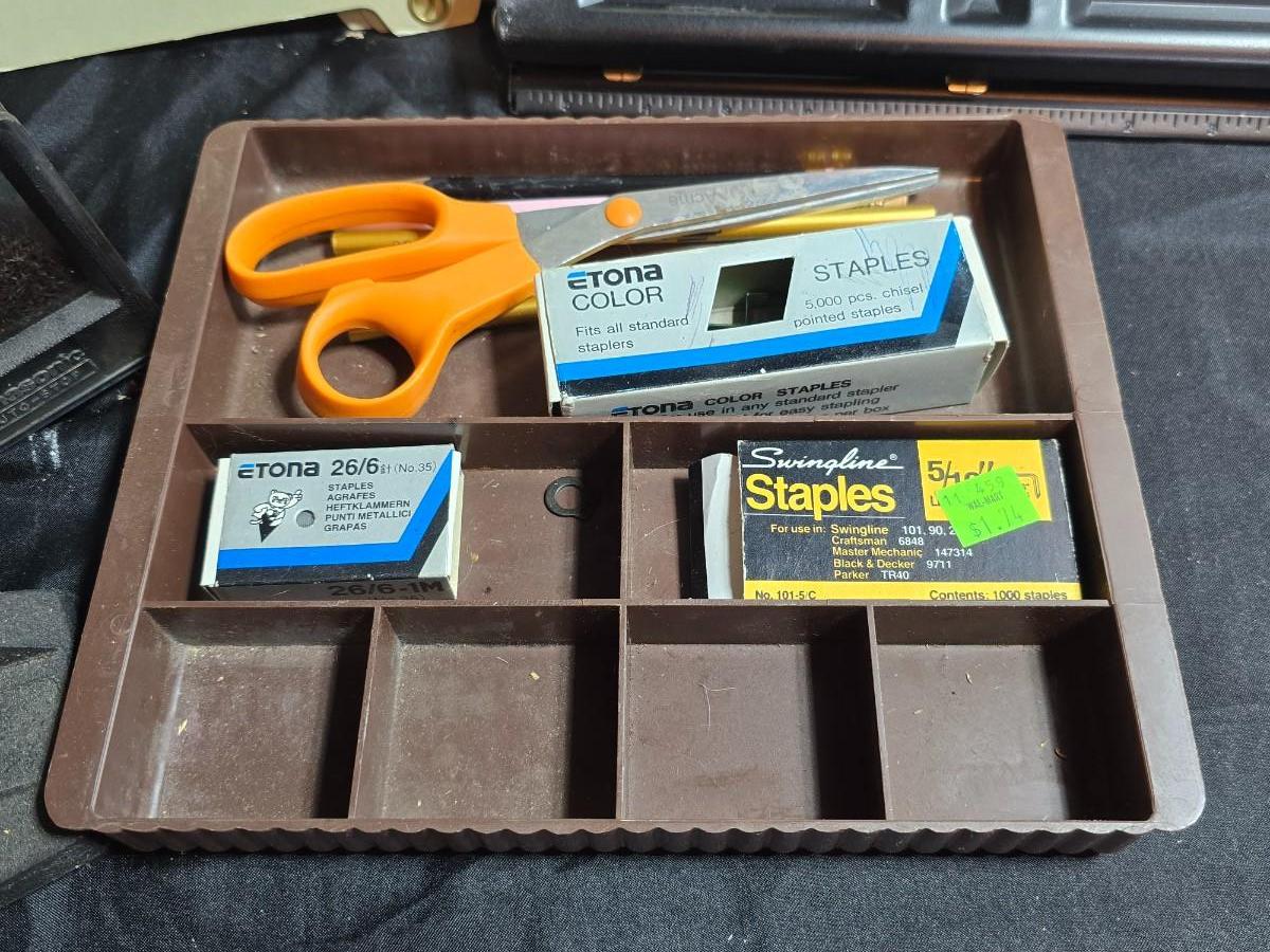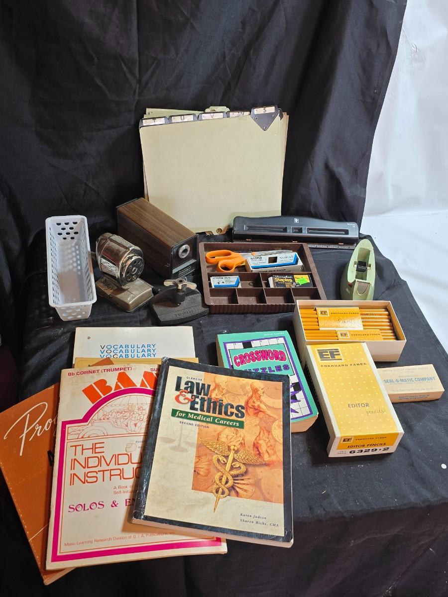 Office items - electric pencil sharpener - vintage crank style sharpener- pencils - hole punch - files and more
