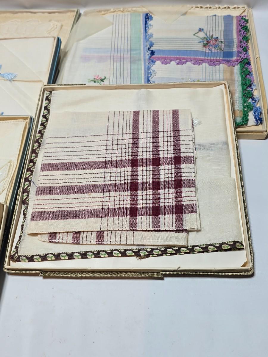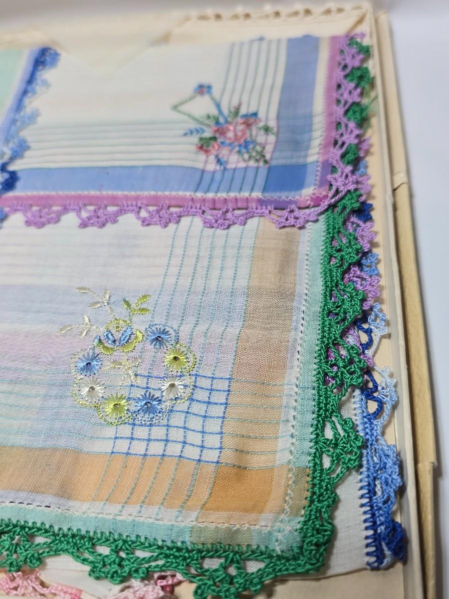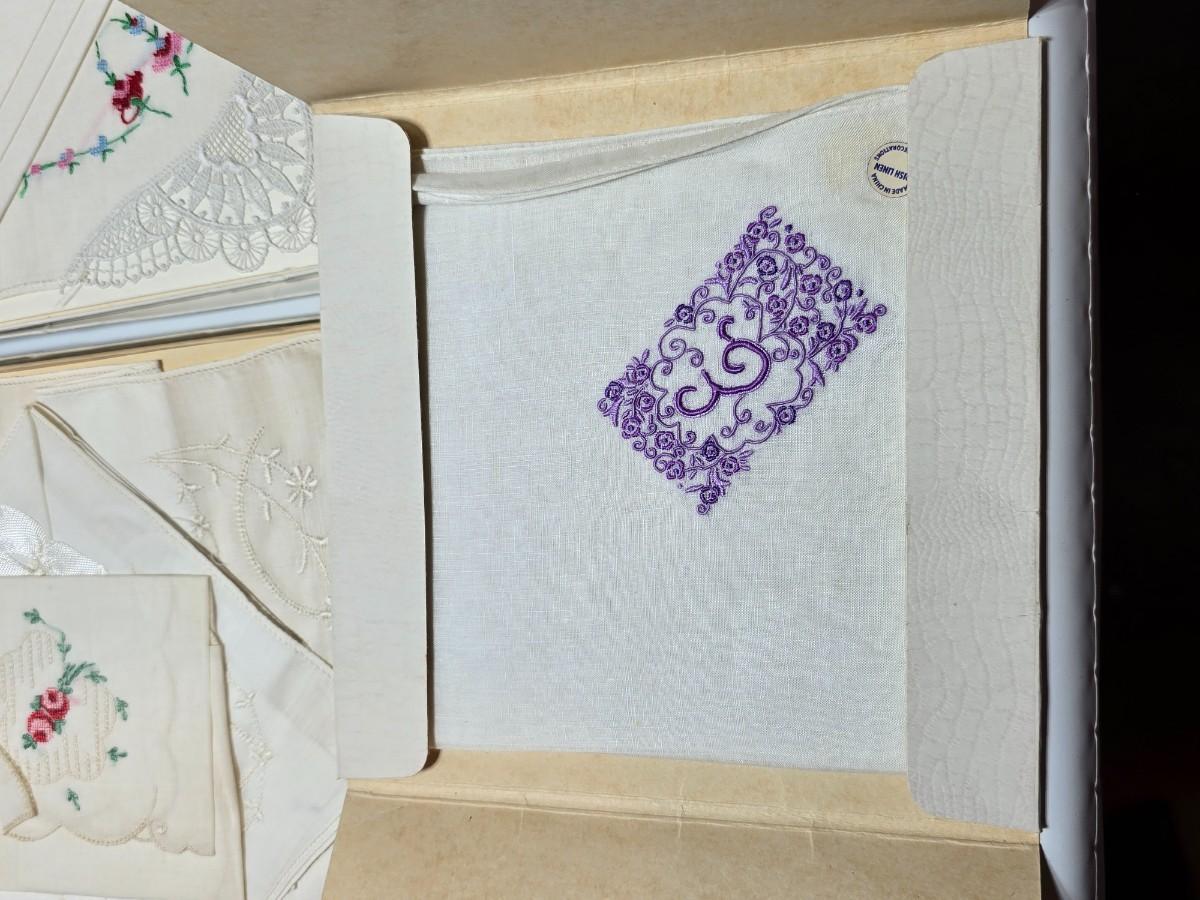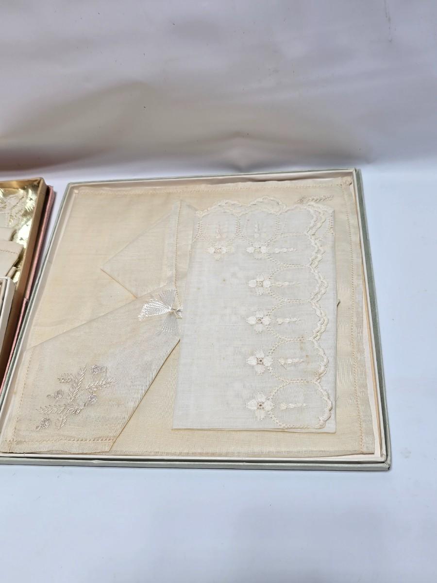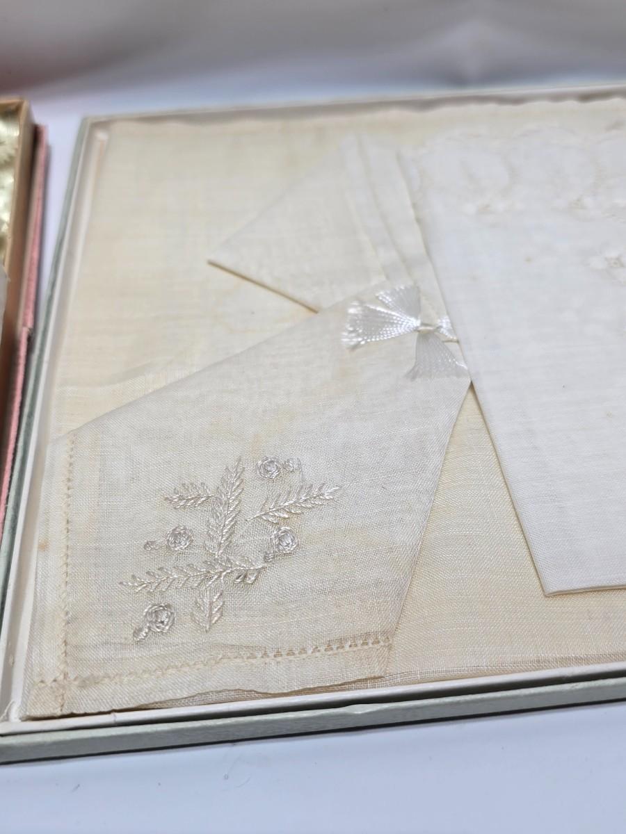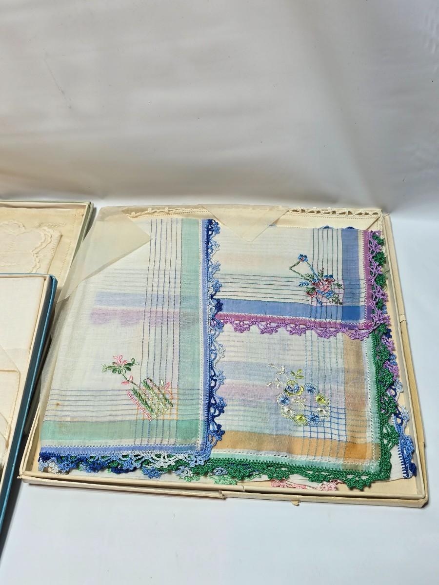 At least 10 Vintage embroidered kerchiefs - and Spunwell pillowcases in original boxes -