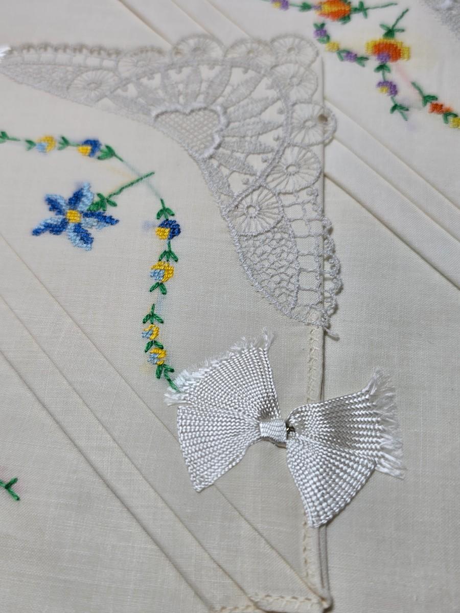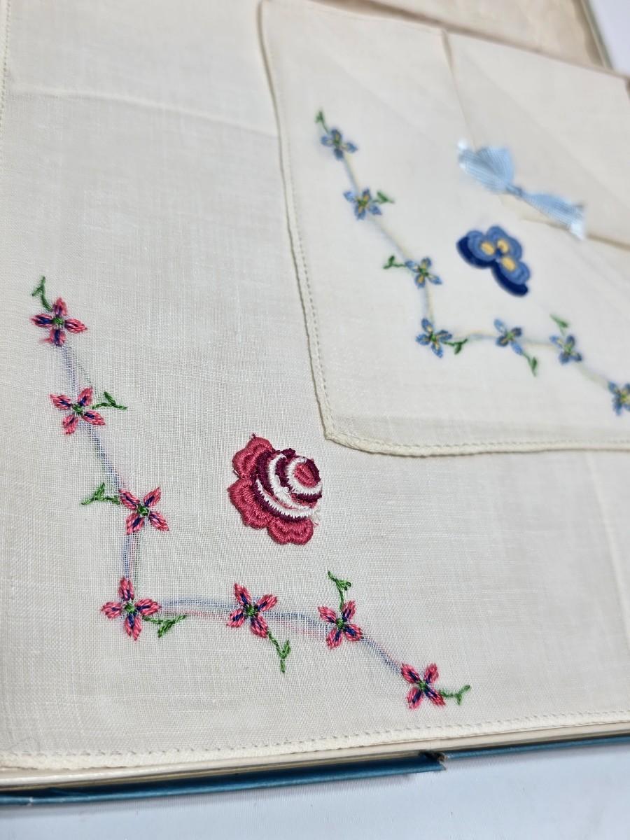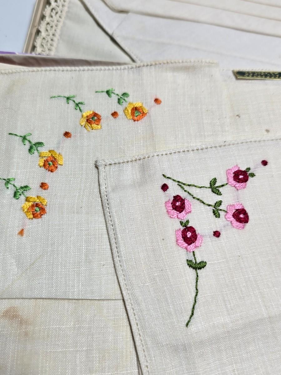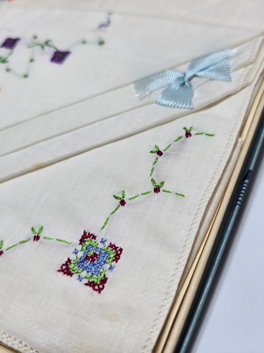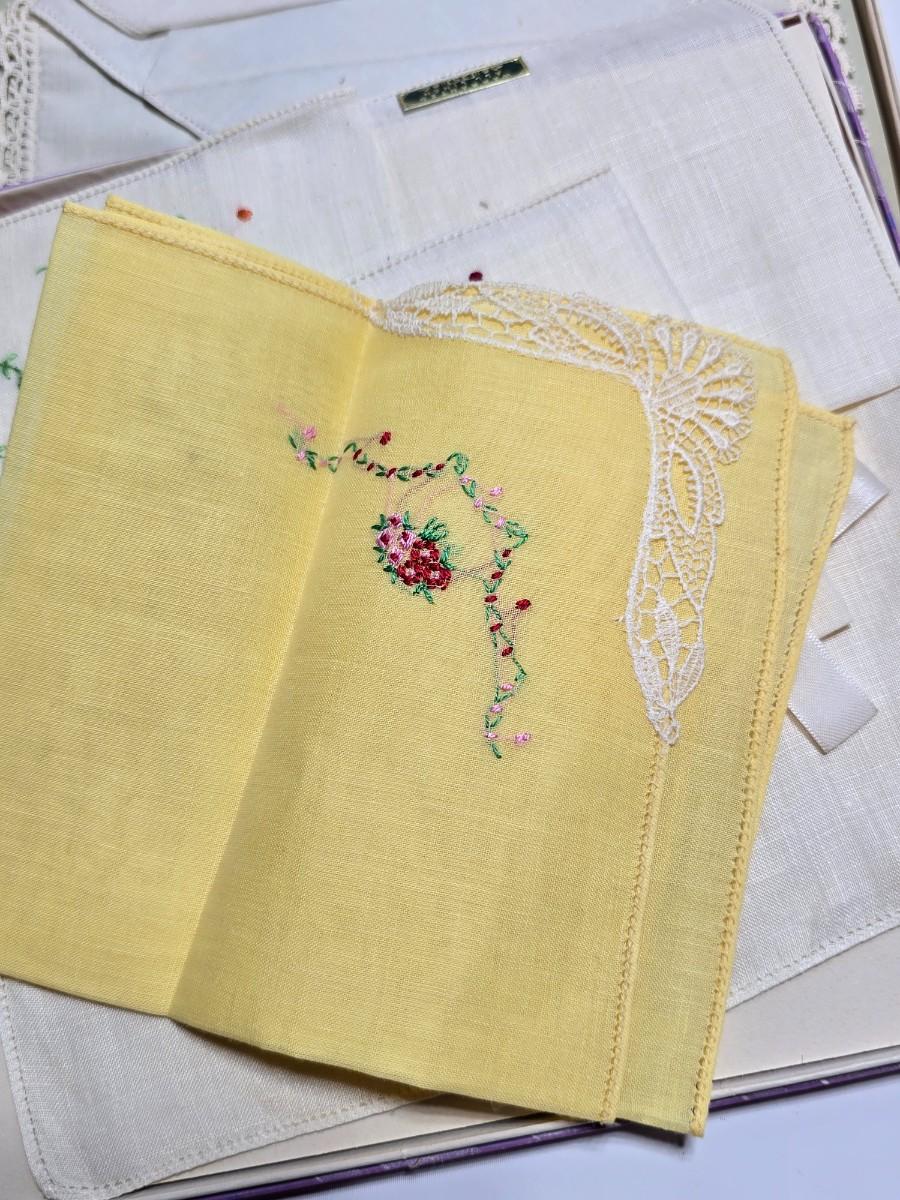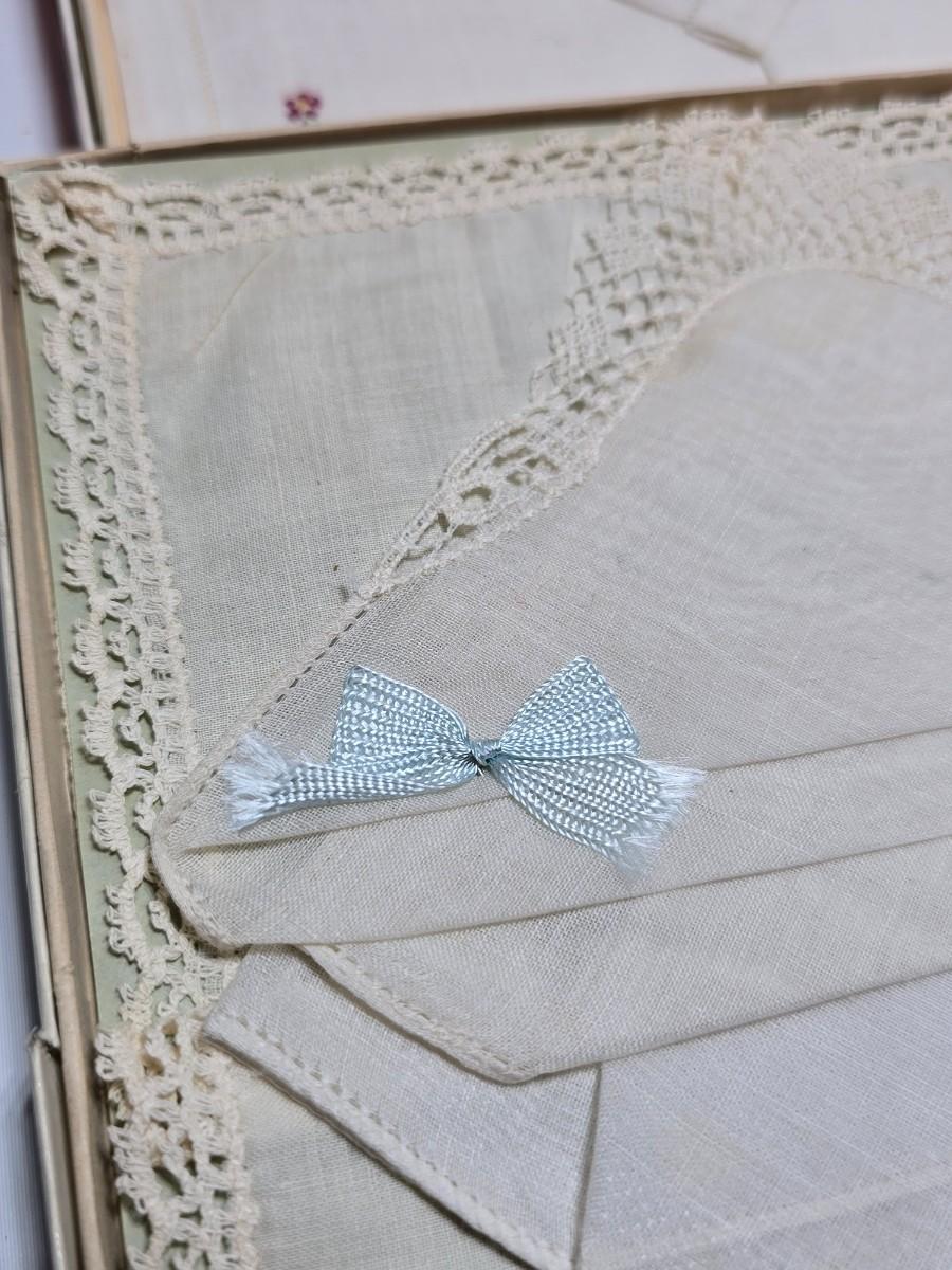 At least 10 Vintage embroidered kerchiefs - and Spunwell pillowcases in original boxes -