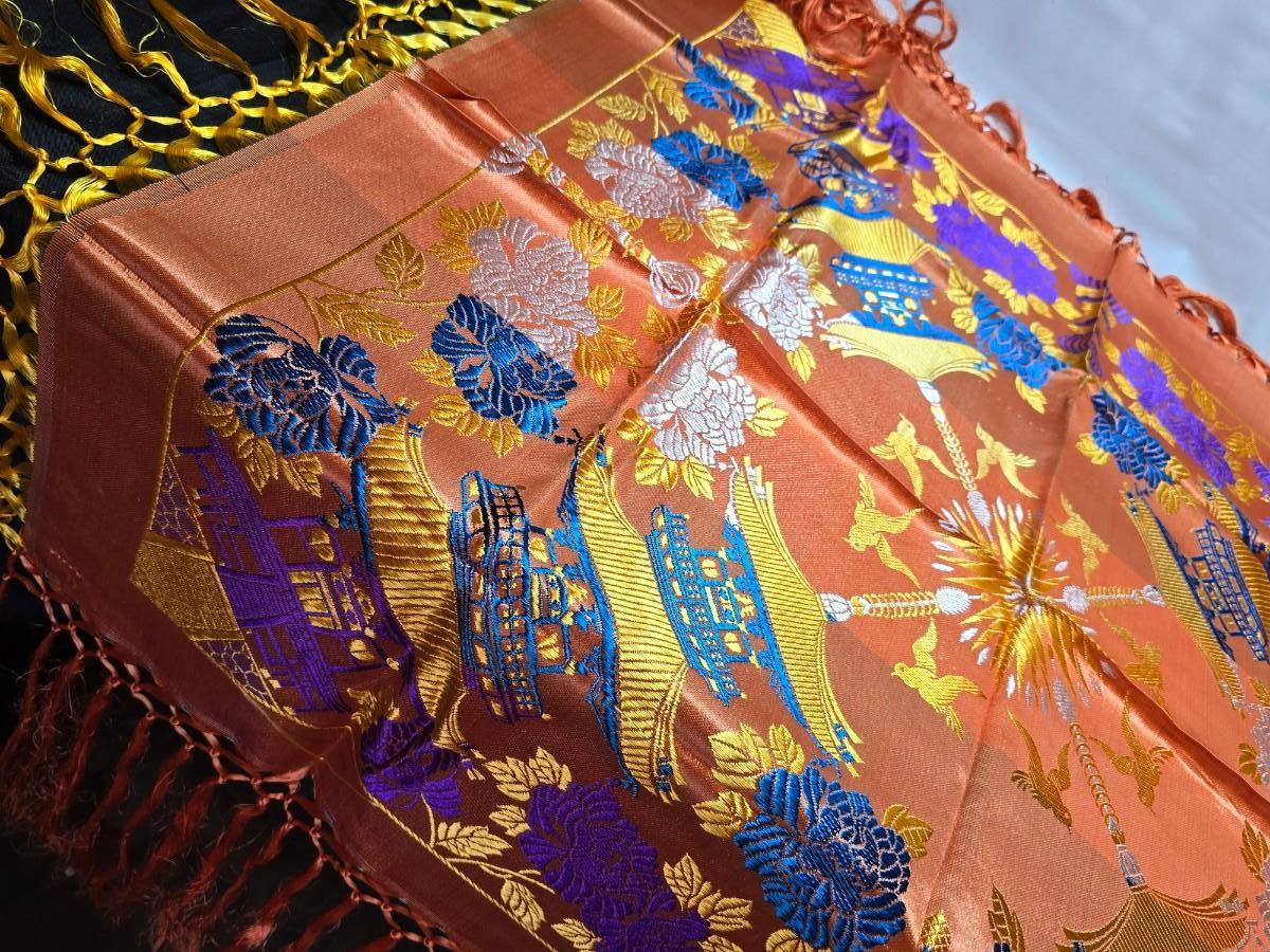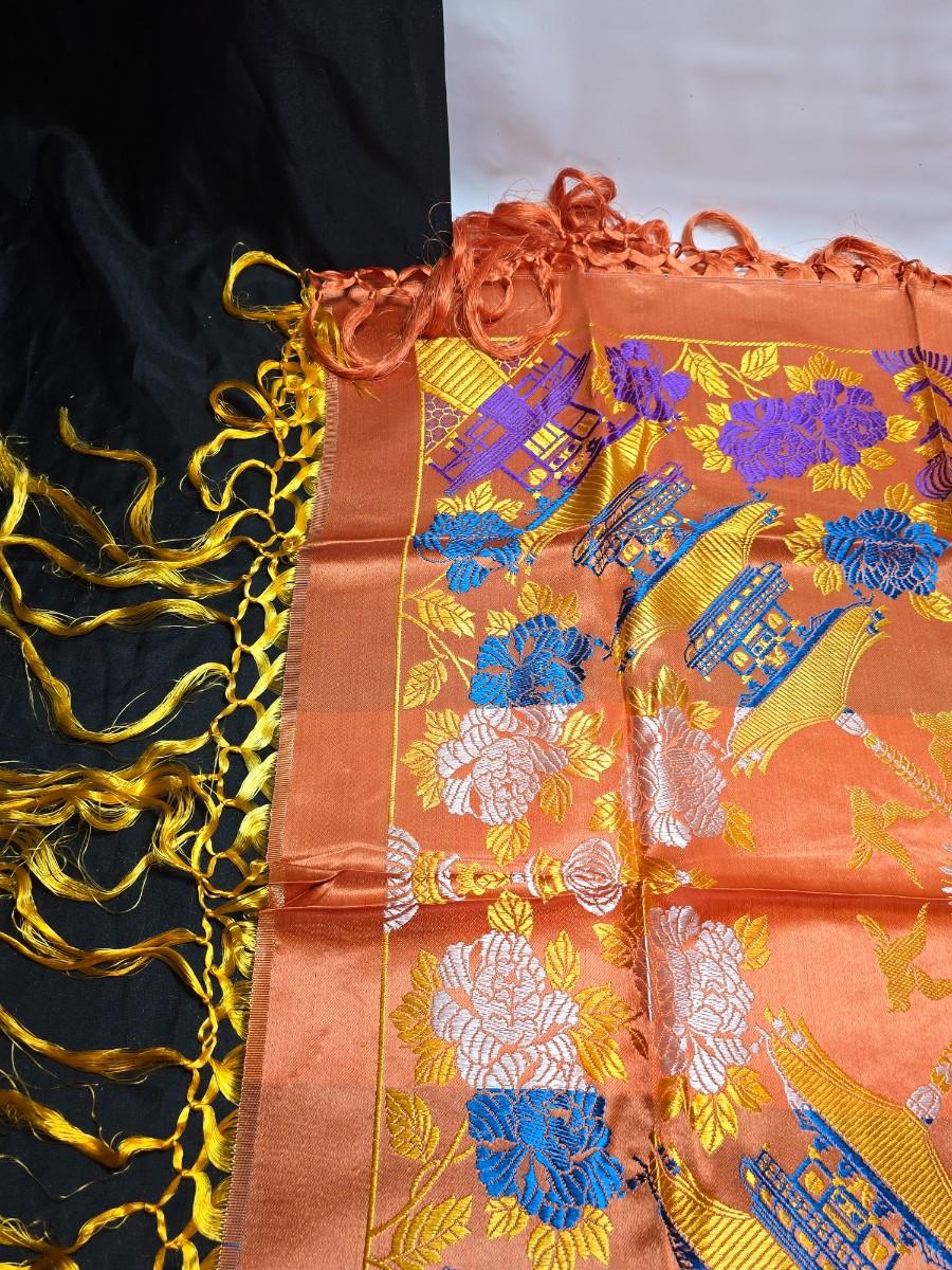 Beautiful large vintage embroidered silk Dorje Cloth - scarf -