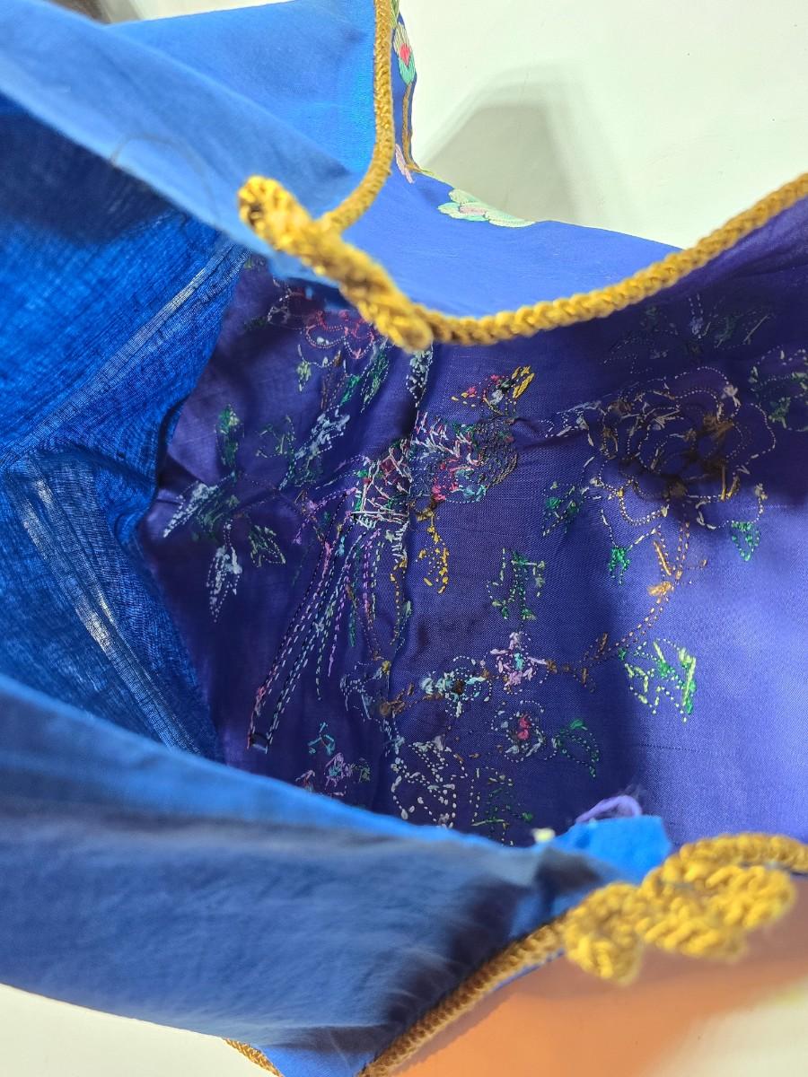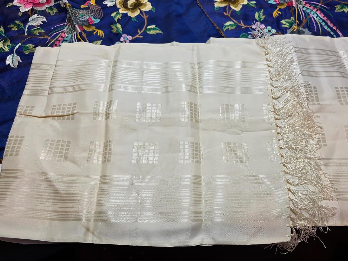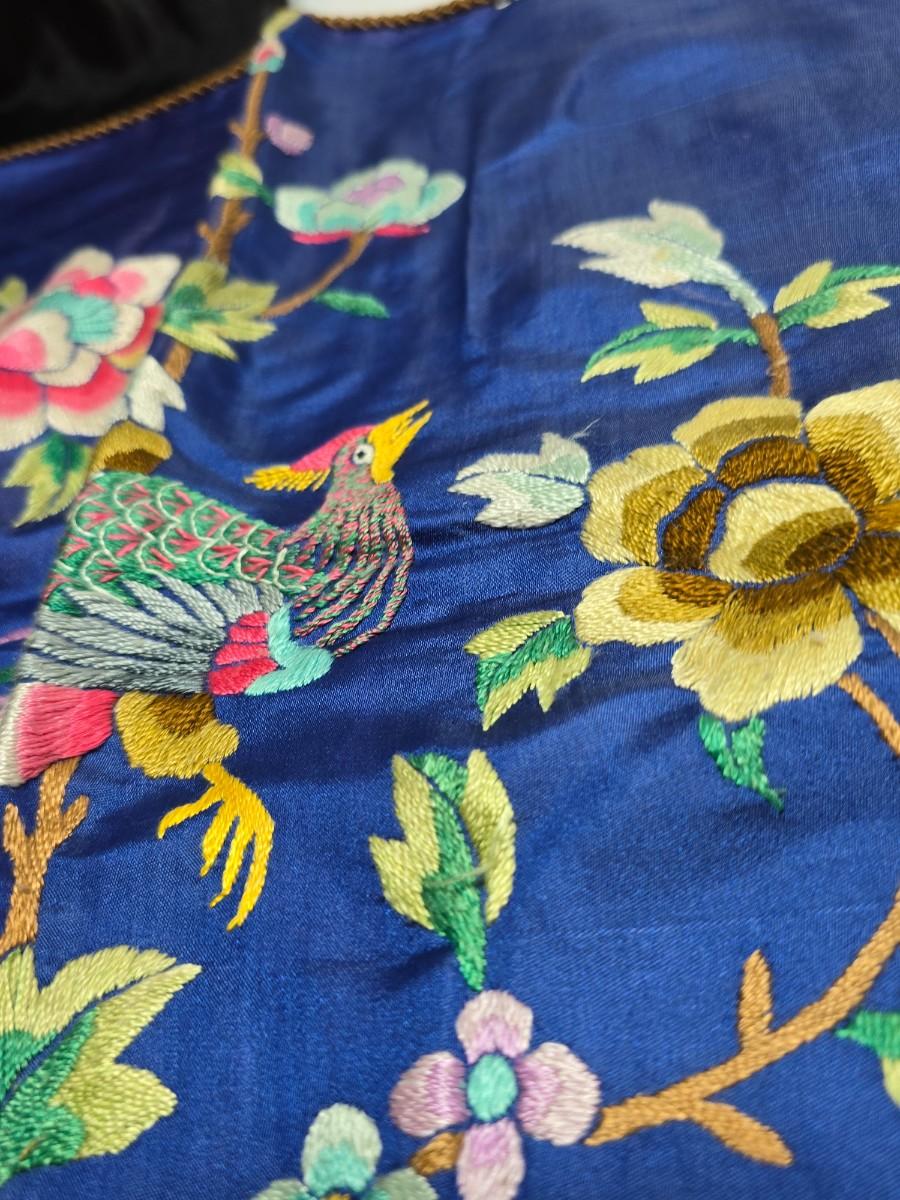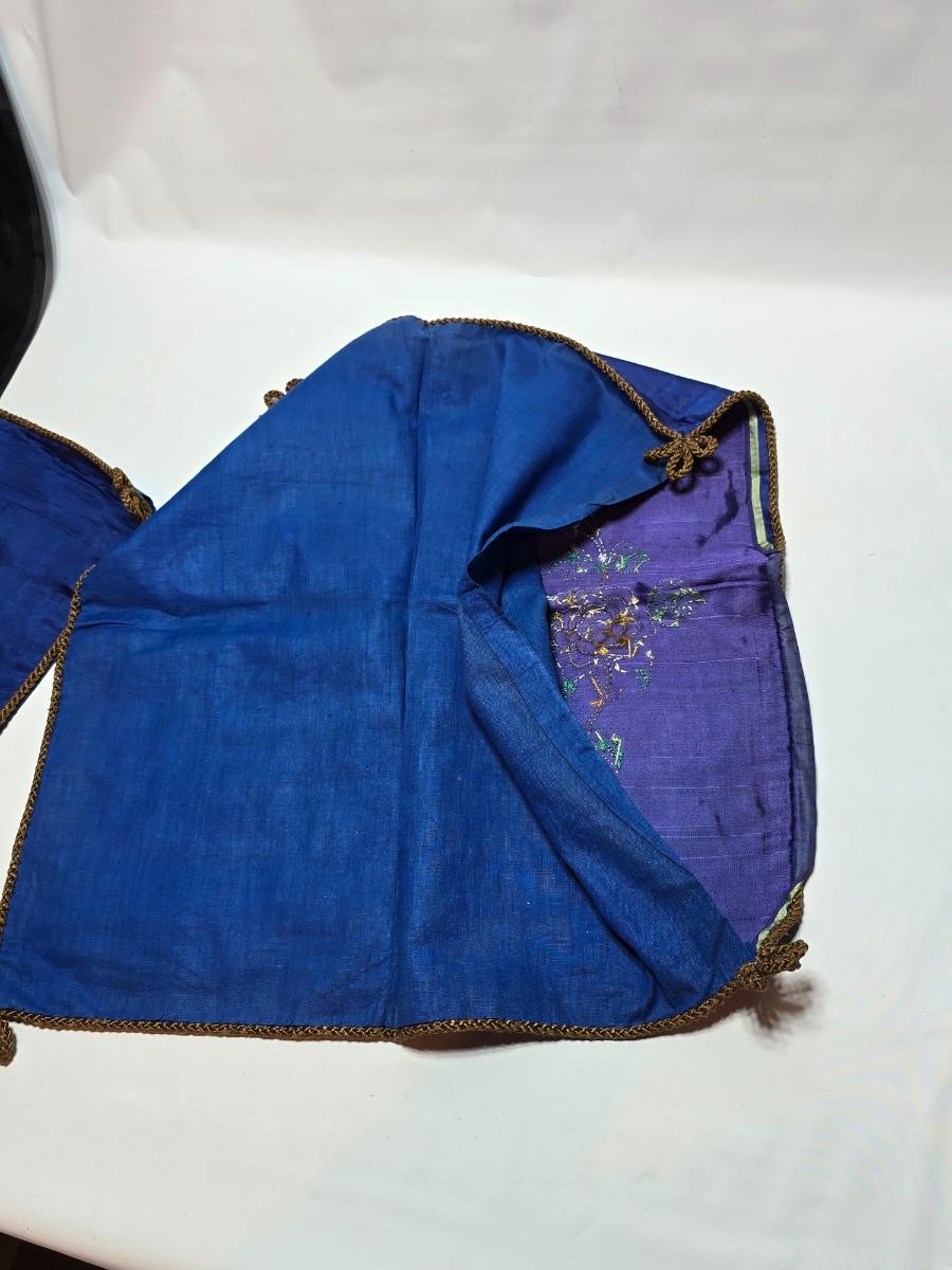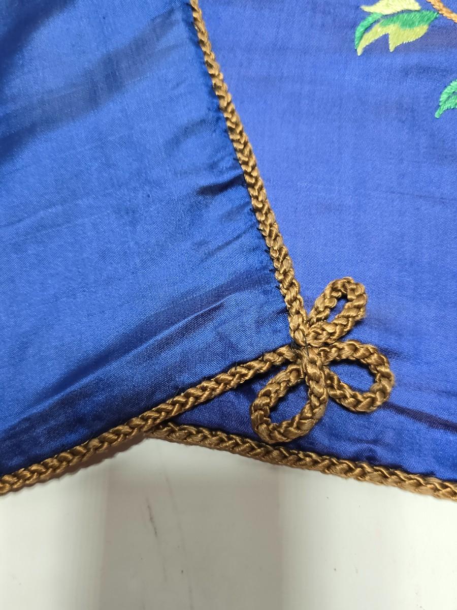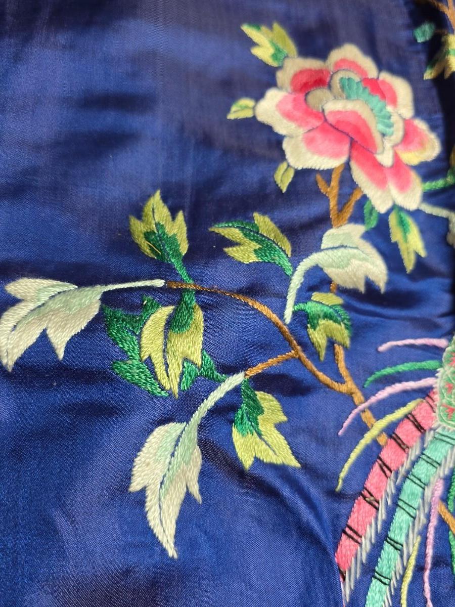 Two Beautiful Vintage Hand Embroidered Asian Floral & quail Design Panel on Silk / Decorative Pillow Covers with table runner