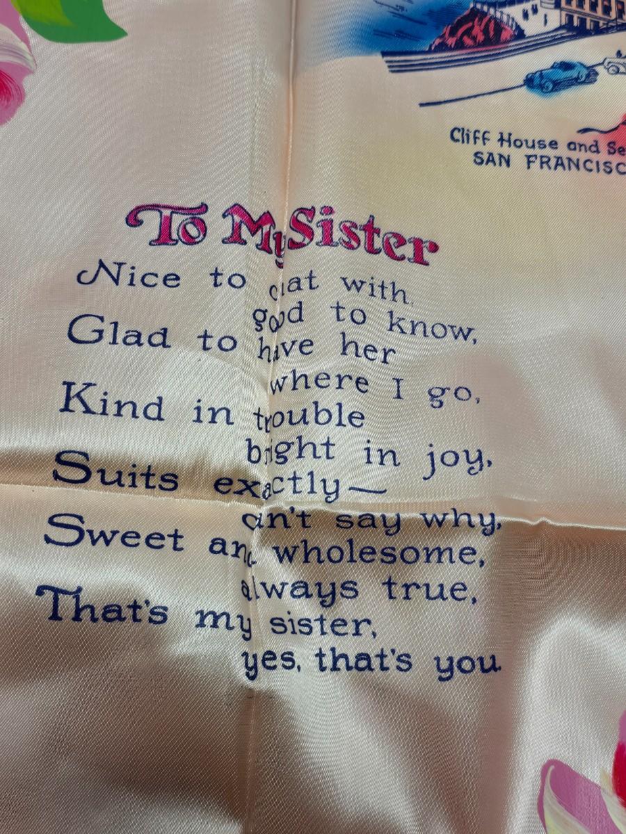 vintage souvenir satin pillowcase with a poem titled "To My Sister" and "To my Mother"